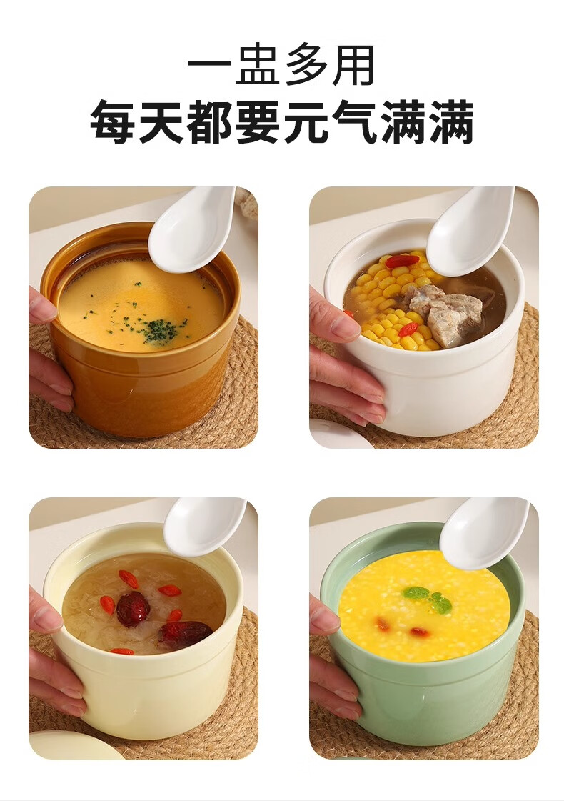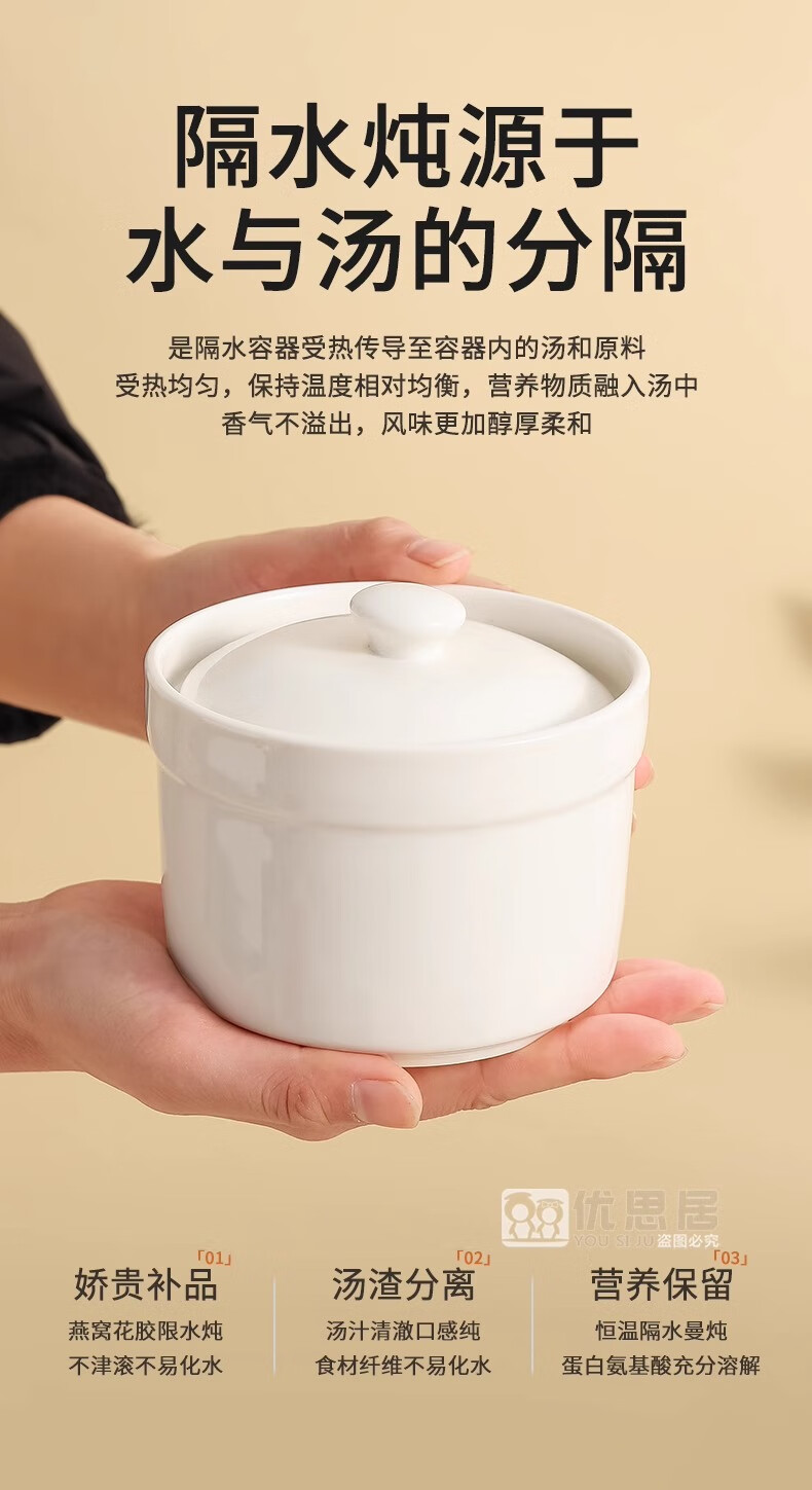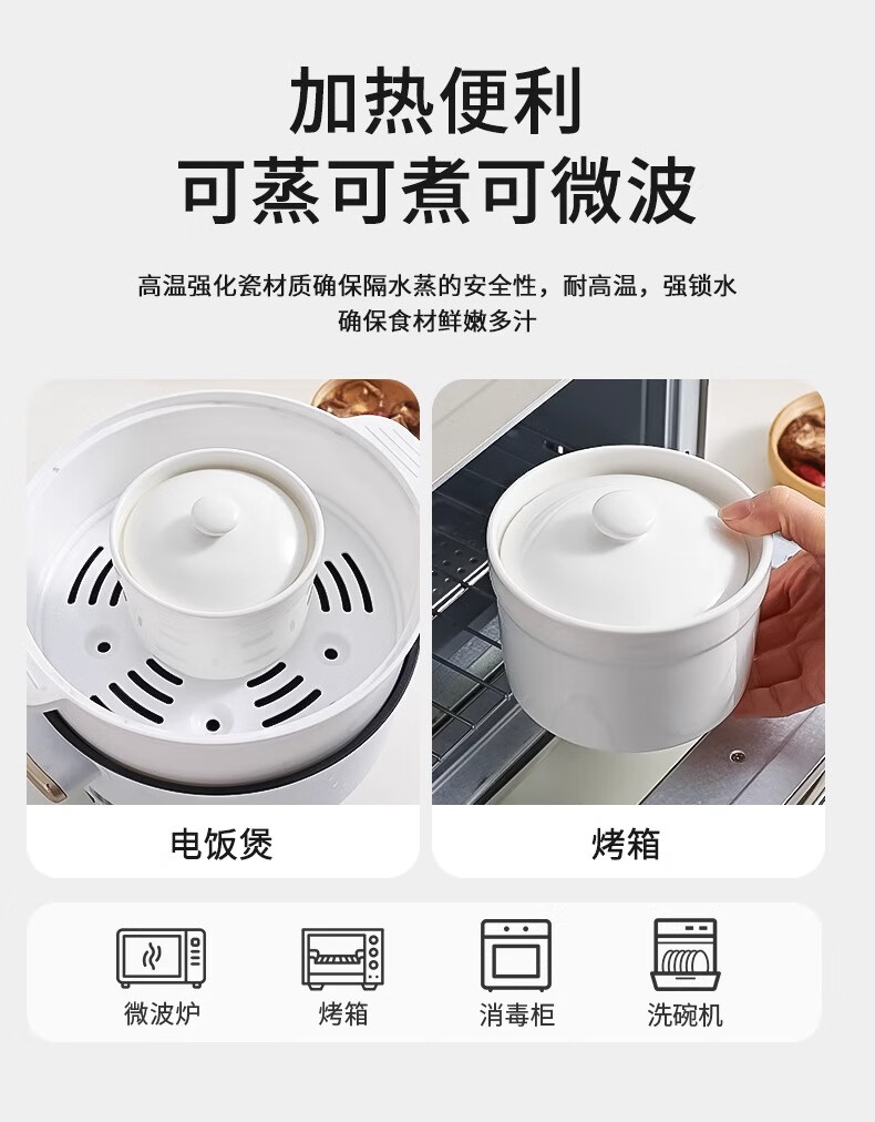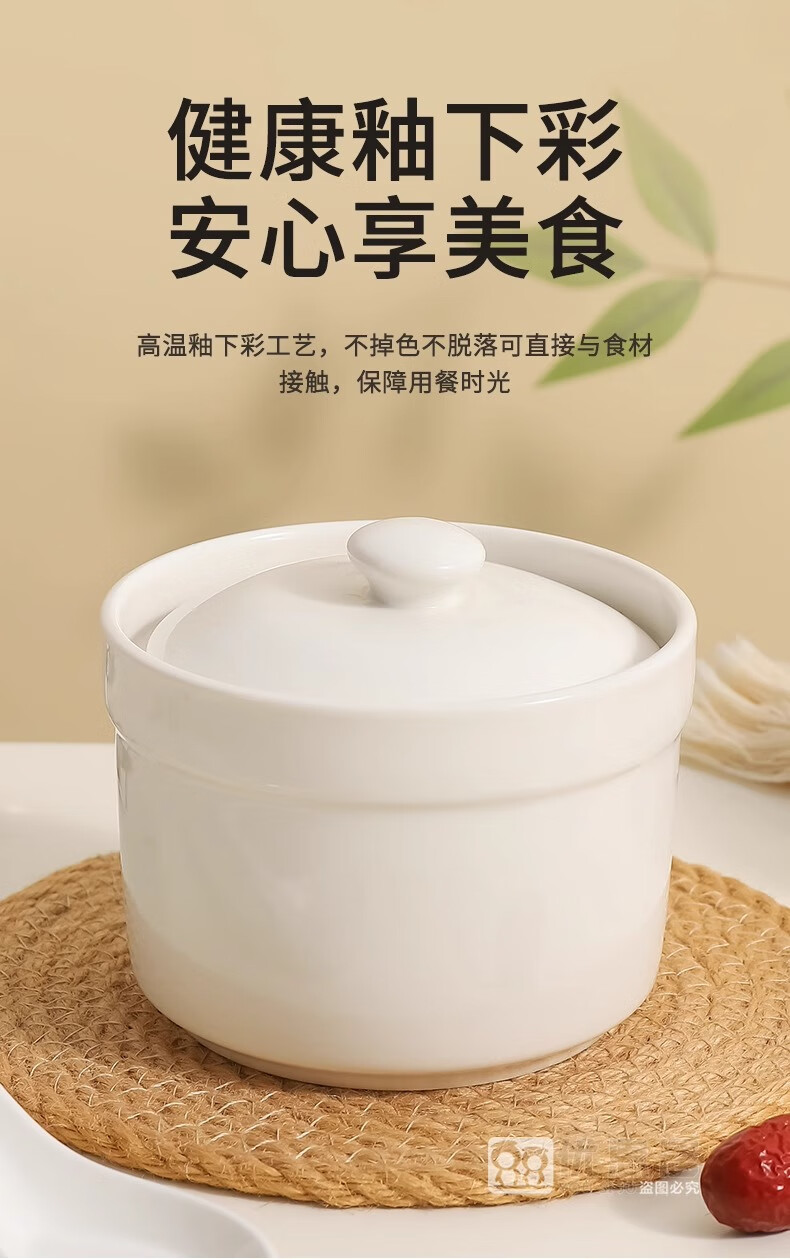 Persson ceramic stew pot water-proof stew pot with lid household steamed egg bowl stewed bird's nest cup egg custard special small crock pot for soup thickening white 2 pieces 500ml