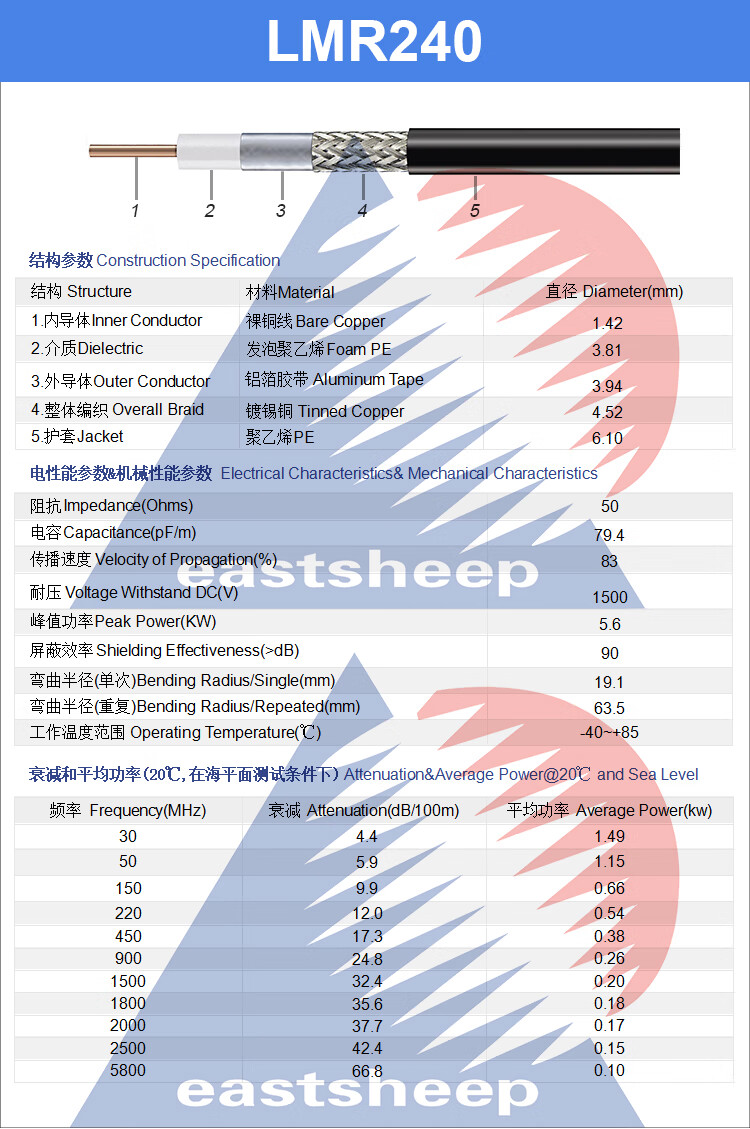 Dongfang Xupu LMR240 low-loss adapter cable SMA-JK SMA male to female extension cable DC-6G LMR240-SMA-JK 0.5m