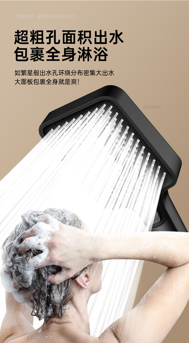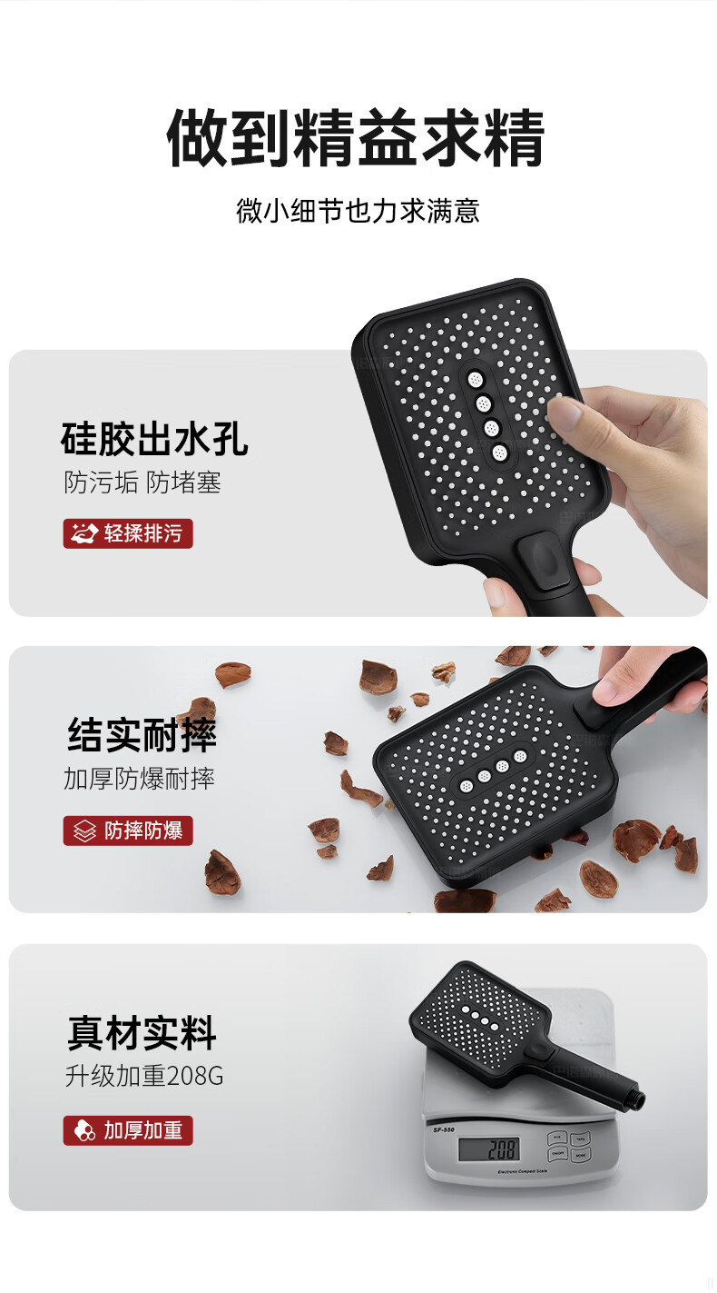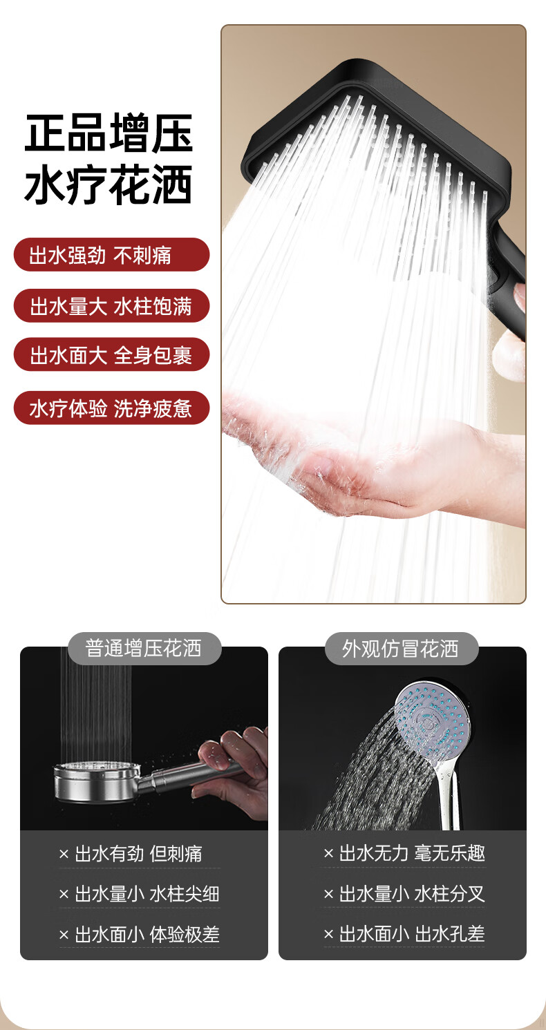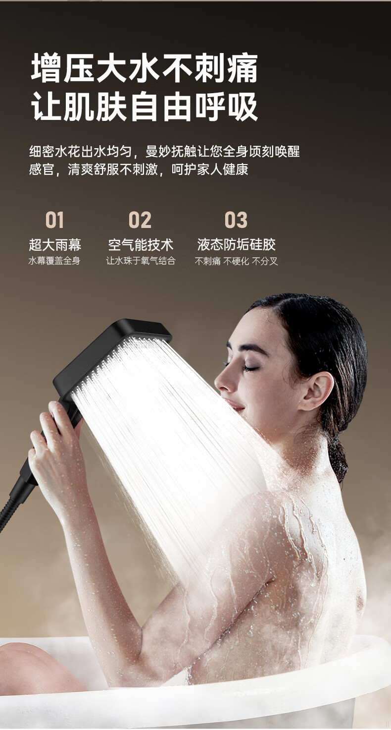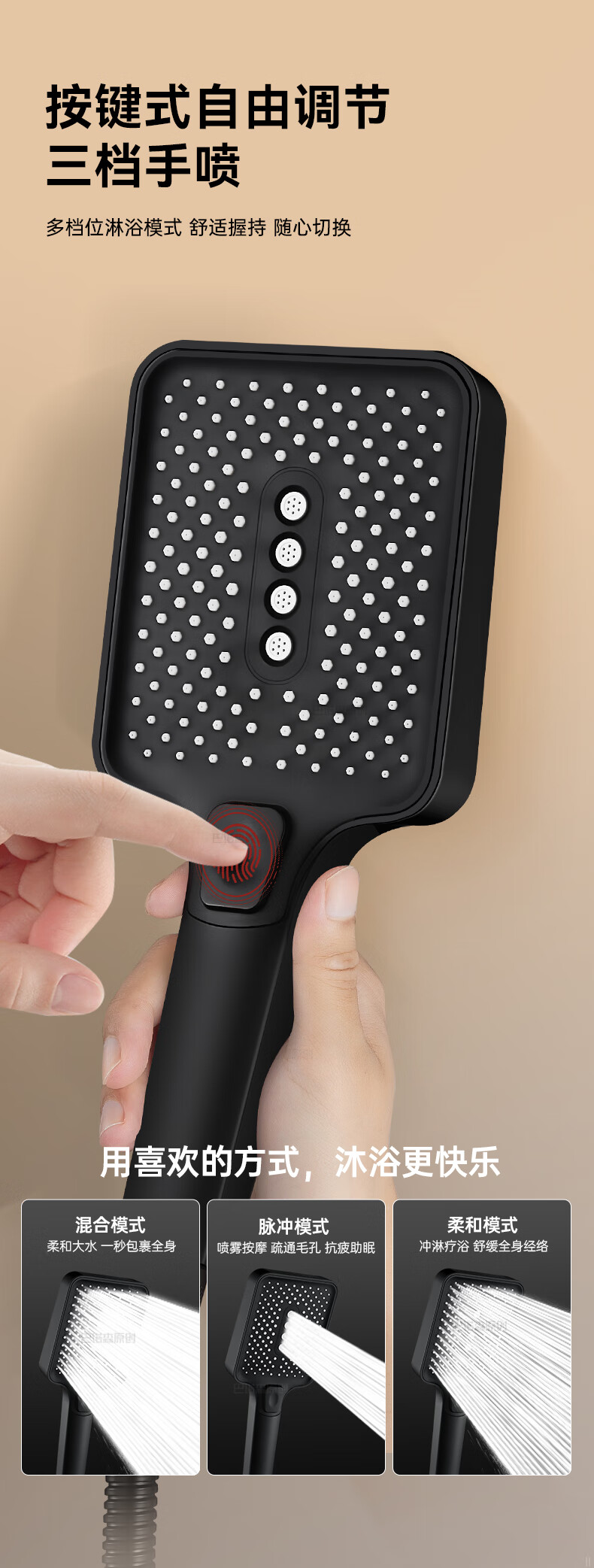 Jomoo new pressurized shower head super faucet bathroom rain shower bath water heater handheld pressurized shower head Yahei three-speed square shower + 1.5 meters explosion-proof