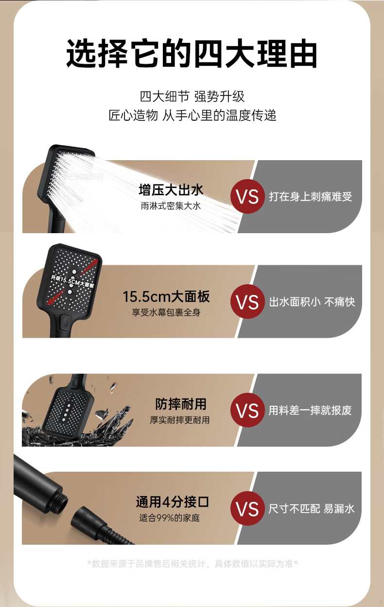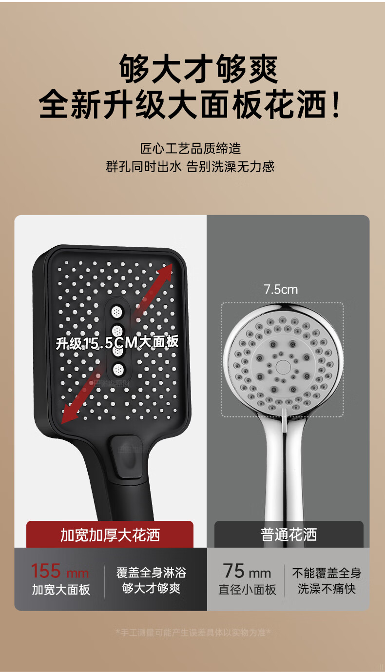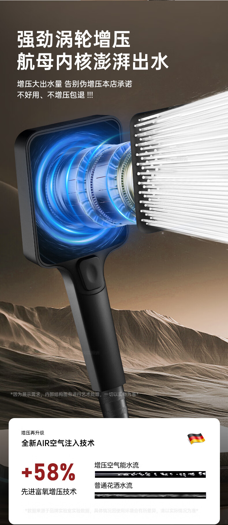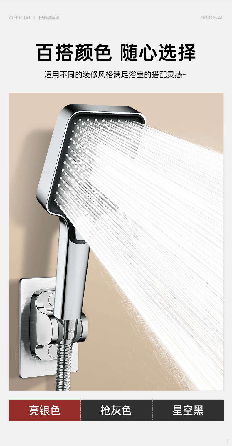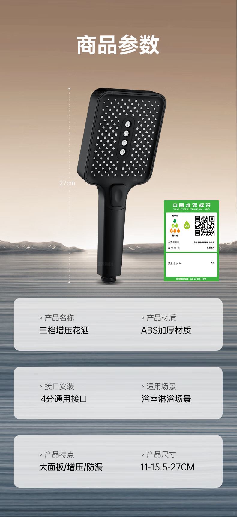 Jomoo new pressurized shower head super faucet bathroom rain shower bath water heater handheld pressurized shower head Yahei three-speed square shower + 1.5 meters explosion-proof