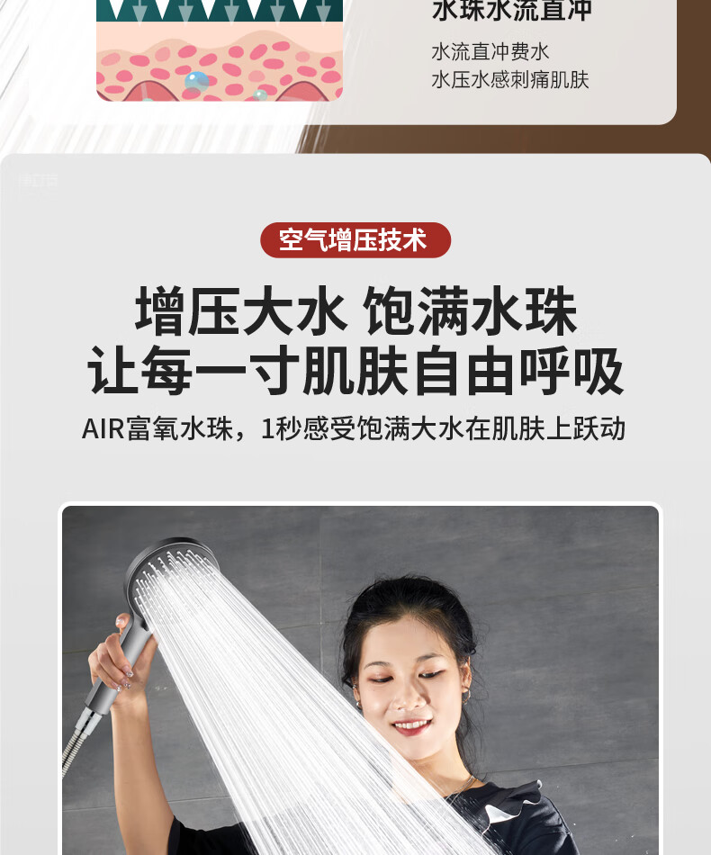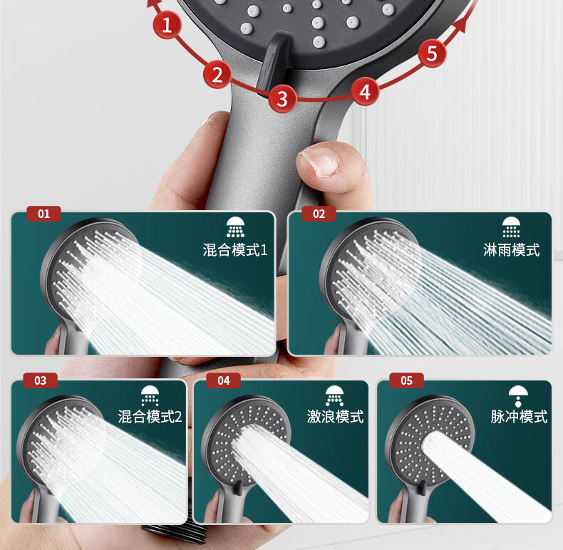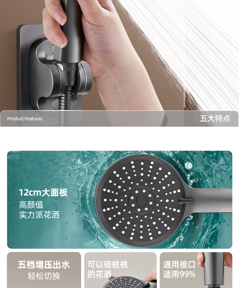 Jomoo's new German supercharged shower head shower super pressure large water output bath faucet spray shower head set flagship version platinum silver supercharged shower head