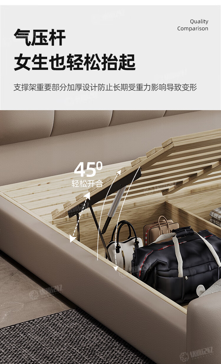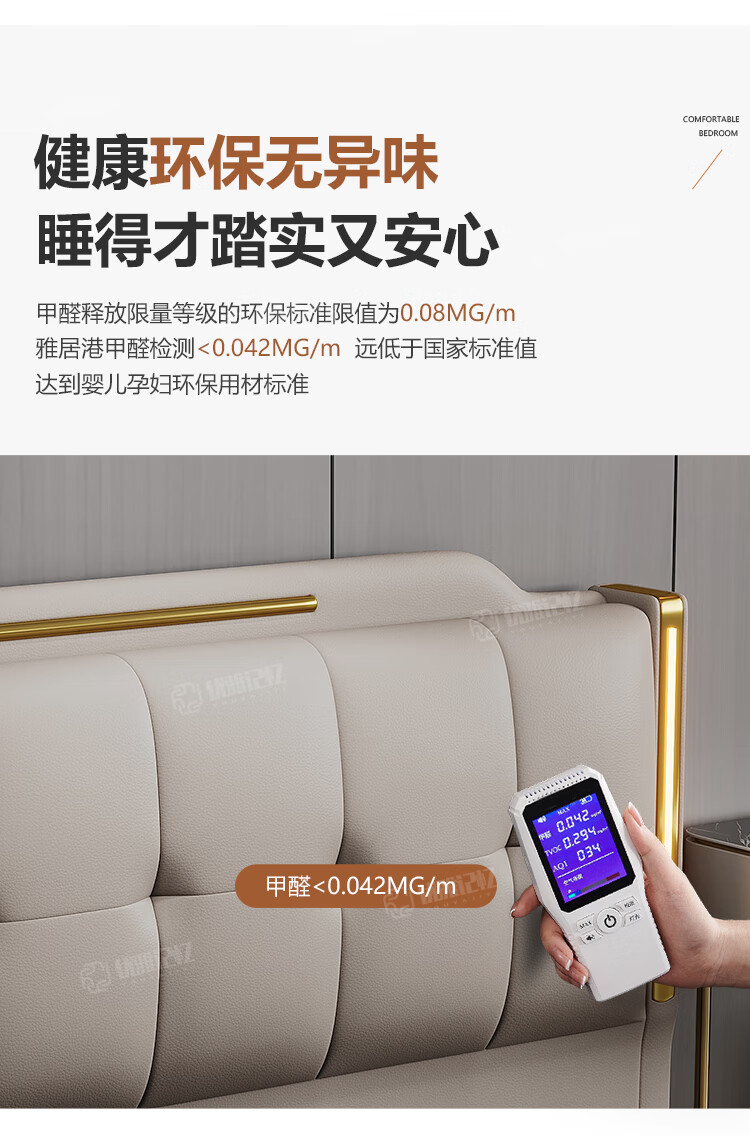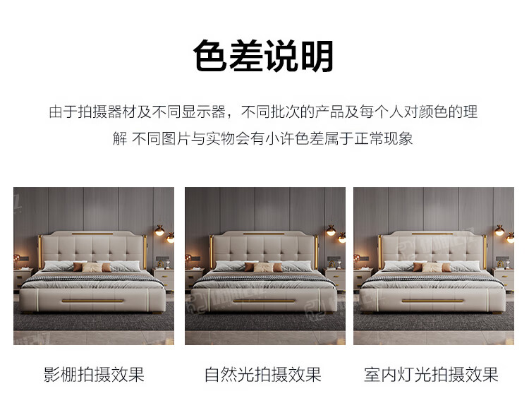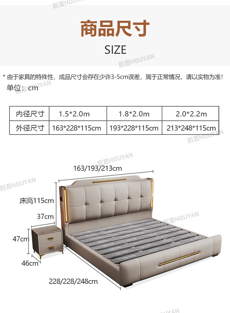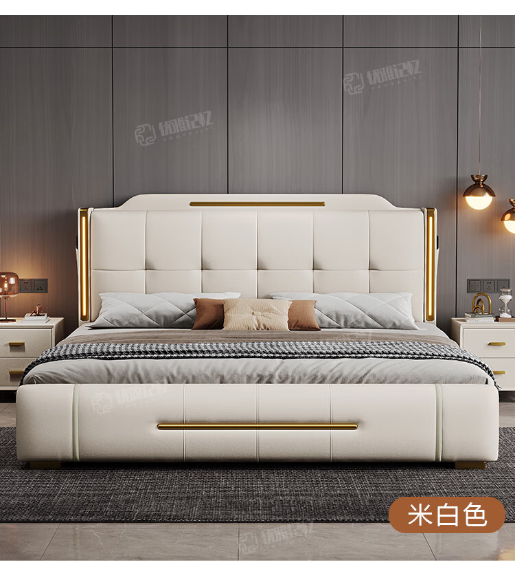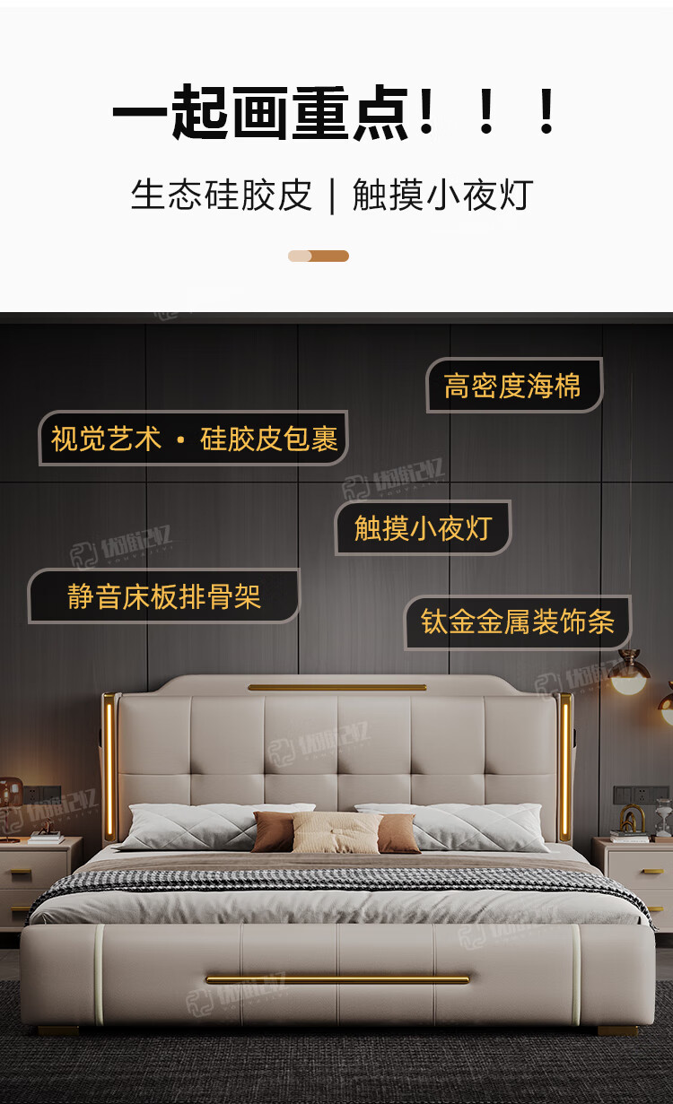 Postscript National Subsidized Bed Double Bed 2m 2.2m Leather Bed Modern Light Luxury Master Bedroom King Bed Storage Marriage Bed Leather Art Bed 1800mm*2000mm Frame Bed Leather Sheet Bed