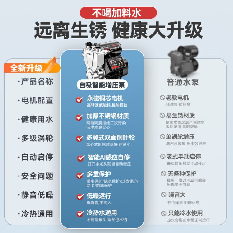 Grundfos 304 stainless steel dual outlet intelligent hot and cold water booster pump, well pumping, whole house tap water booster 200 watt dual outlet intelligent hot and cold water booster pump