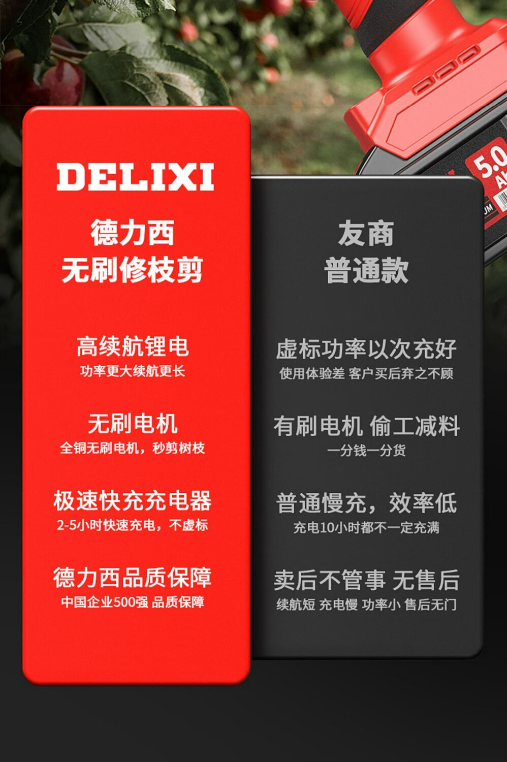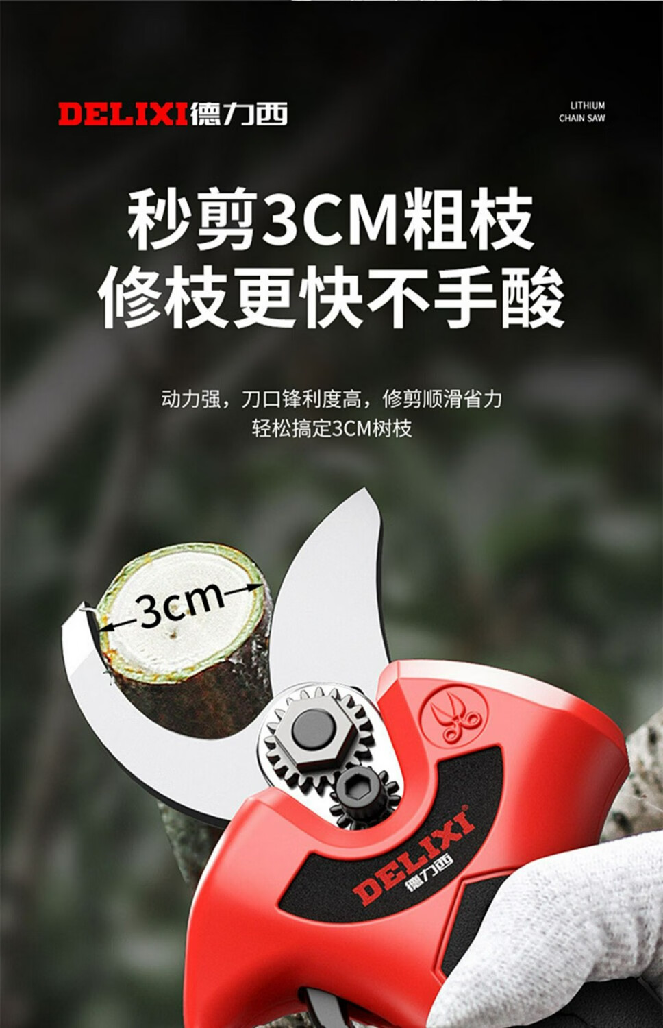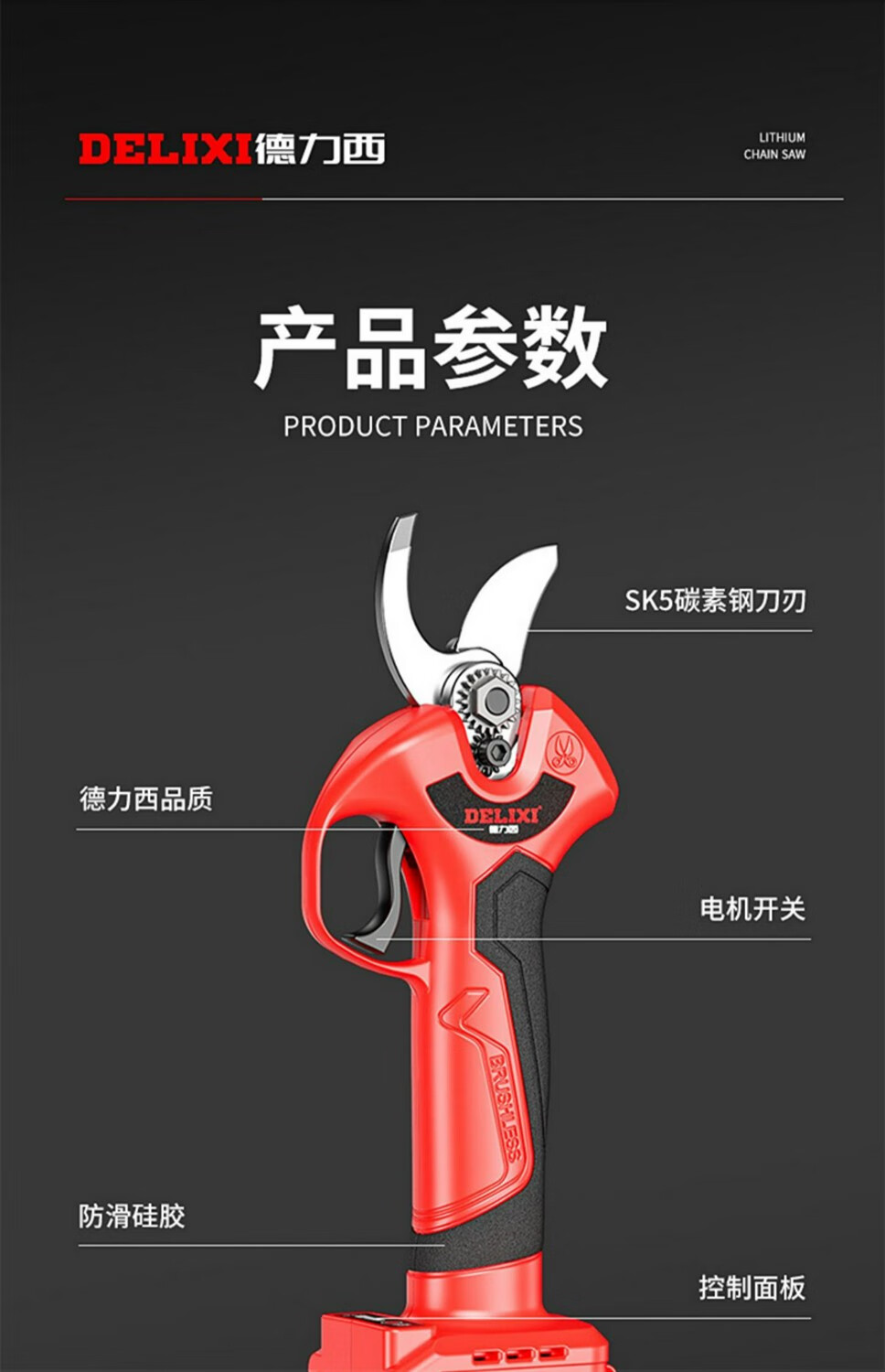 DELIXI ELECTRIC electric pruning shears brushless rechargeable handheld lithium battery garden electric shears thick branches fruit branch scissors Delixi China's top 500 companies-Quality Assurance-
