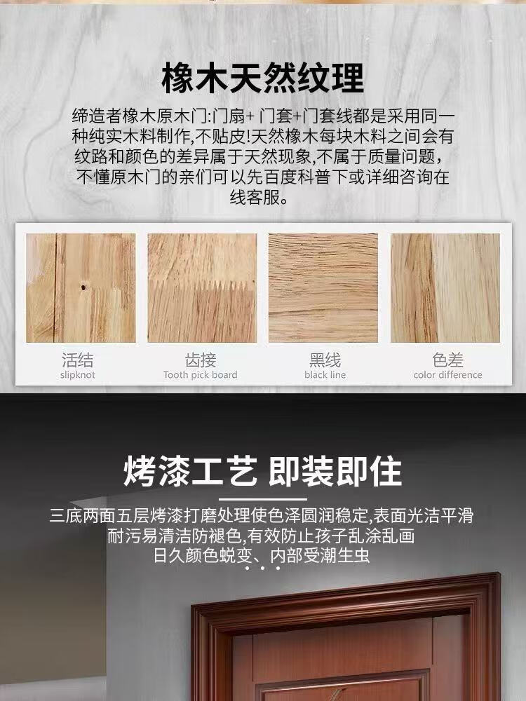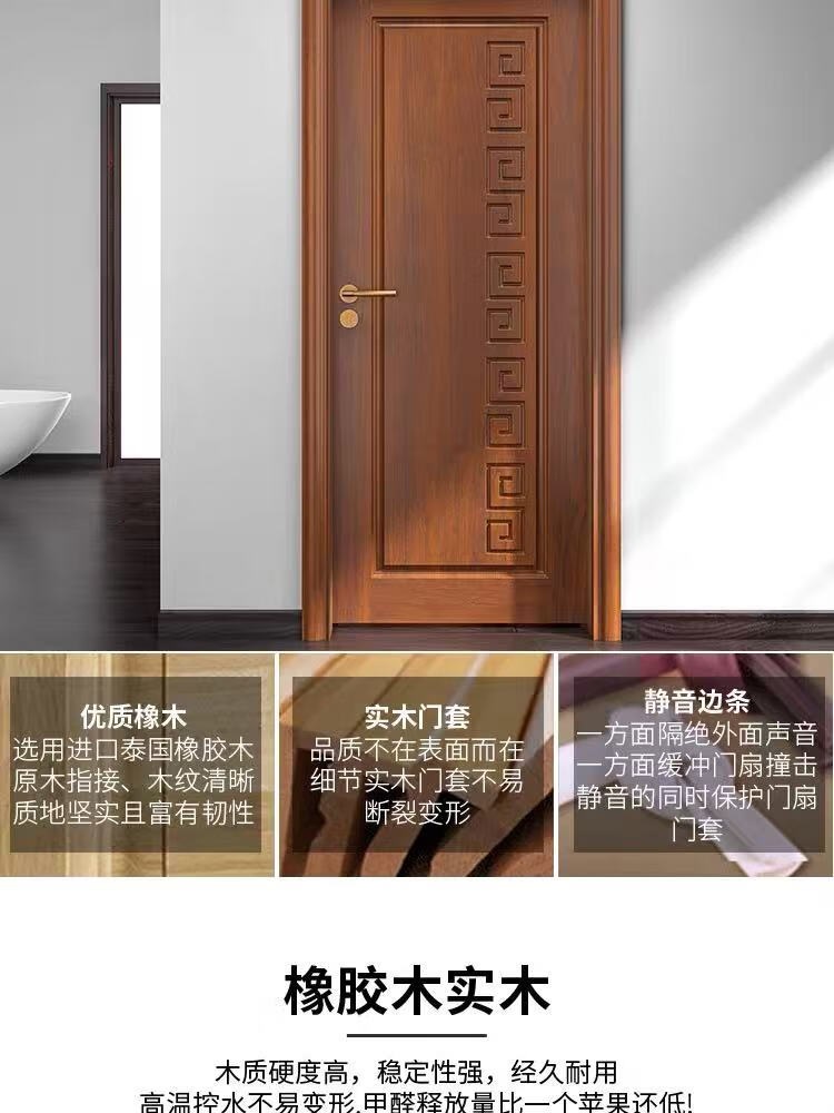 Wen Yijia Thailand pure solid wood rubber wood door indoor bedroom door painted door set bathroom concierge door whole house oak B style