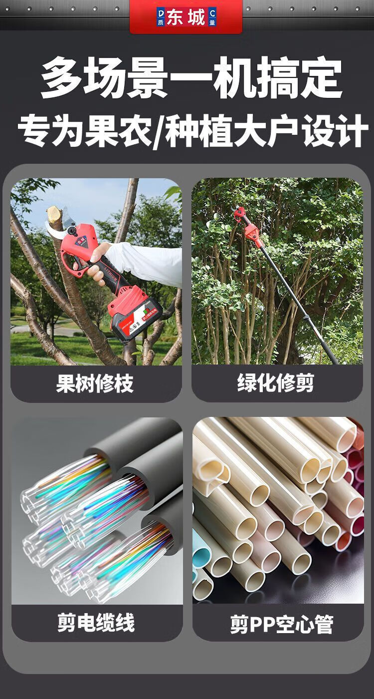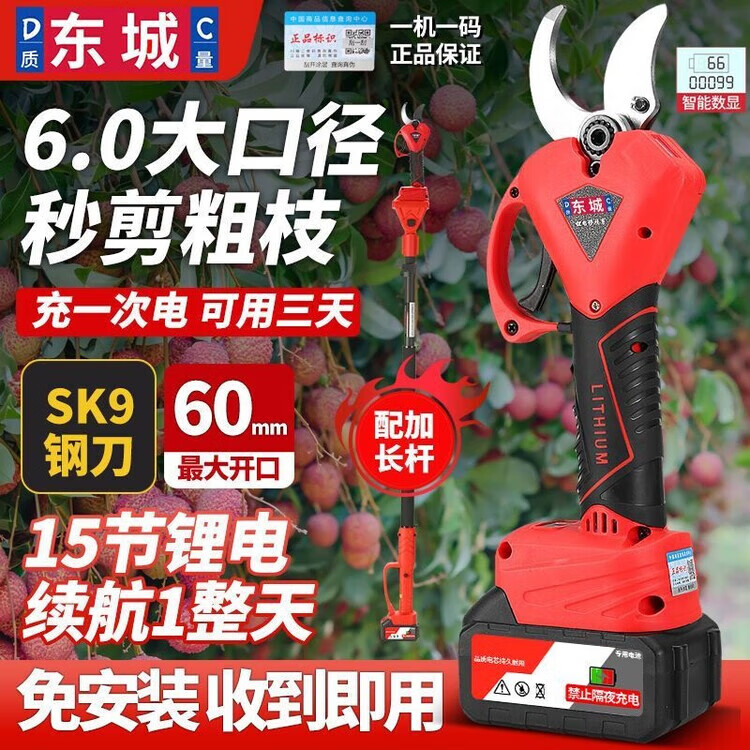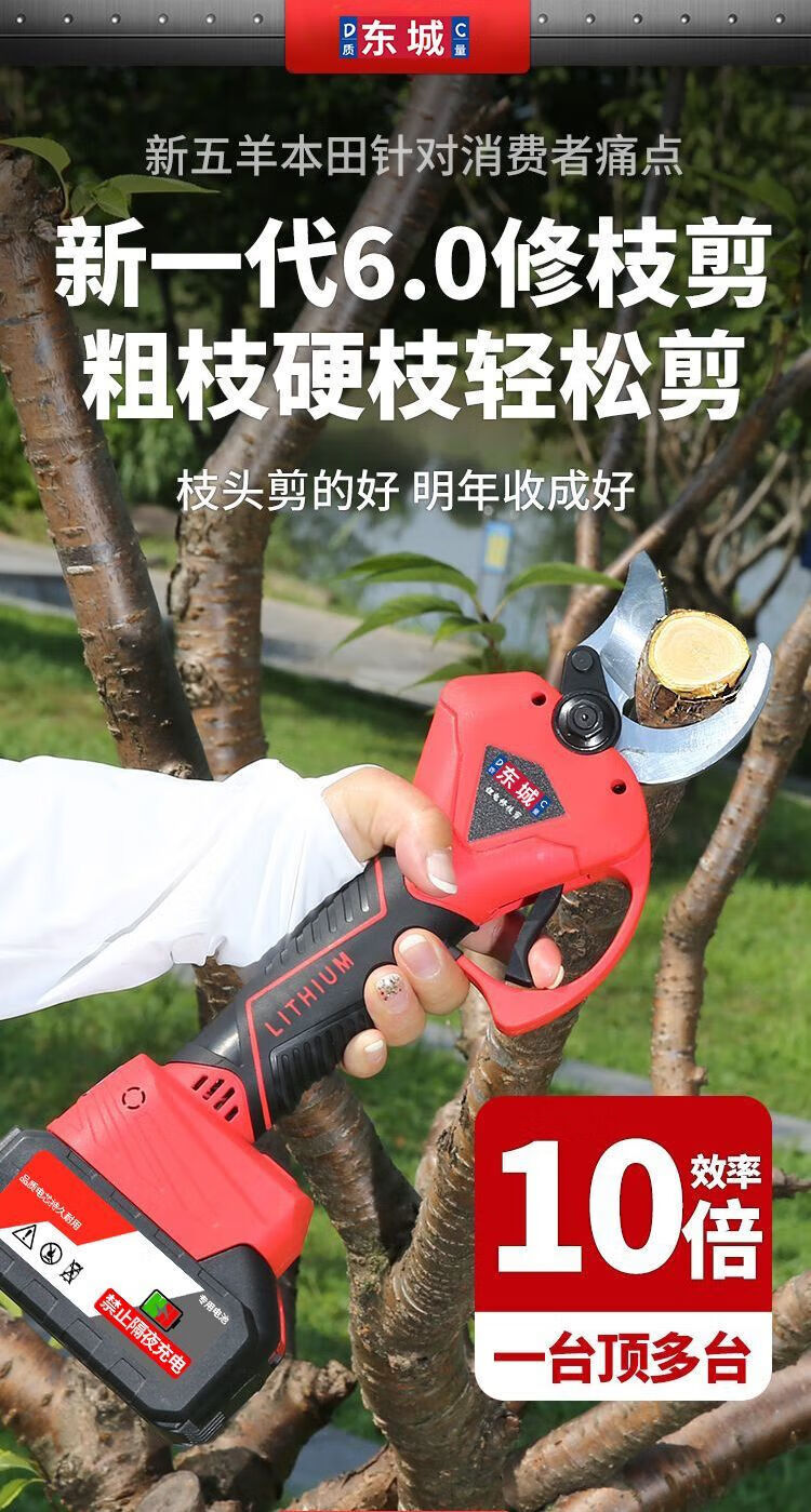 Dongcheng Dongcheng model electric pruning shears for fruit trees Xiuzhi powerful electric scissors for cutting branches Electric shears pruning artifact brushless countless display 5.0 10 cells 1 battery Dongcheng model large capacity lithium battery pruning shears