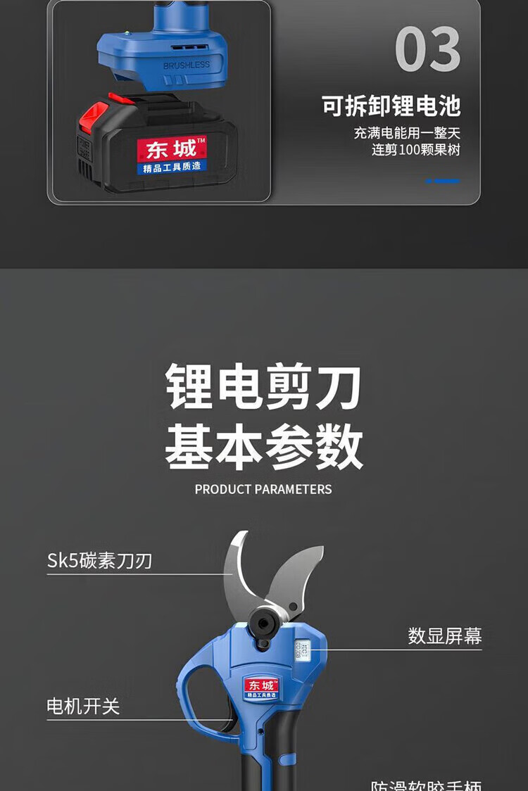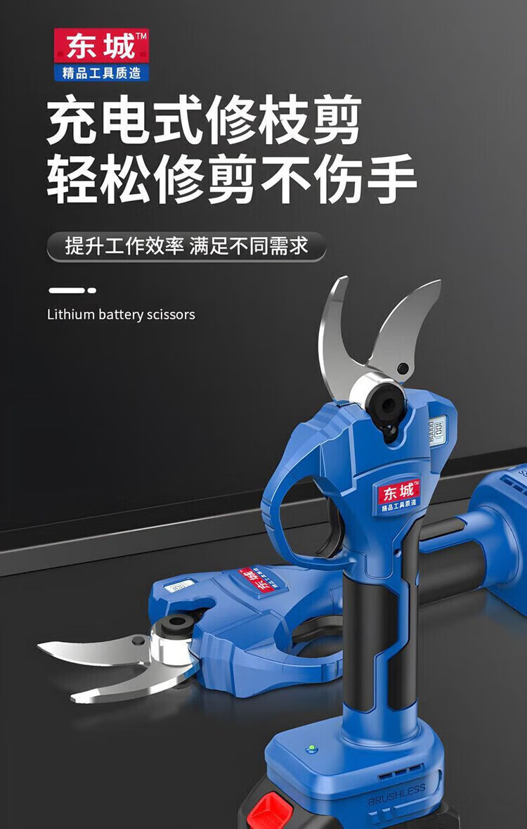 Dongcheng Dongcheng electric pruning shears, rechargeable lithium-ion scissors, powerful garden thick branch shears, electric shears, fruit tree scissors, pure copper pruning 2.5 cm dual electric, countless displays