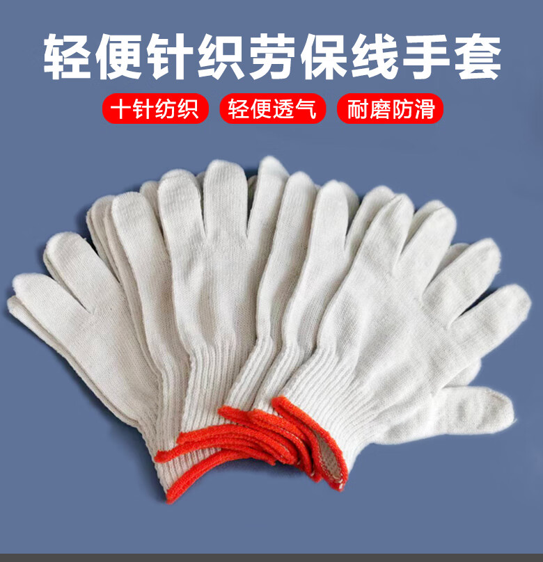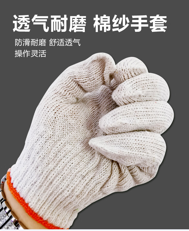 Orange-edged cotton gauze labor protection gloves, lightweight, comfortable and wear-resistant hand protection labor protection gloves, breathable thread gloves, 5 pairs of high-quality cotton threads