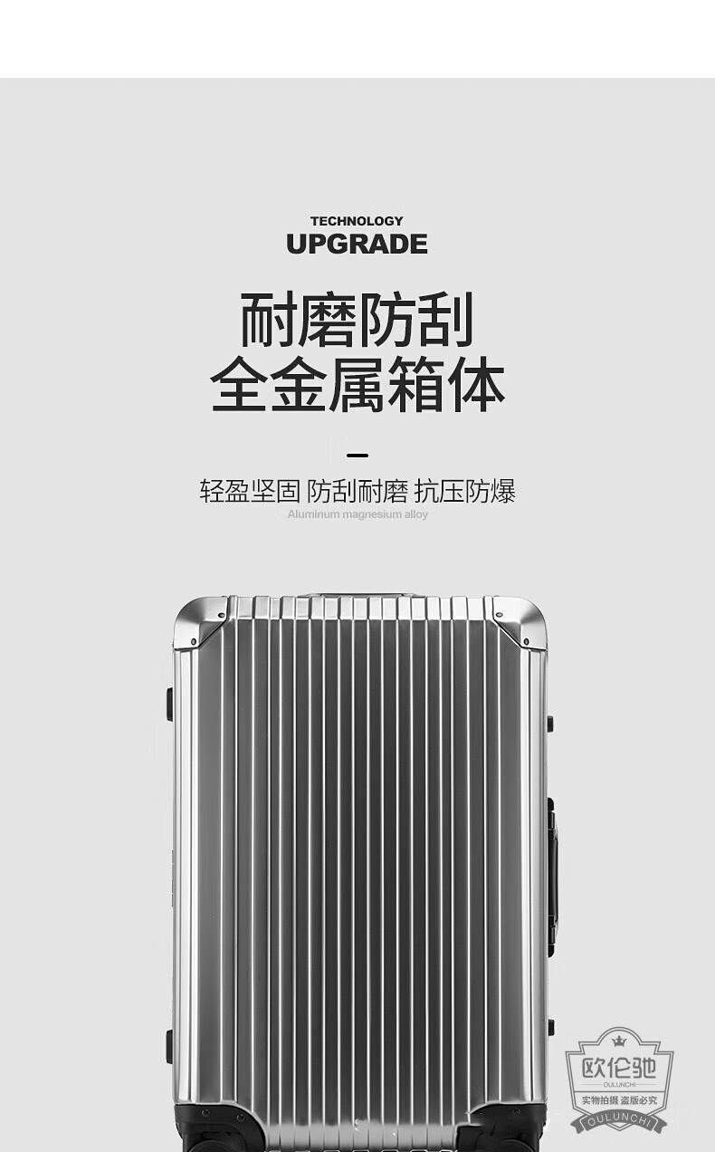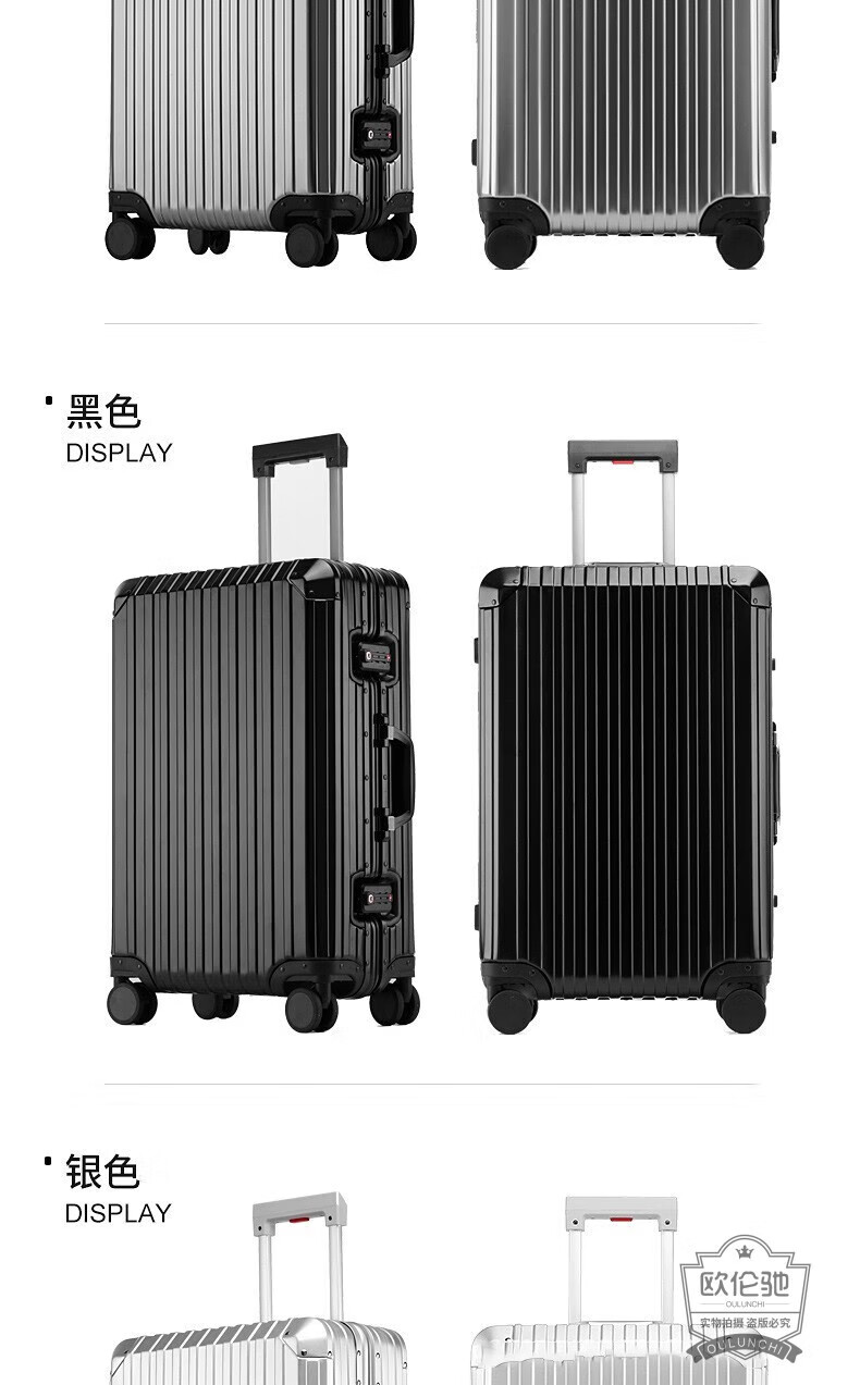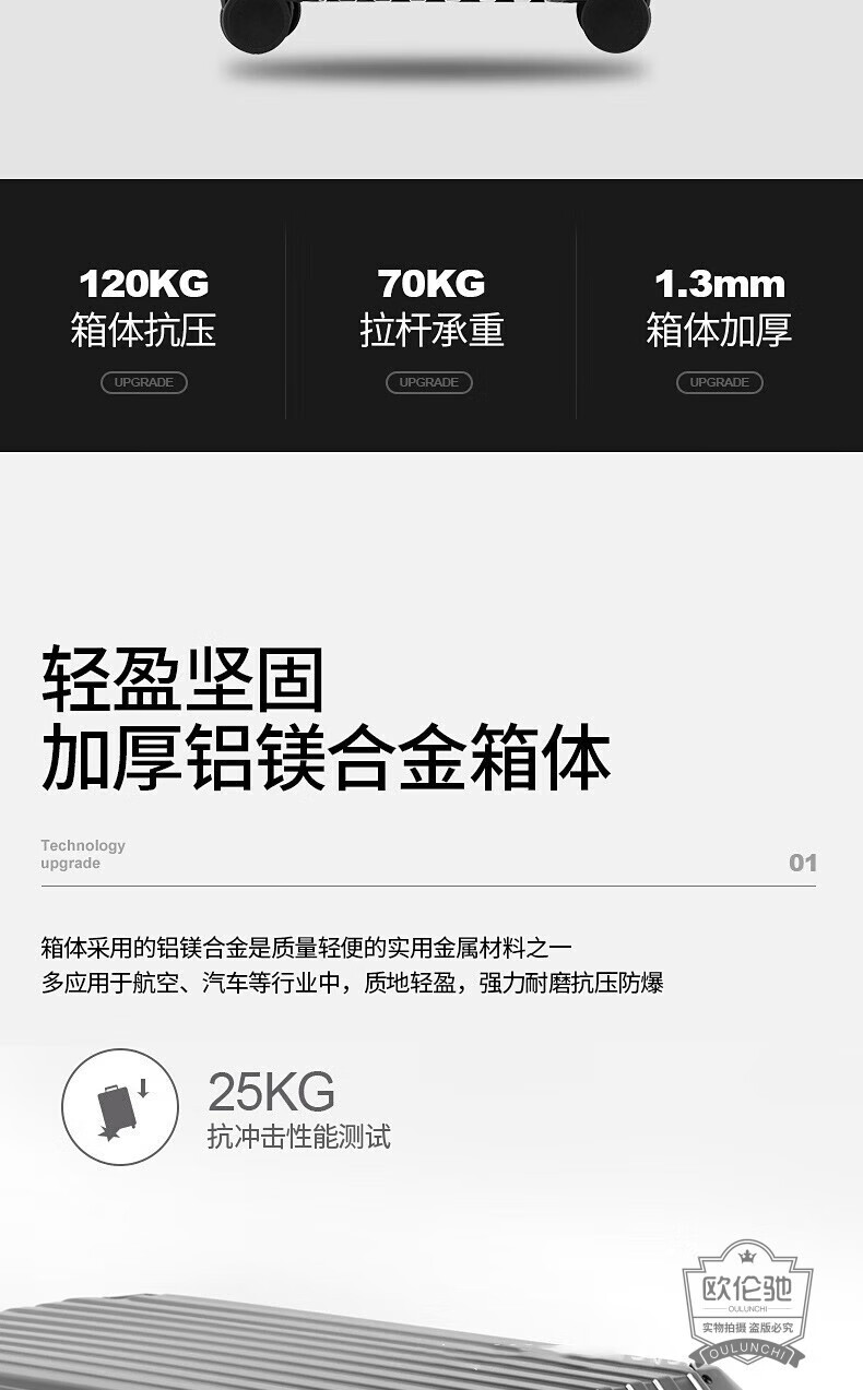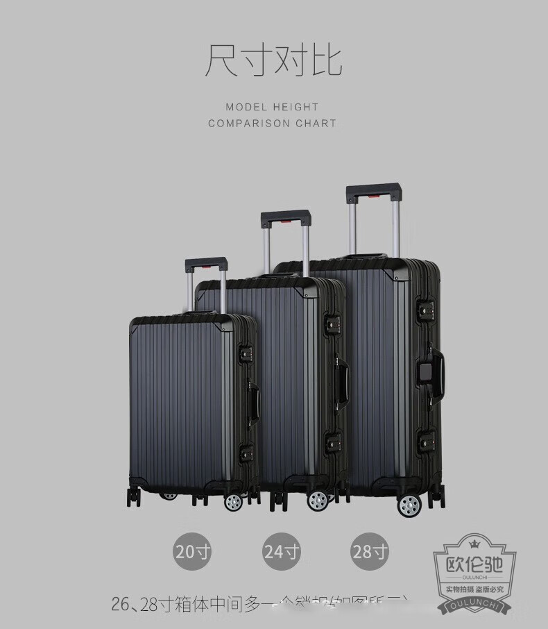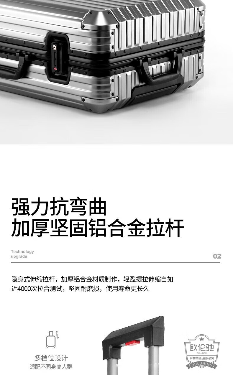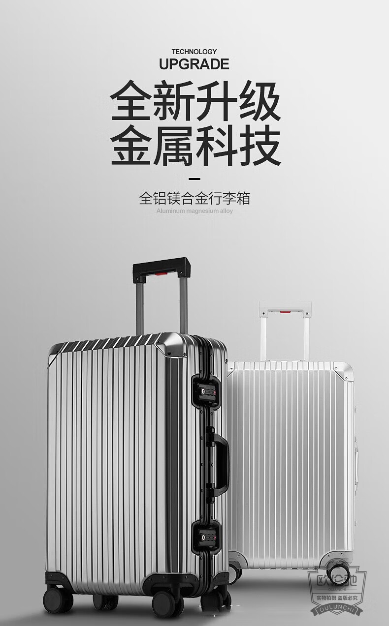 OULUNCHI new suitcase all-aluminum magnesium alloy trolley case universal wheel suitcase men's and women's password boarding case black 28 inches