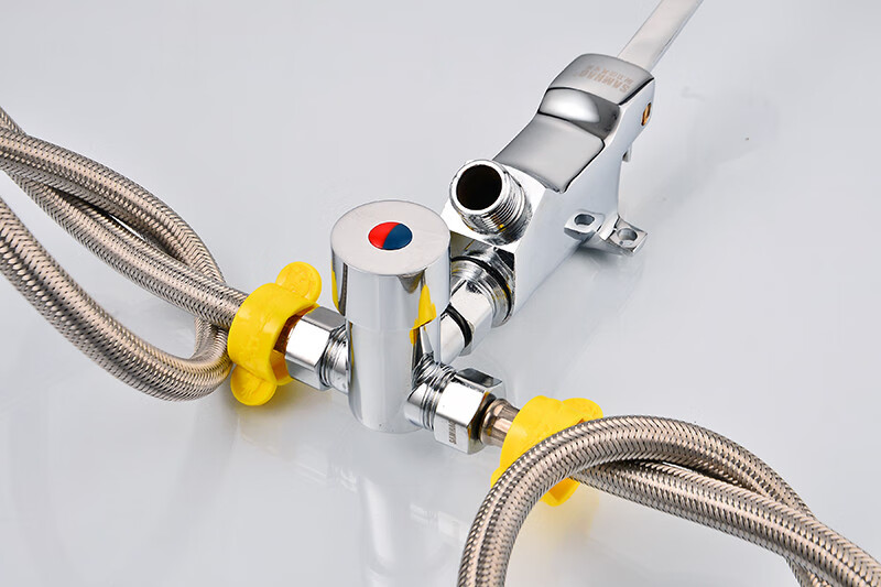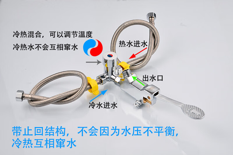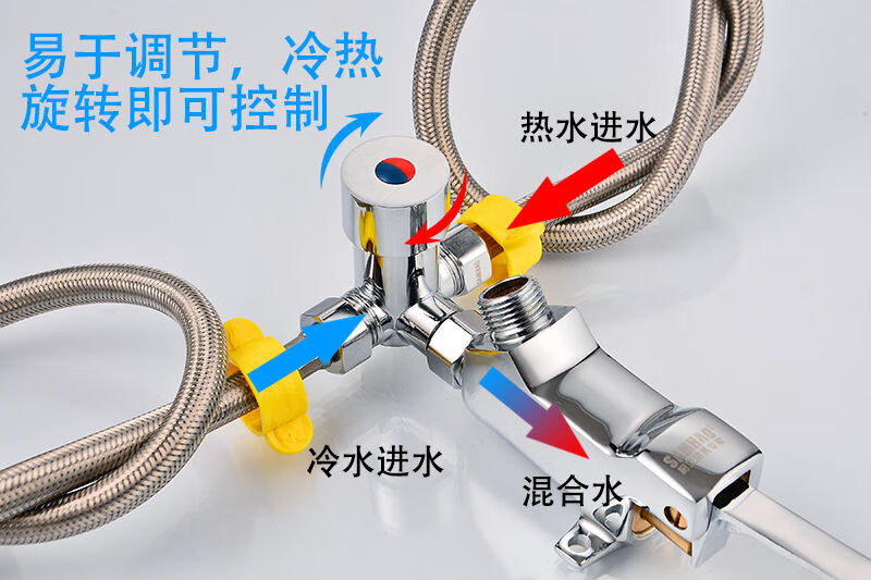 Moyi hot and cold water foot-operated faucet thermostat valve mixing valve three-way two-in and one-out all-copper regulating valve induction faucet single thermostat valve