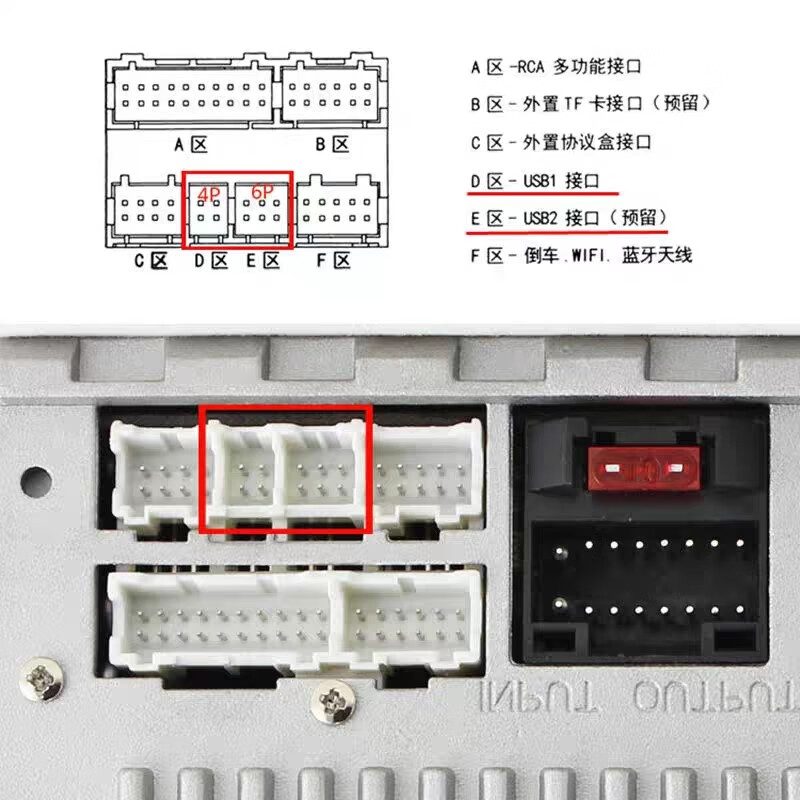 Car Android Large Screen Navigation 4P6P Needle Universal Dual USB Panel Adapter Cable Data Cable to Car U Disk 1.2m 4P 6P Dual USB Square Model