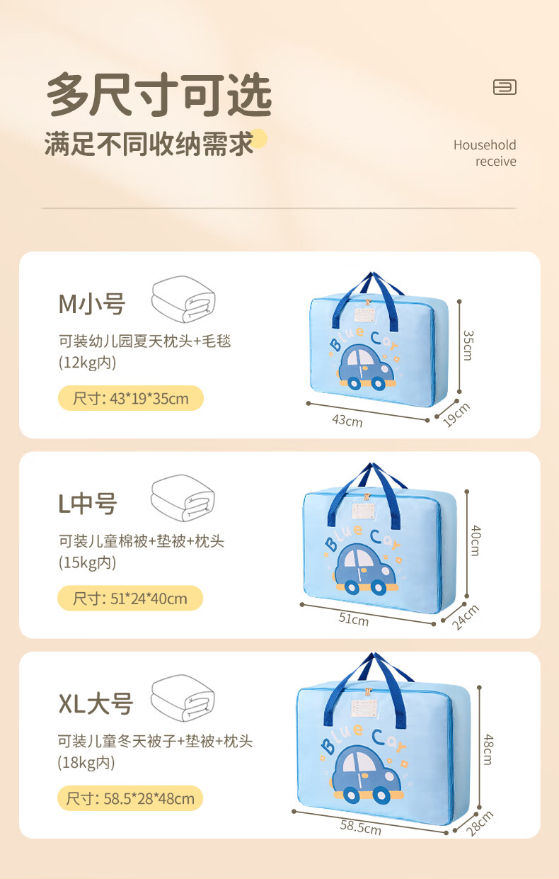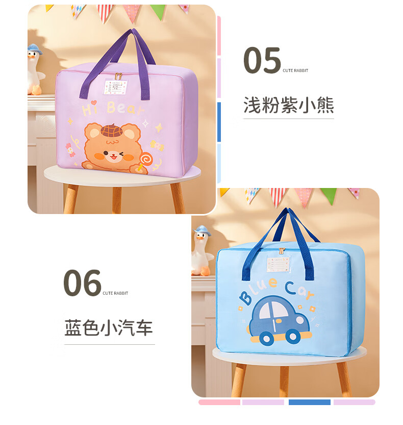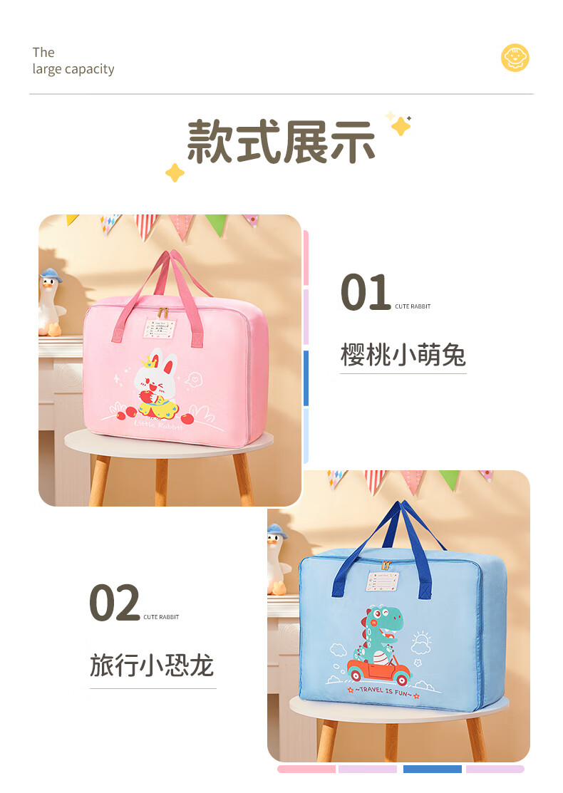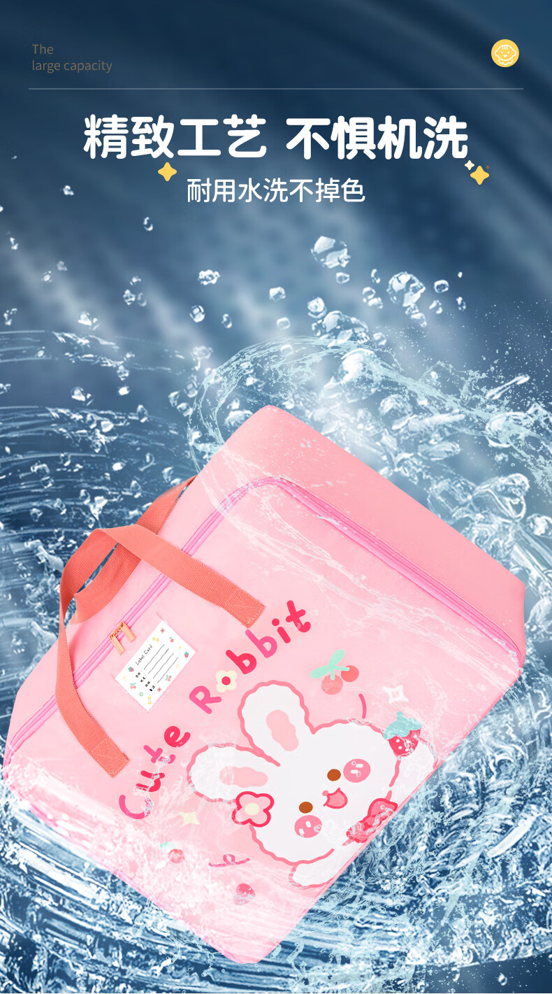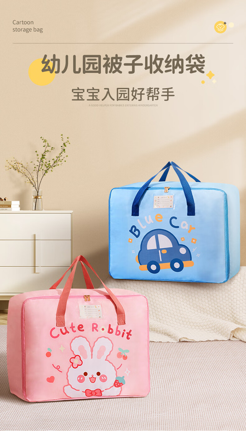 Miaopule Kindergarten Bedding Storage Bag Cartoon Entry Items Quilt Waterproof Children's Storage Bag Handbag Luggage Bag Sakura Pink Rabbit Rising Side Zipper + Three Layers Thickened Slant Large Size