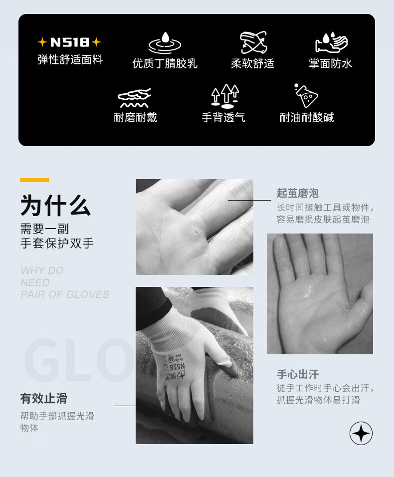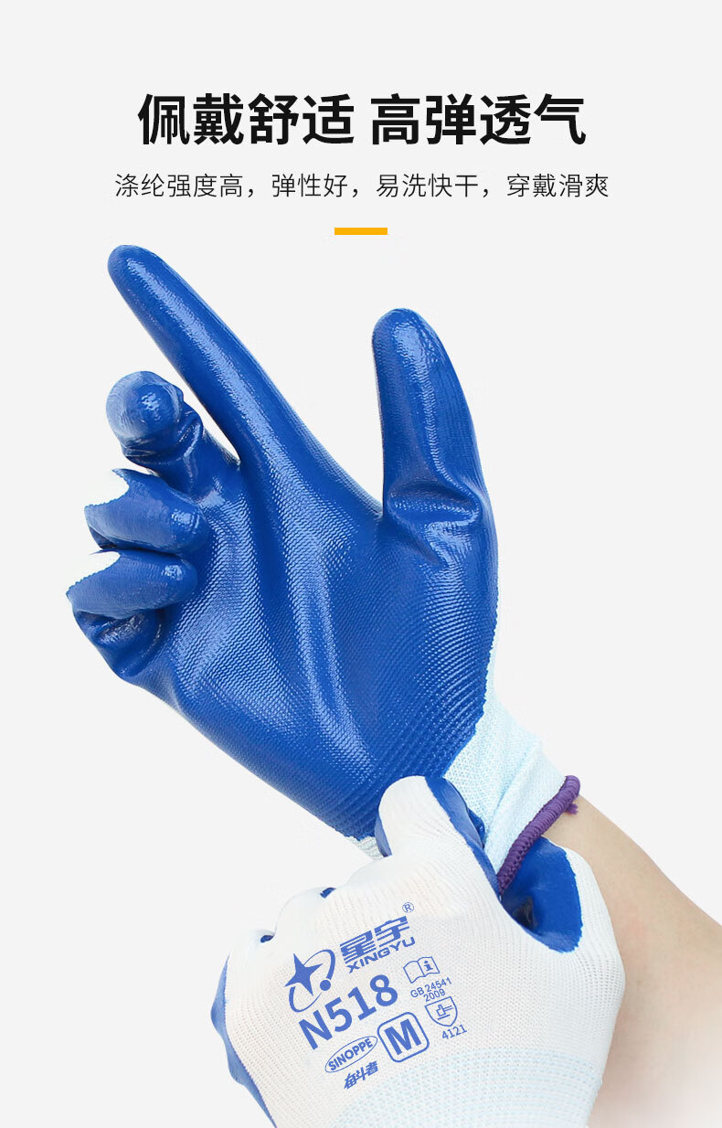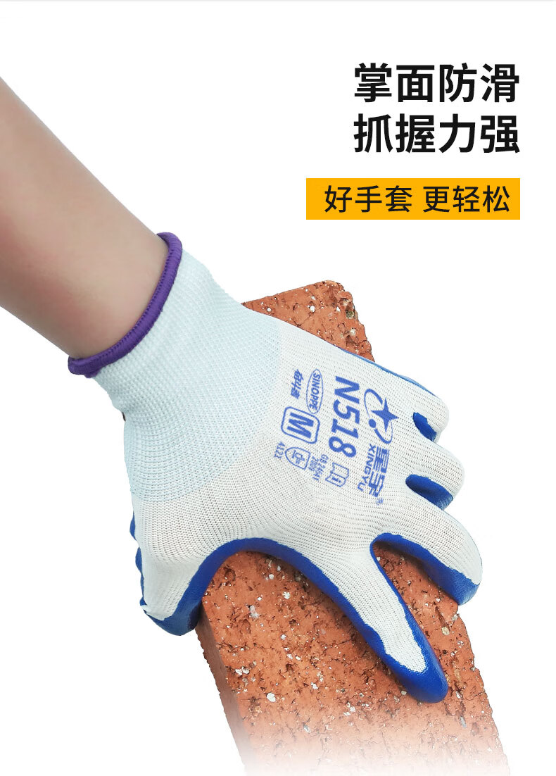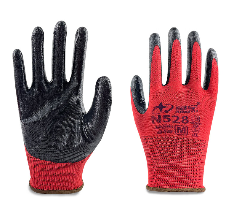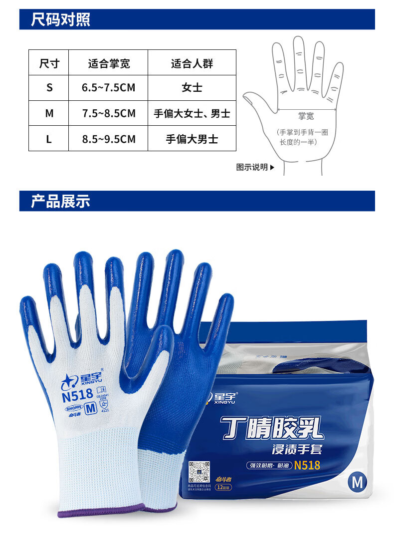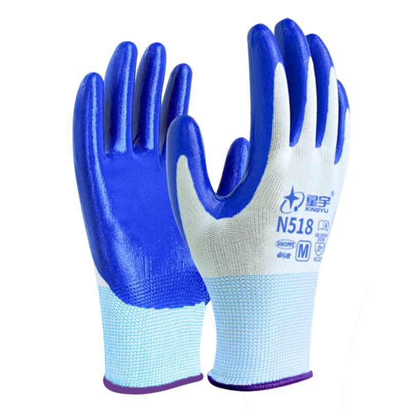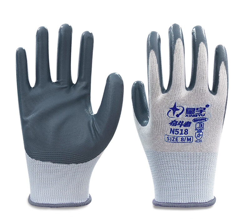 Xingyu labor protection nitrile rubber gloves for work on site, non-slip, wear-resistant, thin latex work, breathable and non-stinky, 12 pairs of Xingyu N518 gray, women's small size S