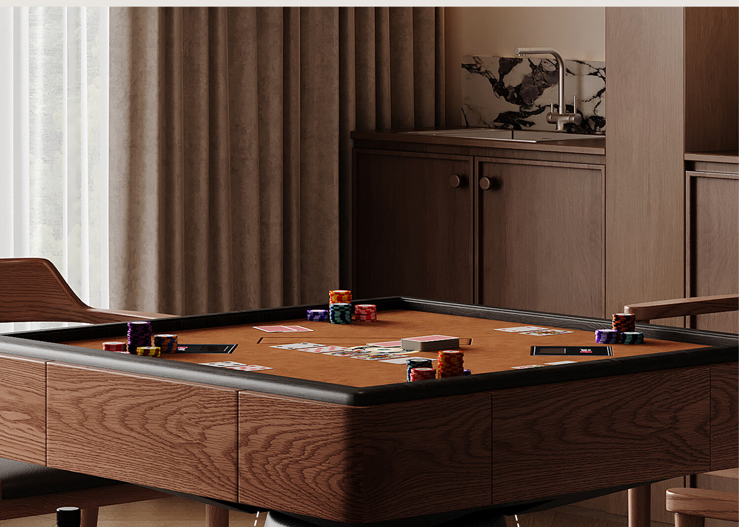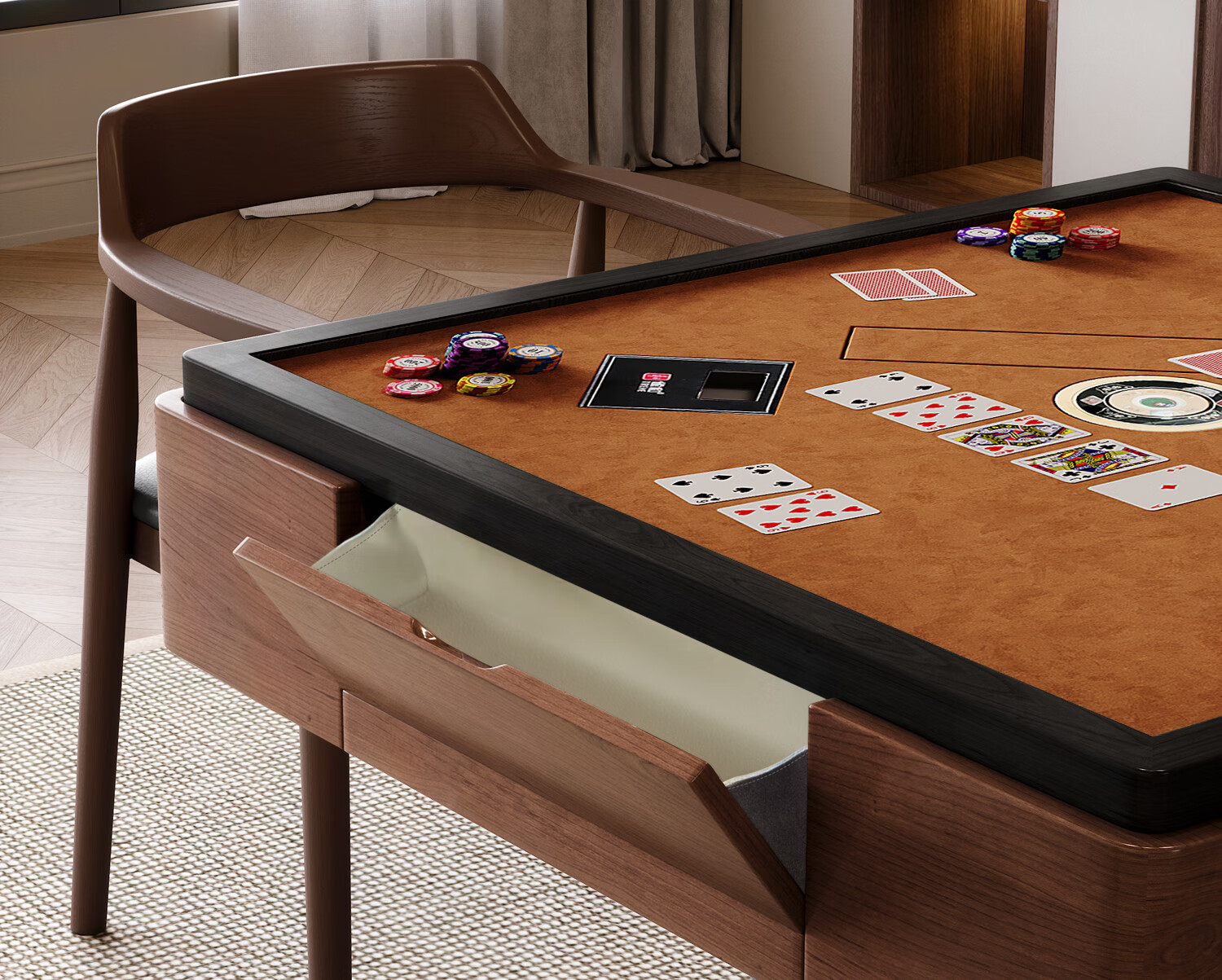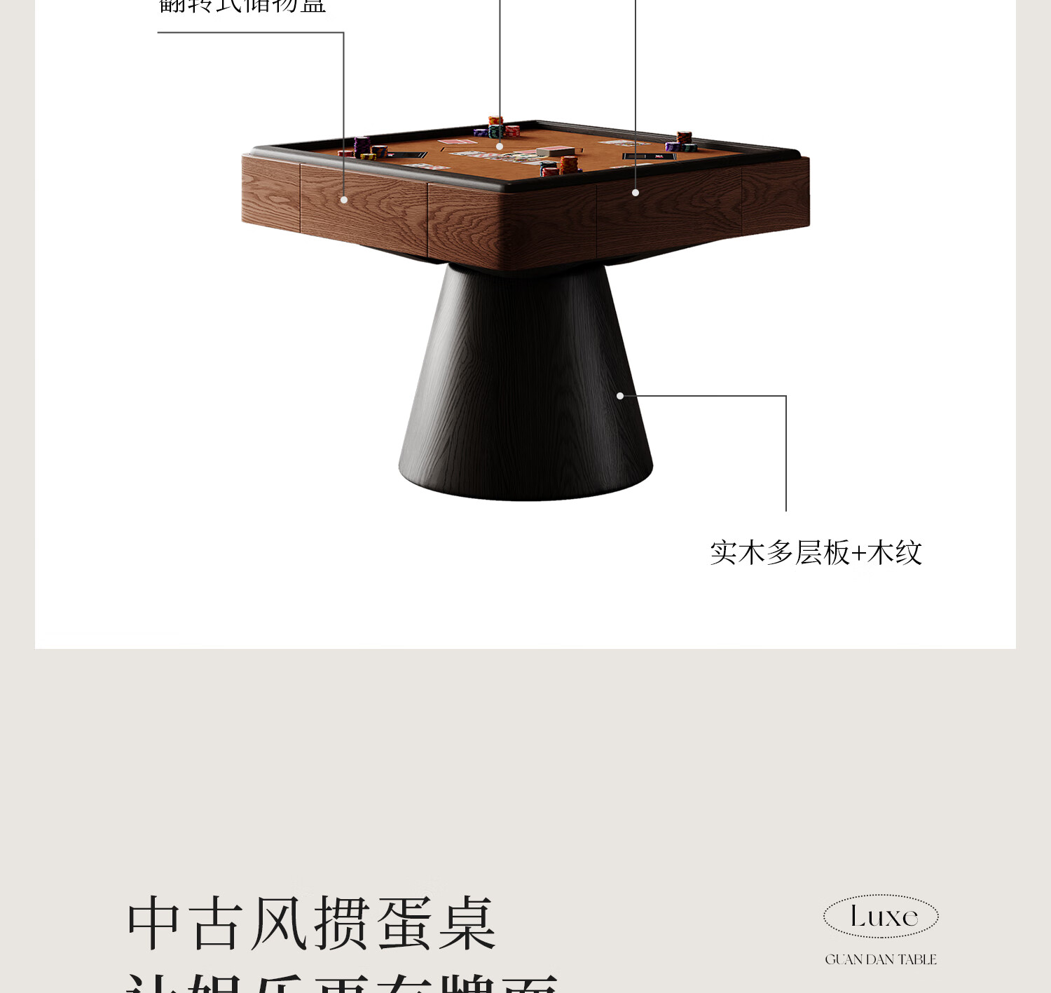 Zhige egg-beating table solid wood fully automatic professional egg-beating table high-end medieval style electric card table multi-functional square table Muyue | egg-beating table
