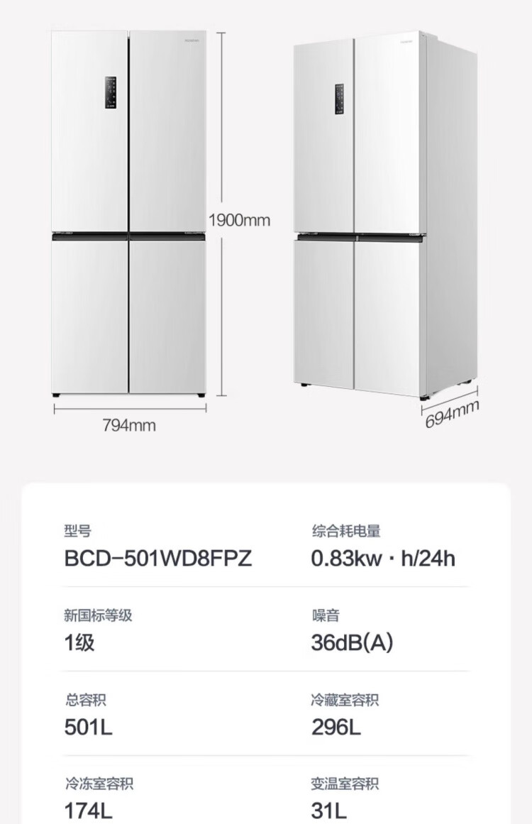 Ronshen (Ronshen) 501pro cross four-door embedded first-level energy-efficiency frequency conversion thin active sterilization