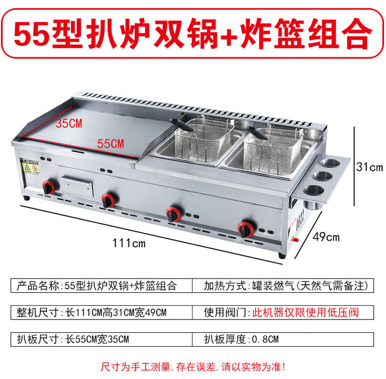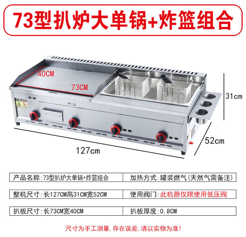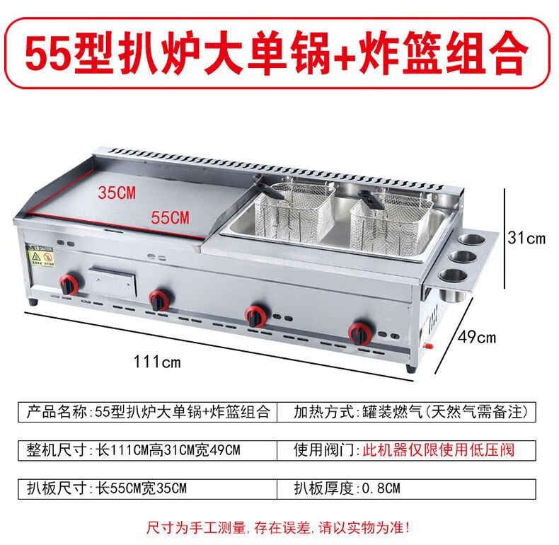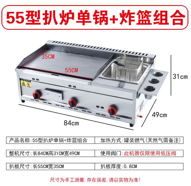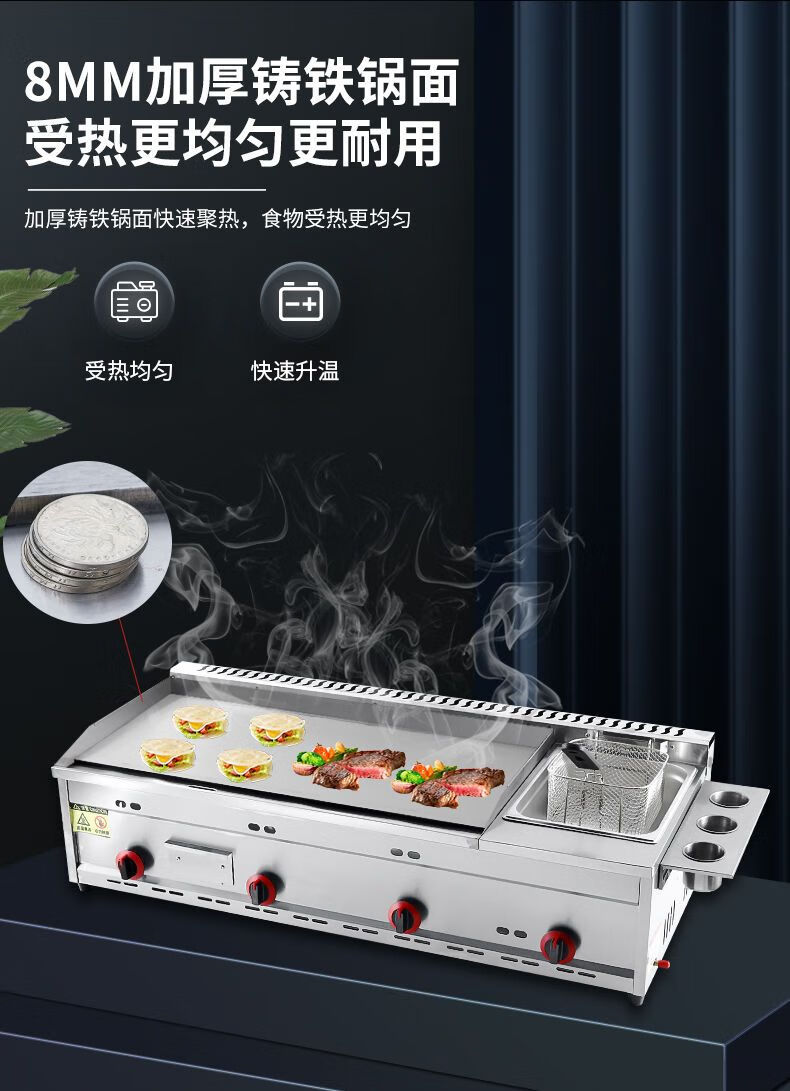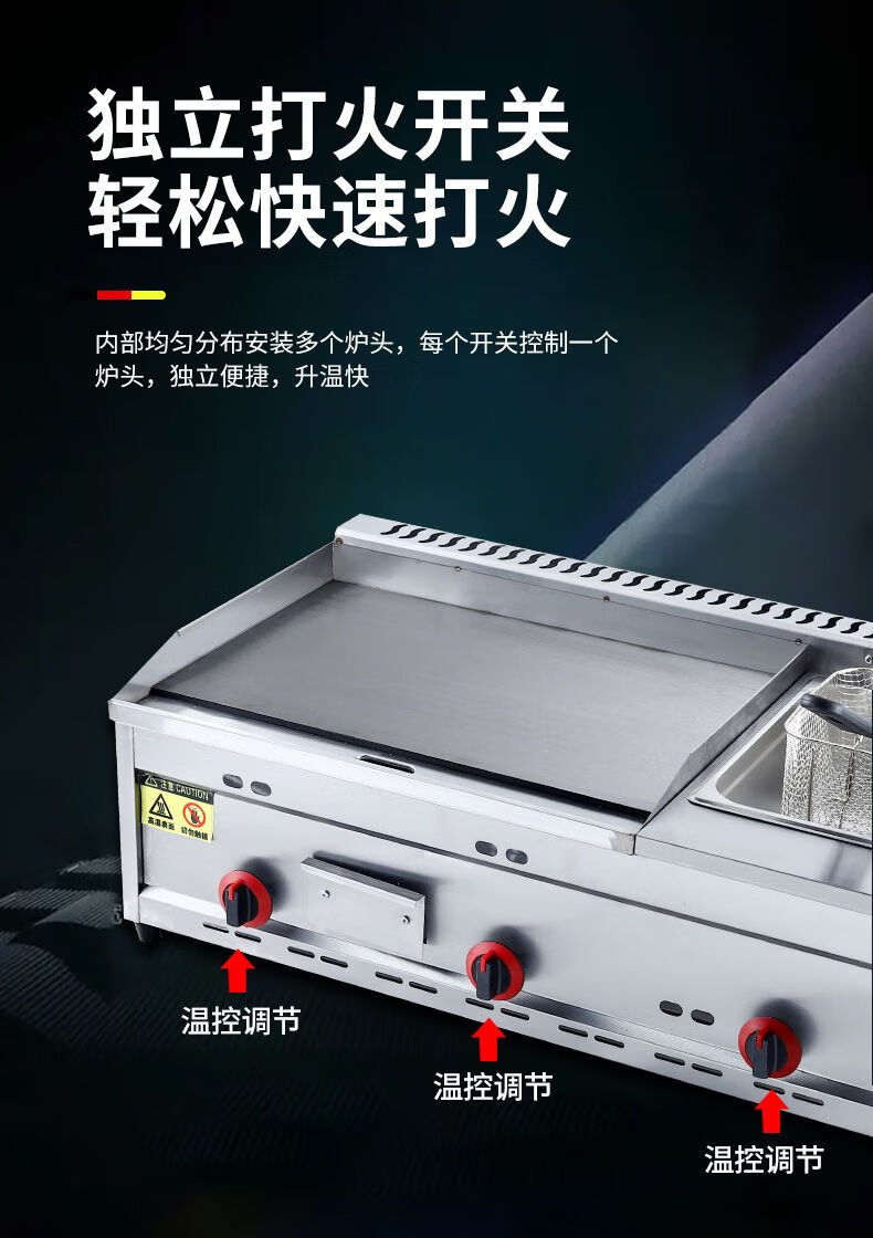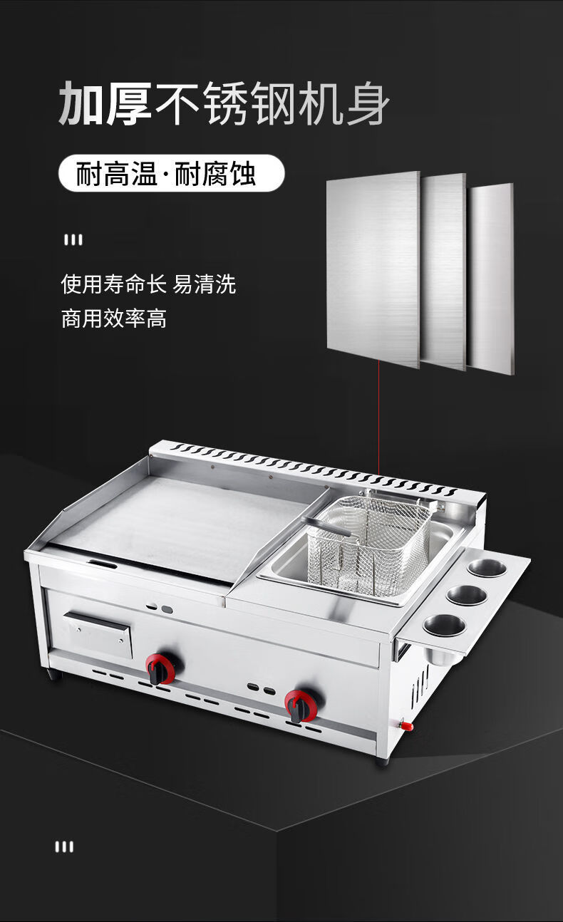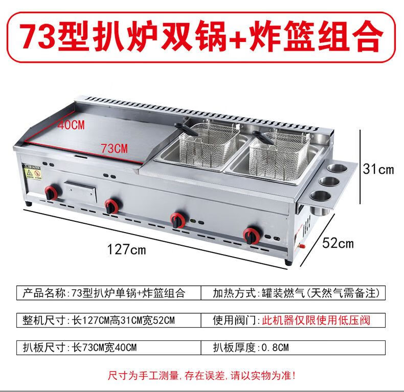 Jiafeilai hand cake machine commercial stall gas teppanyaki teppanyaki fryer commercial gas griddle fryer all-in-one machine thickened 73 type griddle single fryer combination with cooking basket