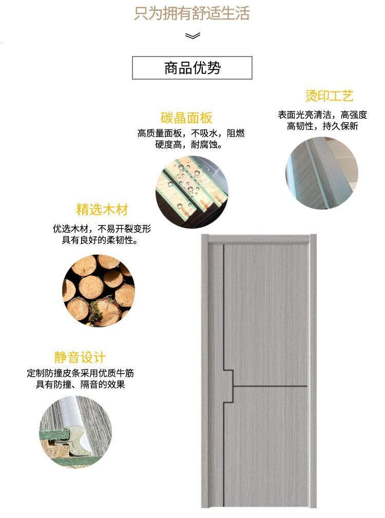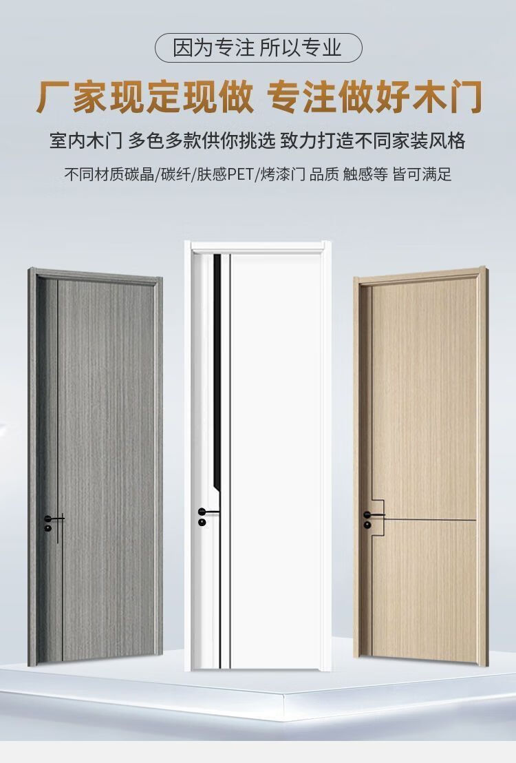 Srock Solid Wood Door Minimalist Carbon Crystal Solid Wood Interior Door Composite Wood Door Light Luxury Set Door Bedroom Door Environmentally Friendly Customized Room Door Rental Room Paint-Free Wooden Door Entry Door Carbon Crystal Door Molded Series (See details for various styles) Fir wood filled door leaf set + upgraded 58 split magnetic lock
