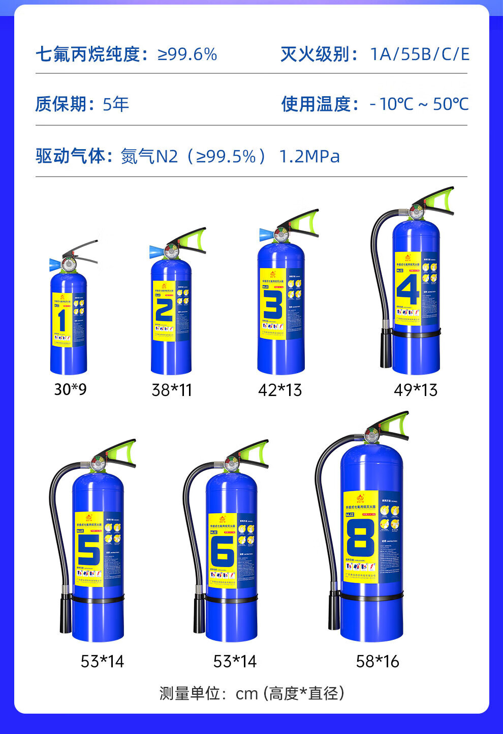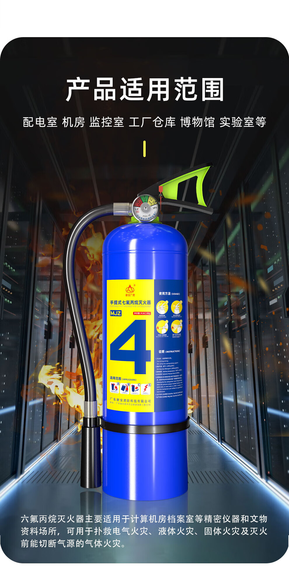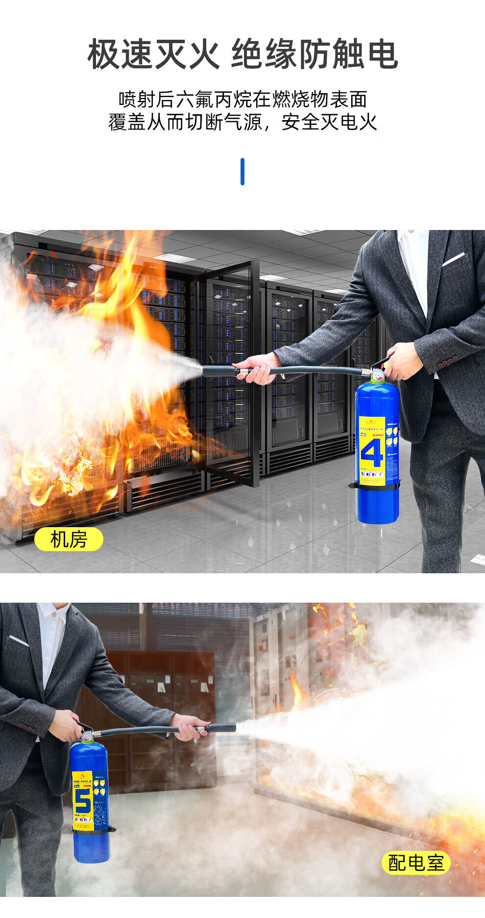 Portable heptafluoropropane fire extinguisher 4KG laboratory commercial clean gas hexafluoropropane fire extinguishing equipment 2KG portable heptafluoropropane fire extinguisher