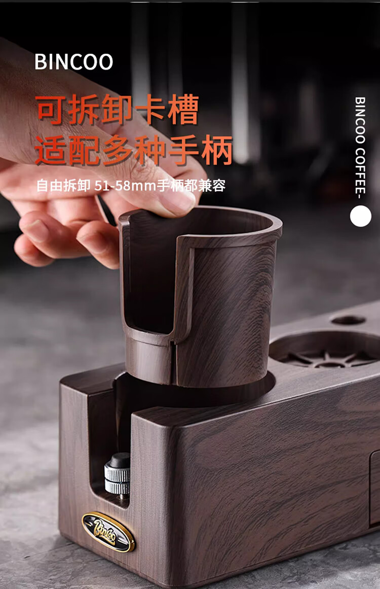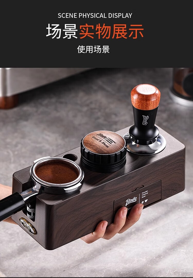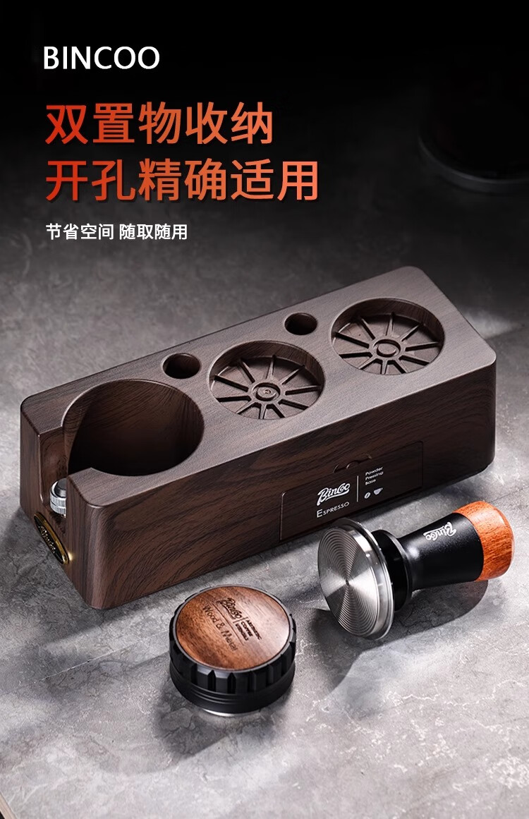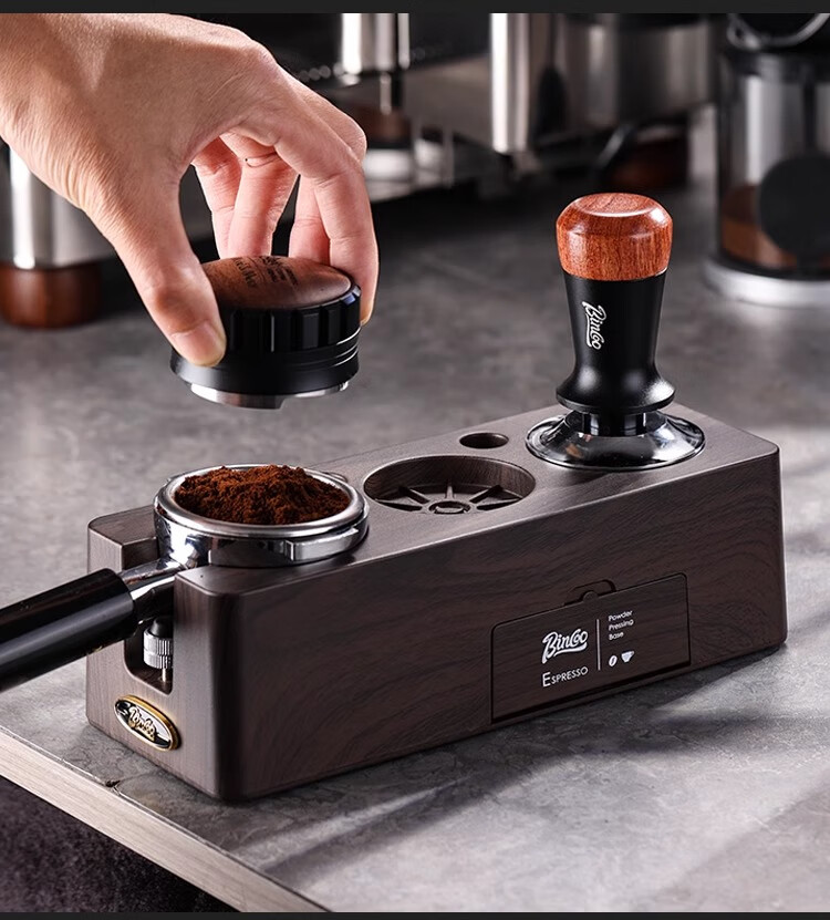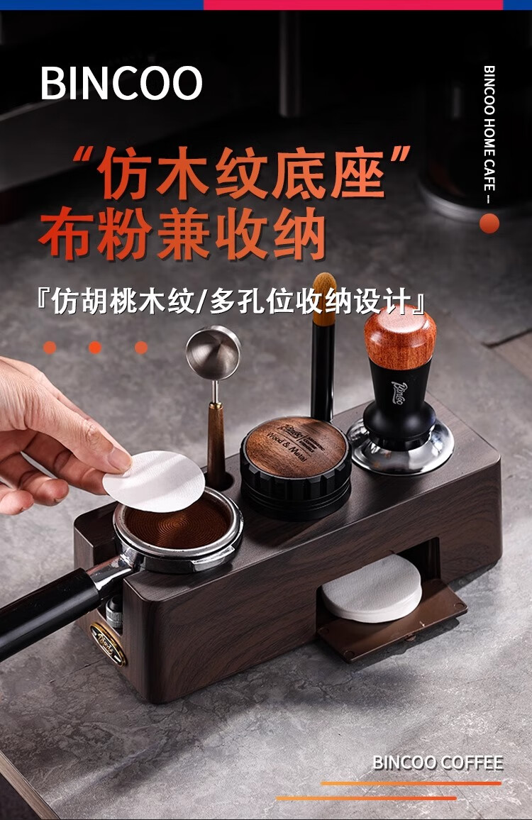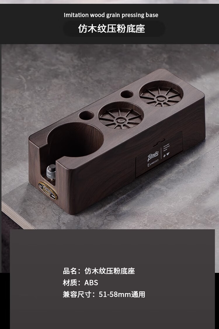 Bincoo Coffee Pressing Powder Base Powder Distributor Set Italian Powder Distributor Handle Pressing Powder Hammer Storage Tool 51/58mm Universal Single Pressing Powder Base-Wood Grain Color