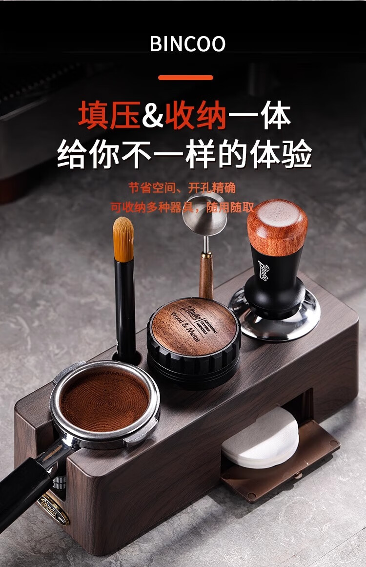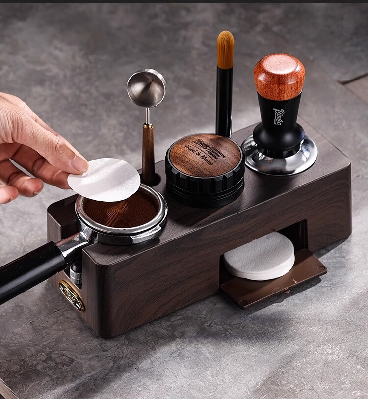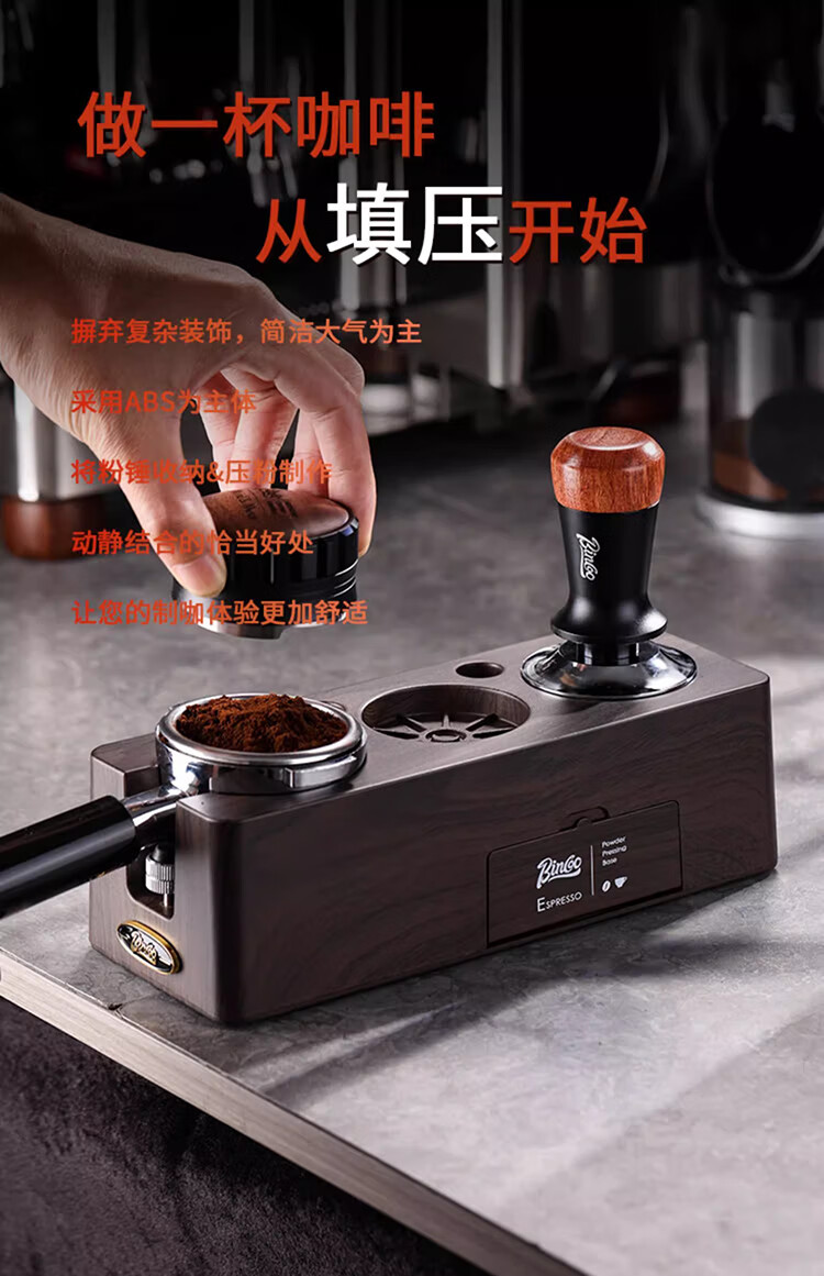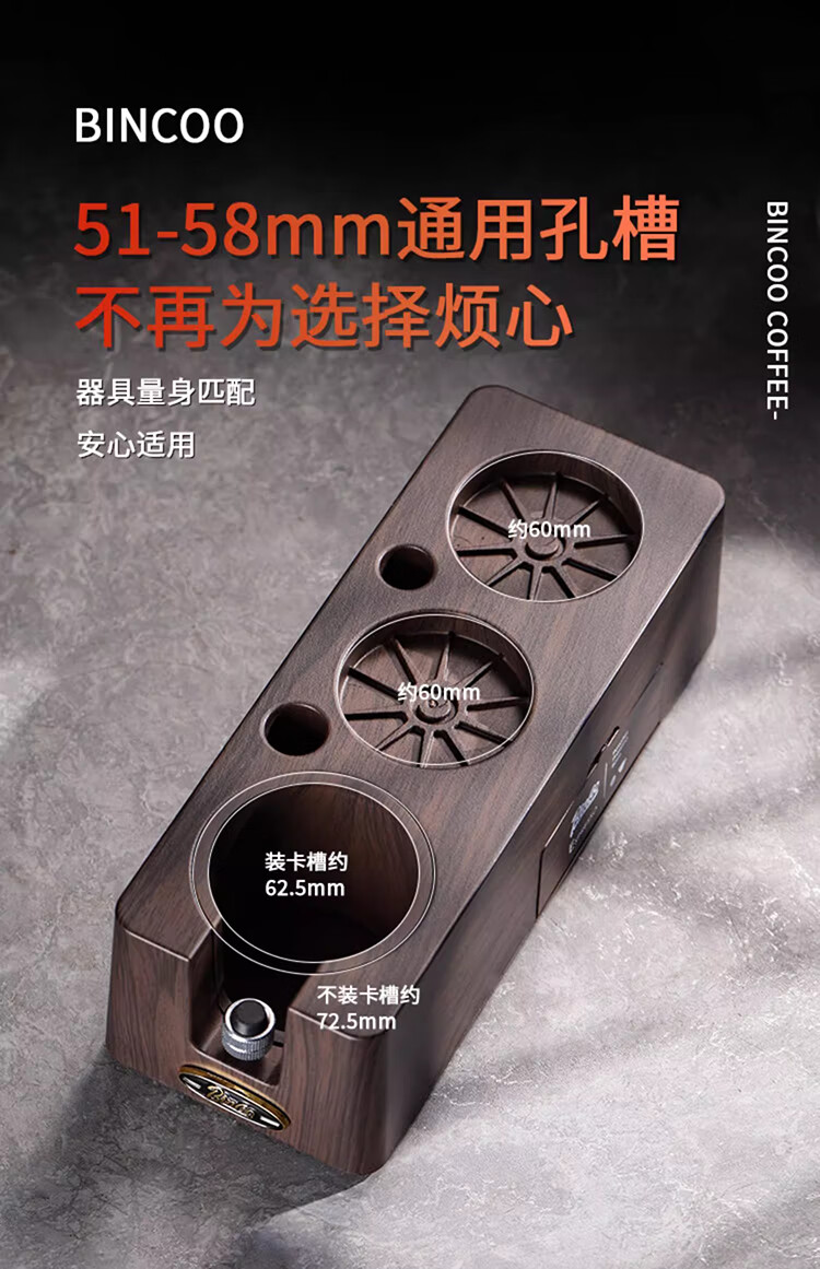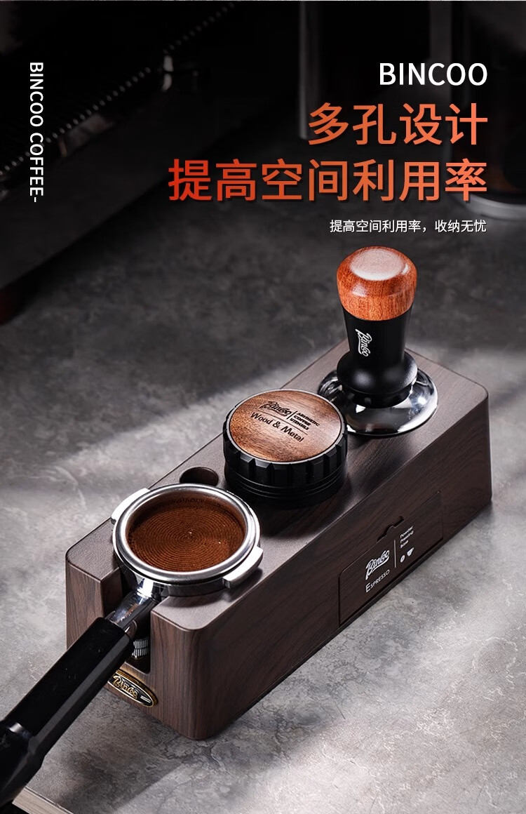 Bincoo Coffee Pressing Powder Base Powder Distributor Set Italian Powder Distributor Handle Pressing Powder Hammer Storage Tool 51/58mm Universal Single Pressing Powder Base-Wood Grain Color