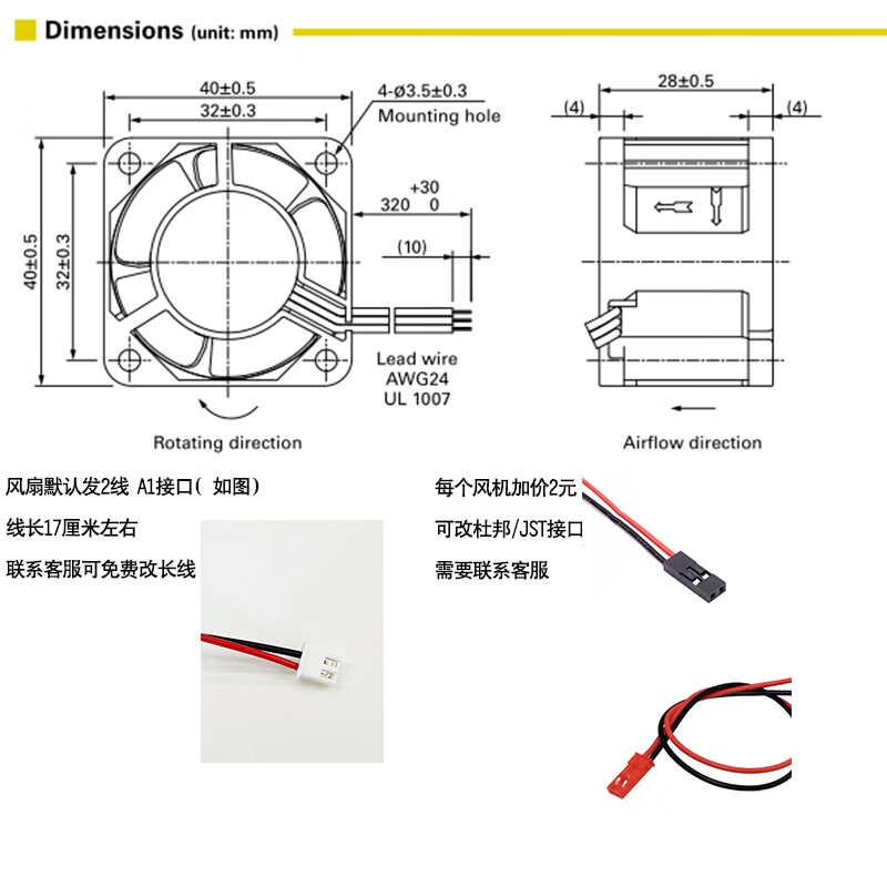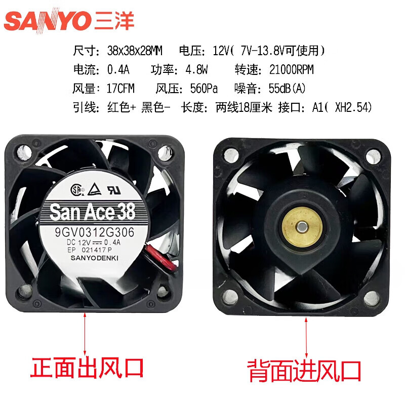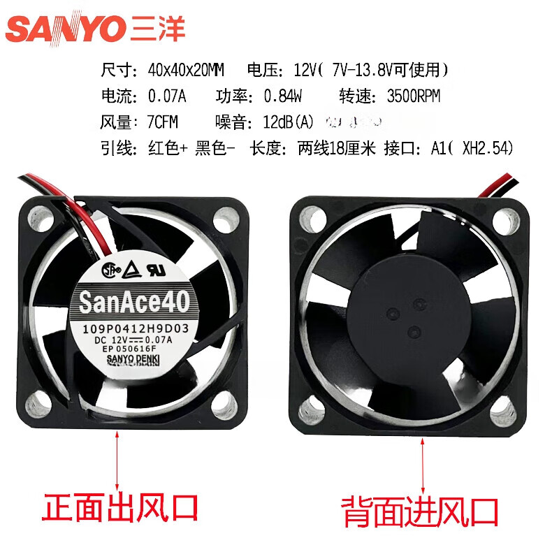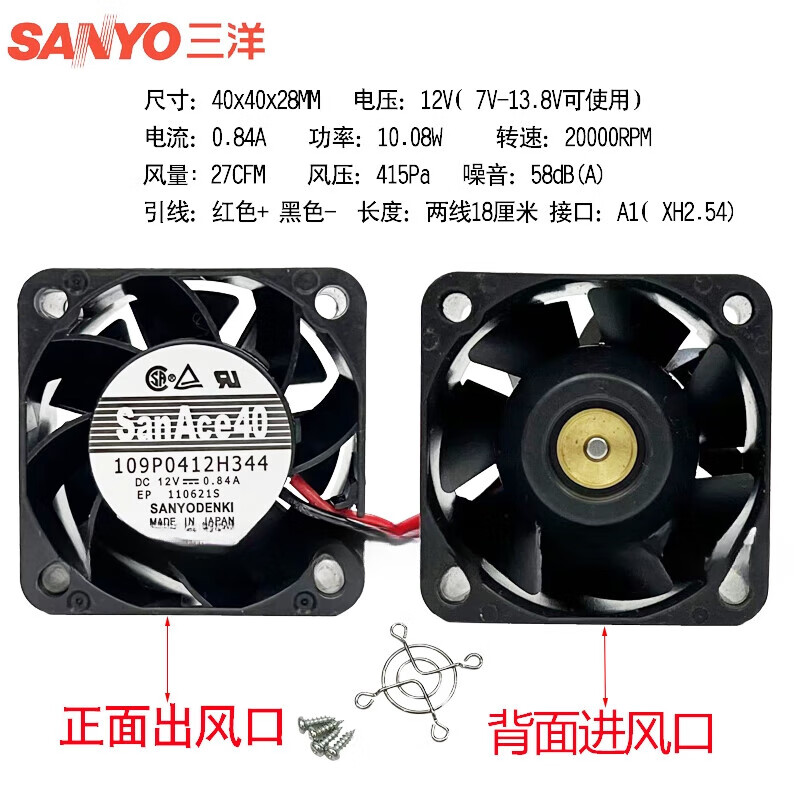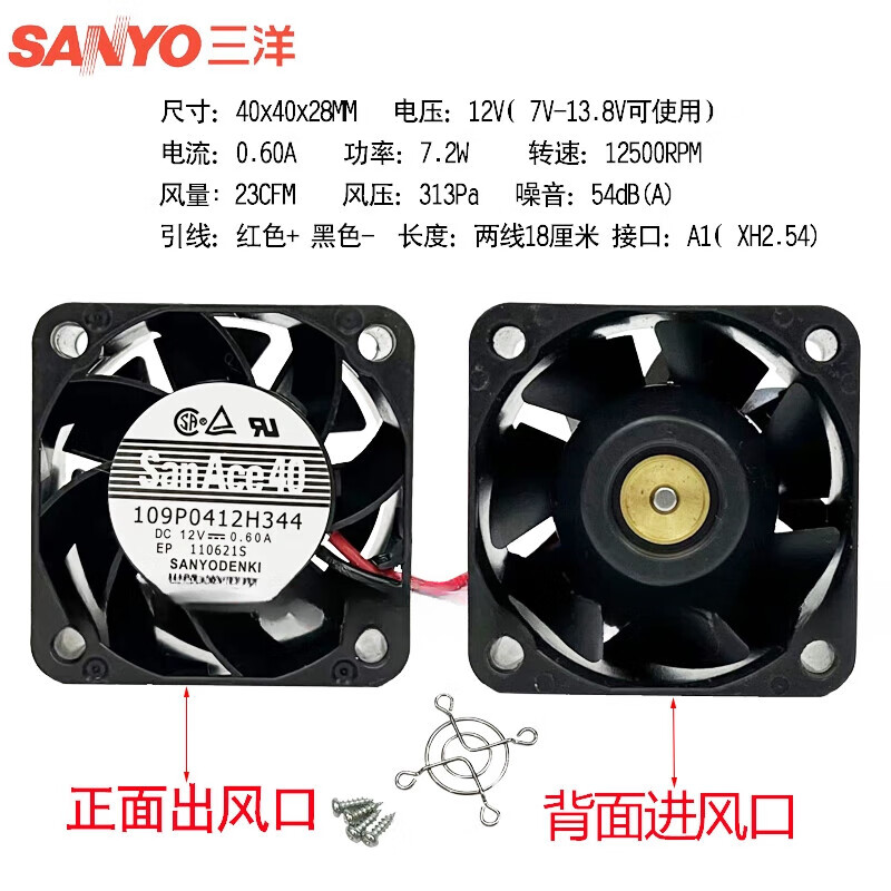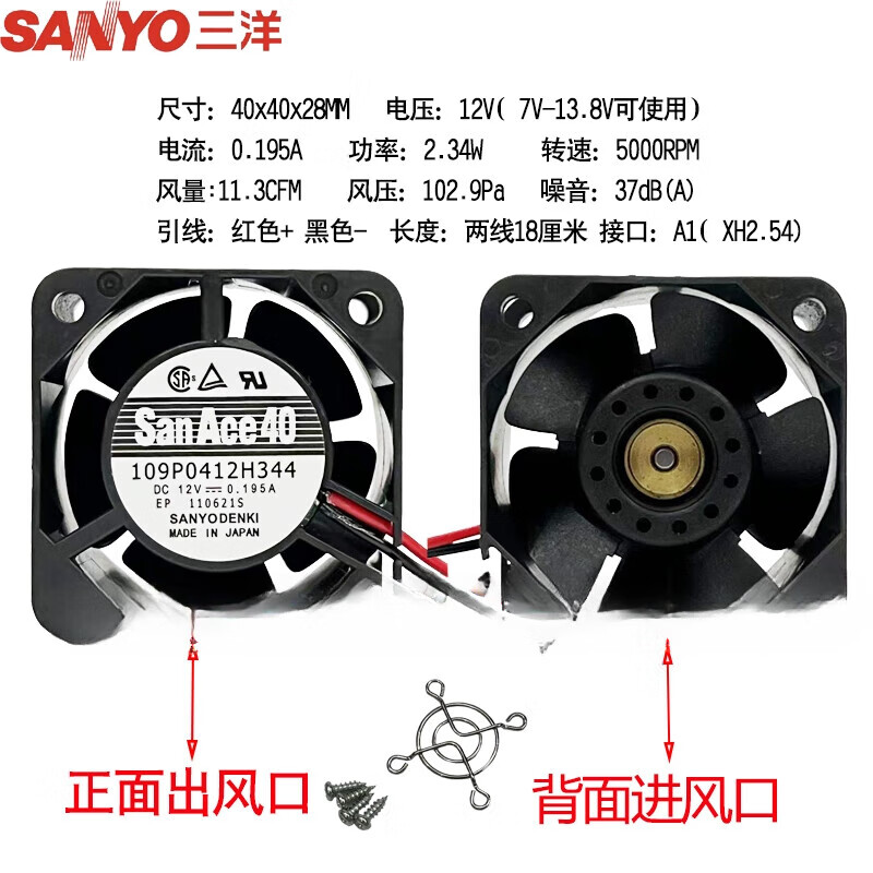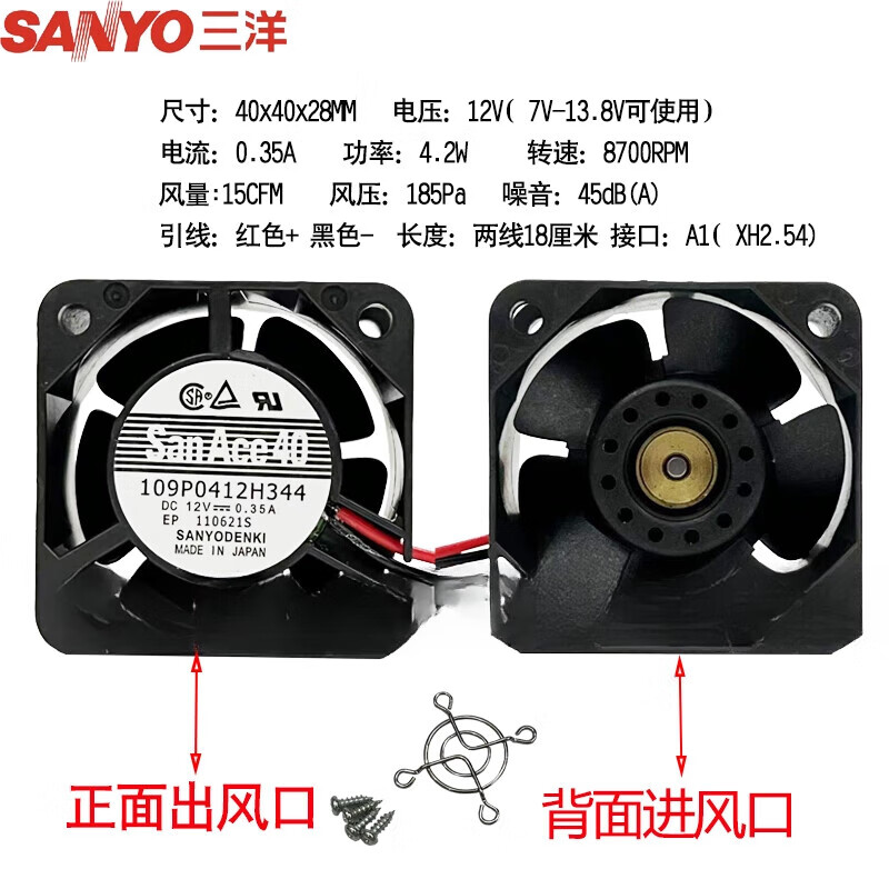 Violent fan 4cm large air volume Japan Sanyo 12V4028 double ball switch cooling fan booster 0.195a (low speed model) 0mm