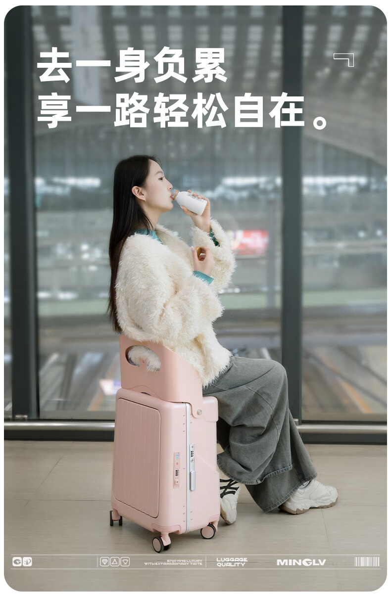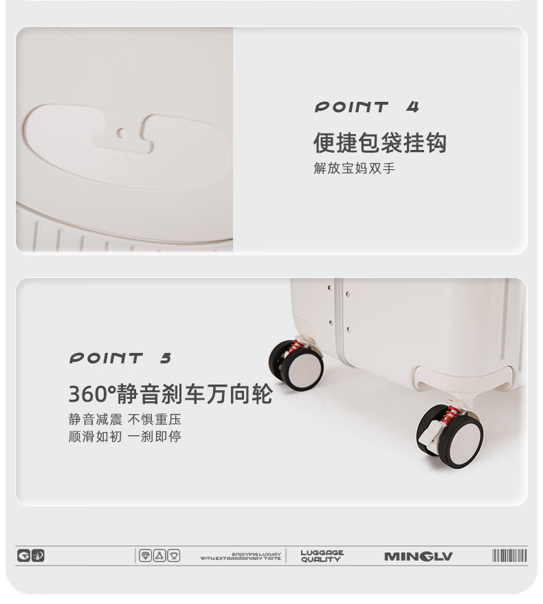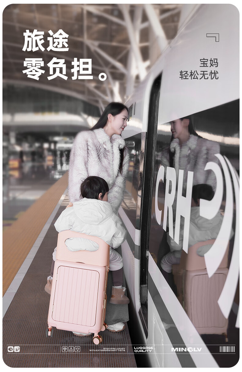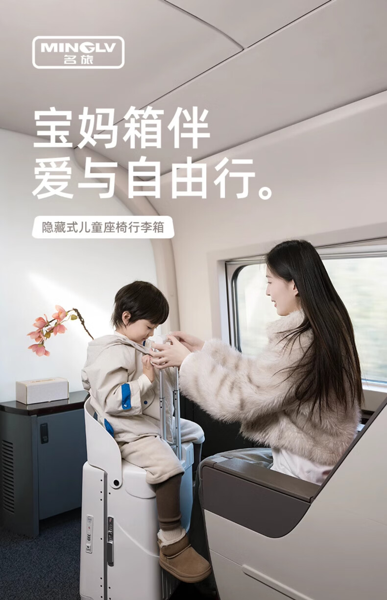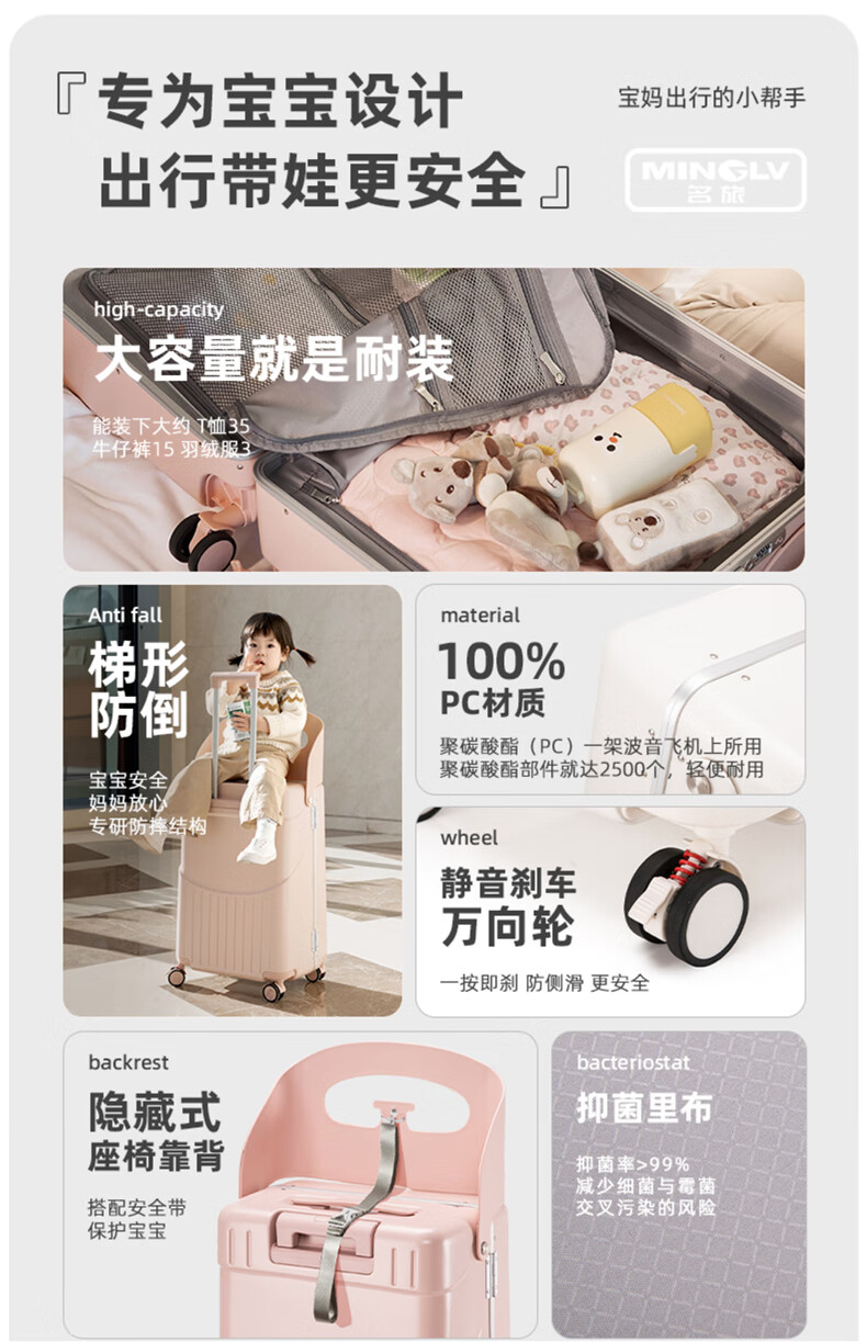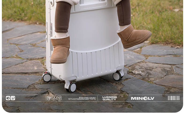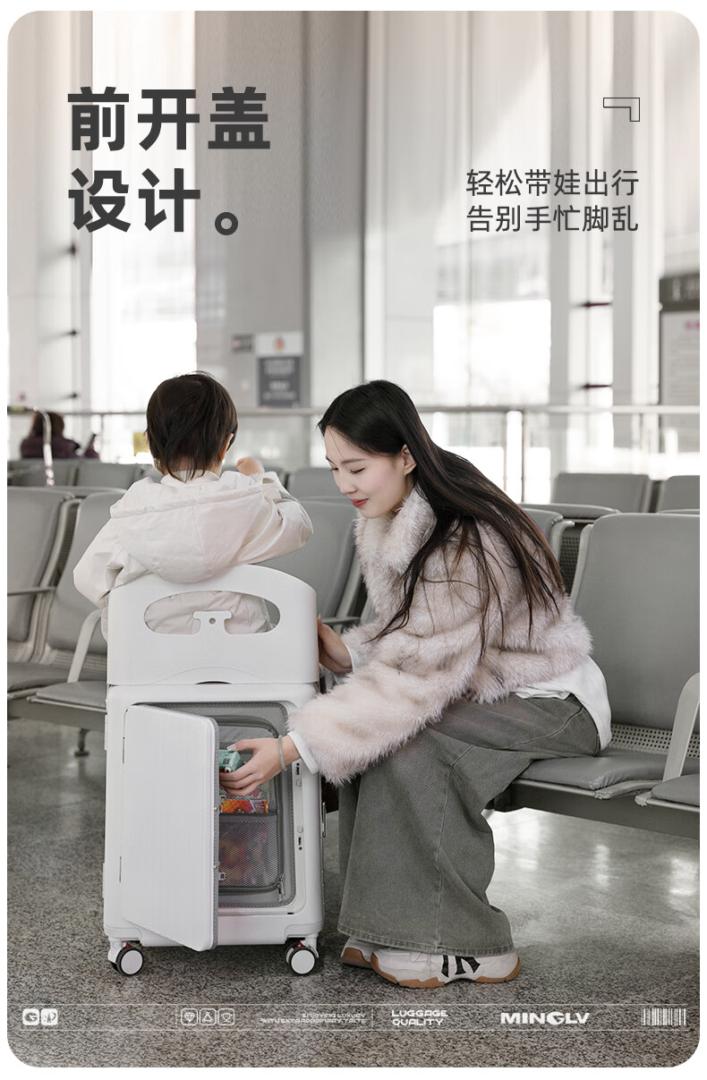 Minglv children's sit-on suitcase 20-inch baby walking artifact suitcase baby parent-child travel boarding mother trolley bag white basic model seat belt + dust cover 20-inch standard boarding suitcase