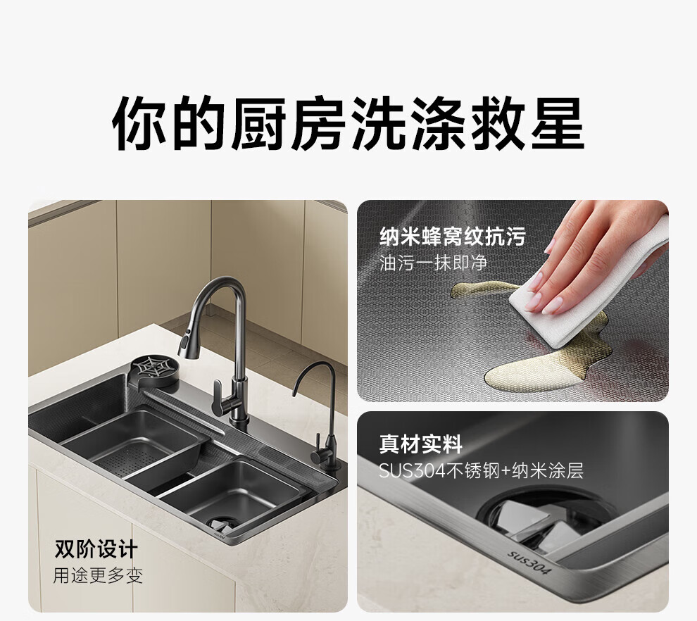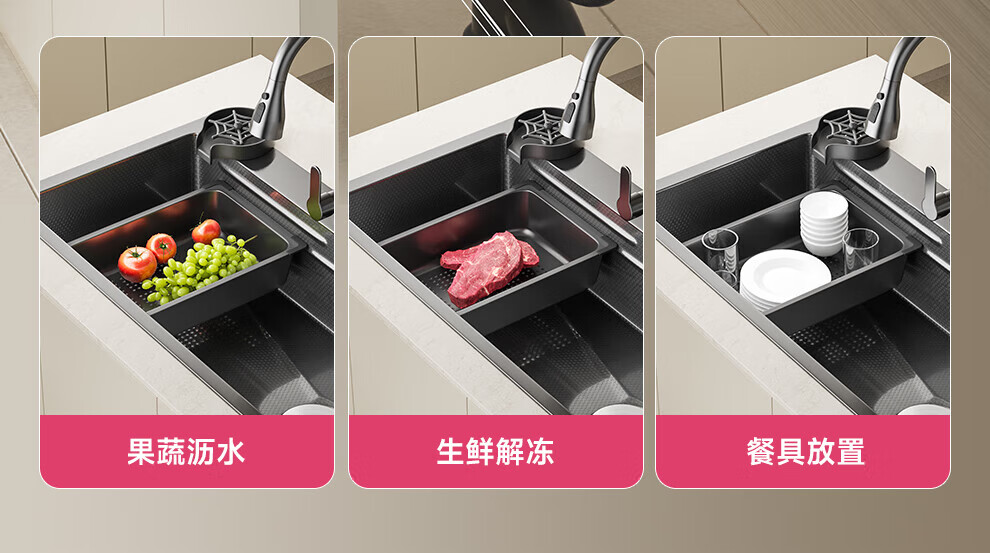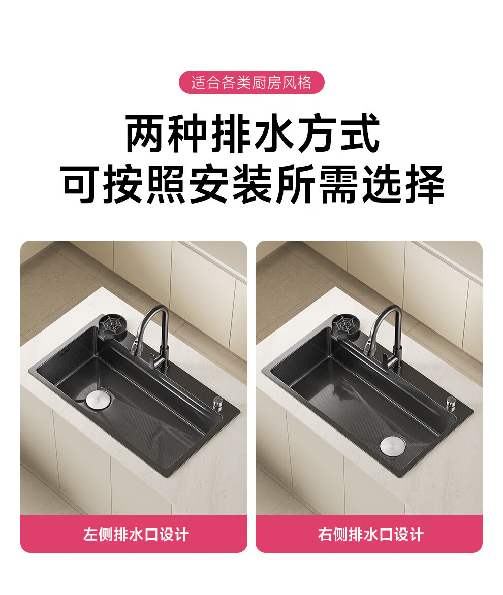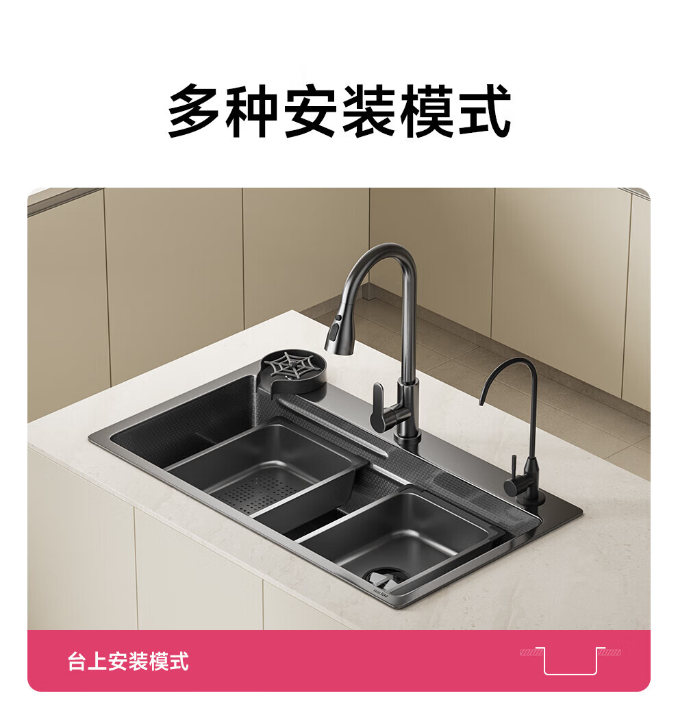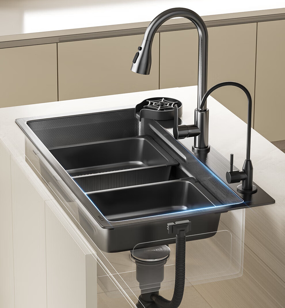 JOMOO sink 5.0 thickened 304 stainless steel kitchen sink thickened nano-antibacterial large single-slot dishwashing sink 60-46 multi-functional luxury package