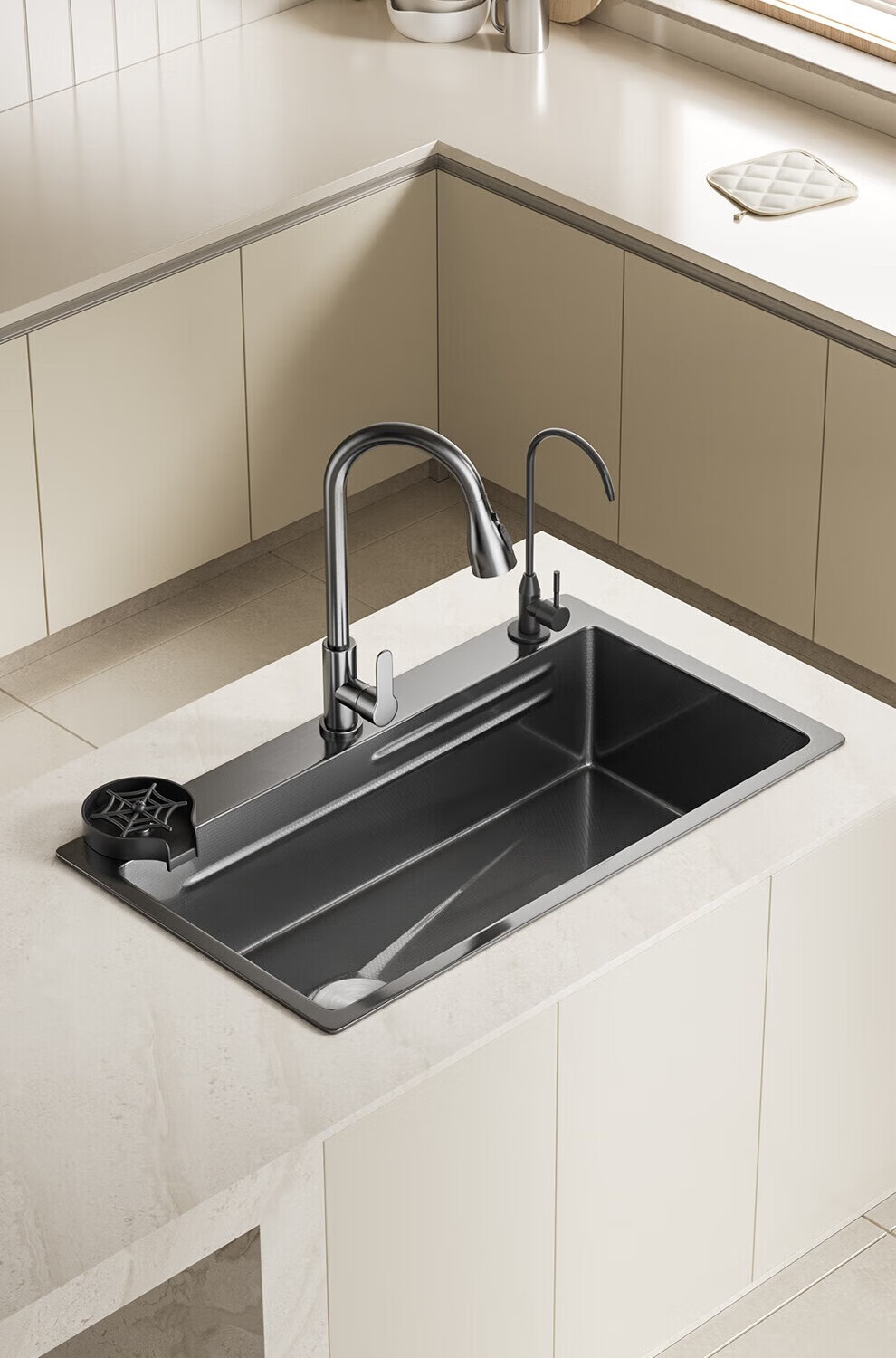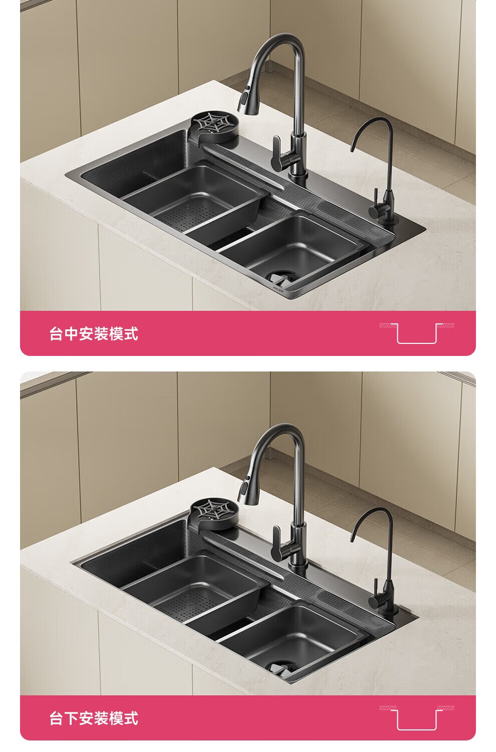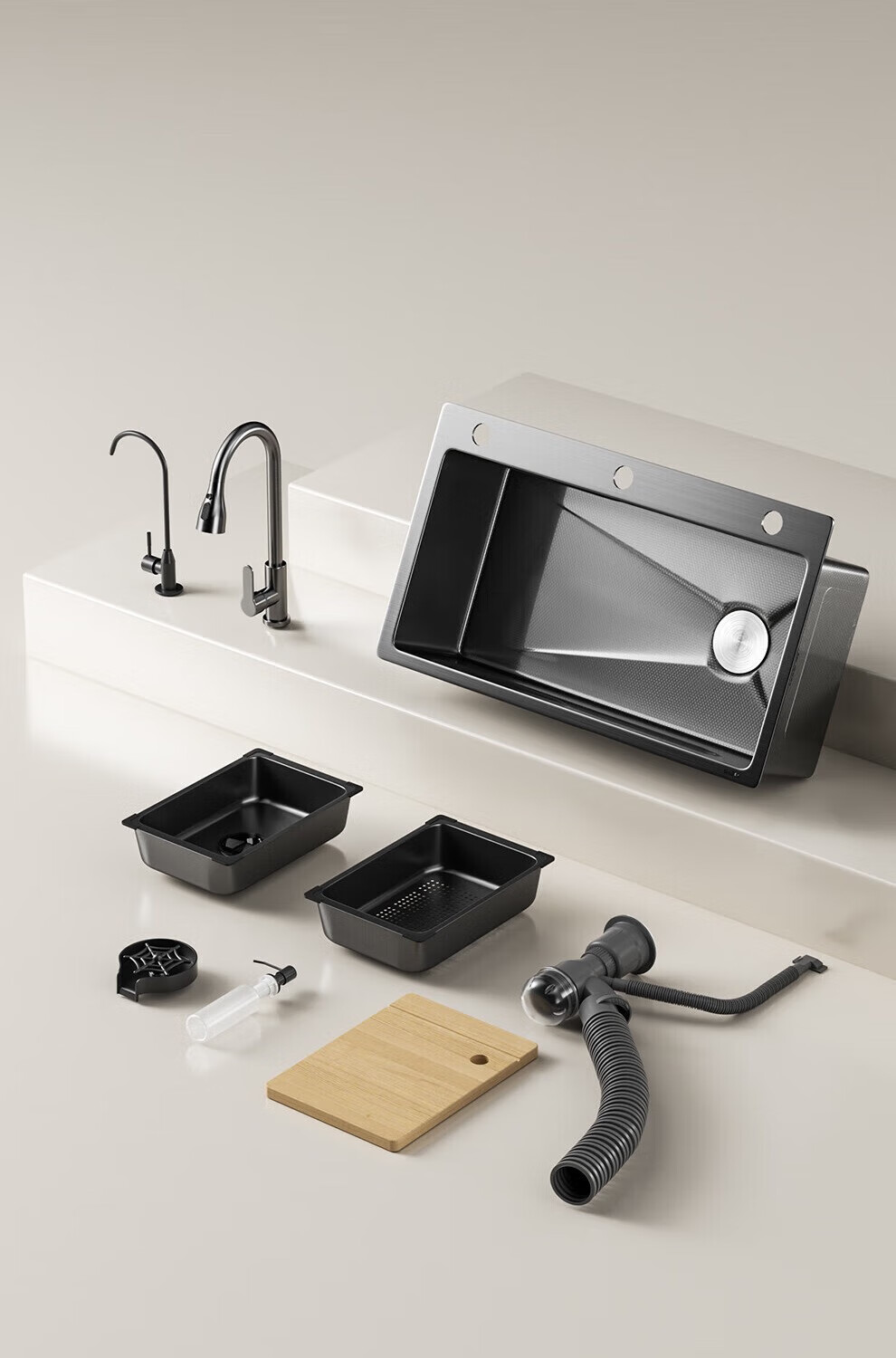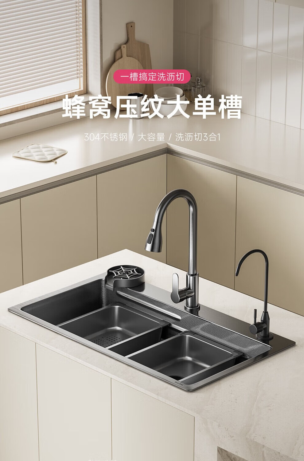 JOMOO sink 5.0 thickened 304 stainless steel kitchen sink thickened nano-antibacterial large single-slot dishwashing sink 60-46 multi-functional luxury package