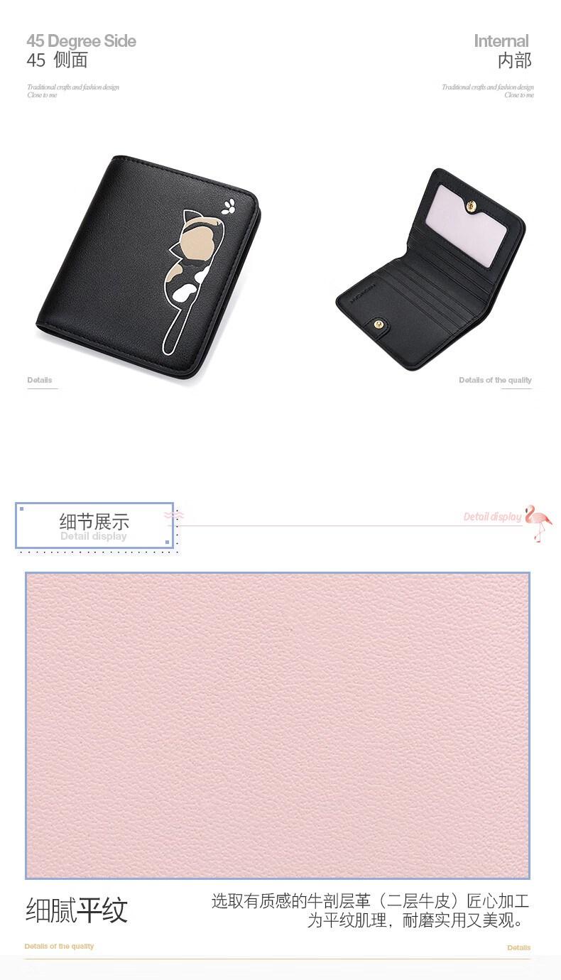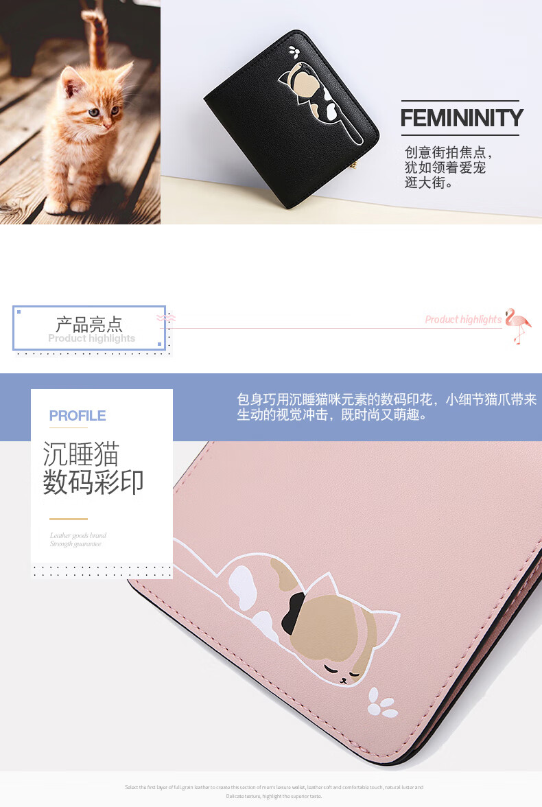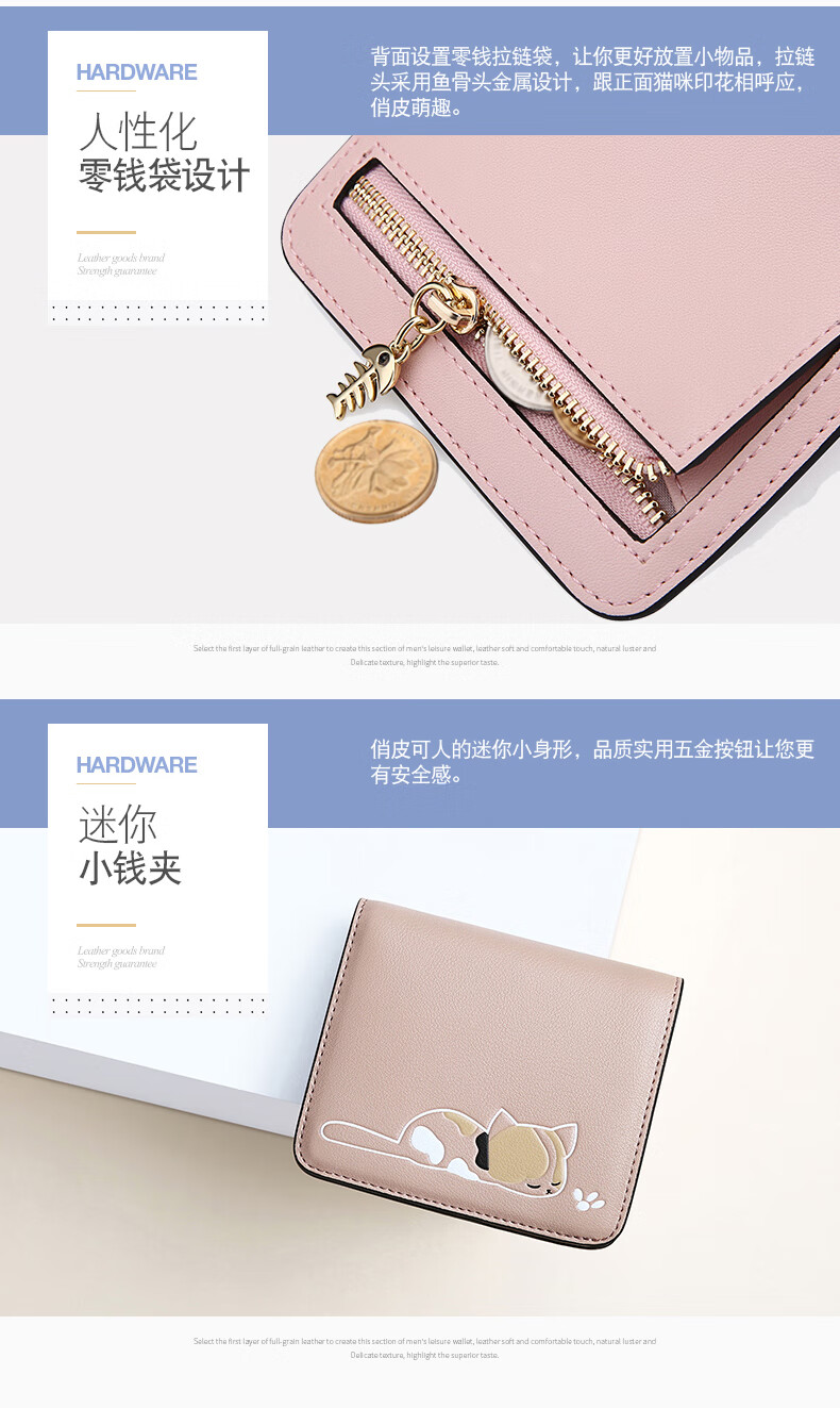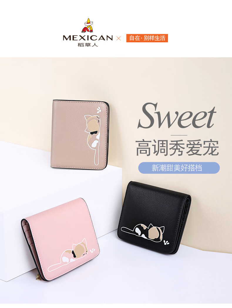 Scarecrow Wallet Female Korean Version Student Small Fresh Cute Coin Purse Niche Simple Wallet Compact Real Card Bag Pink