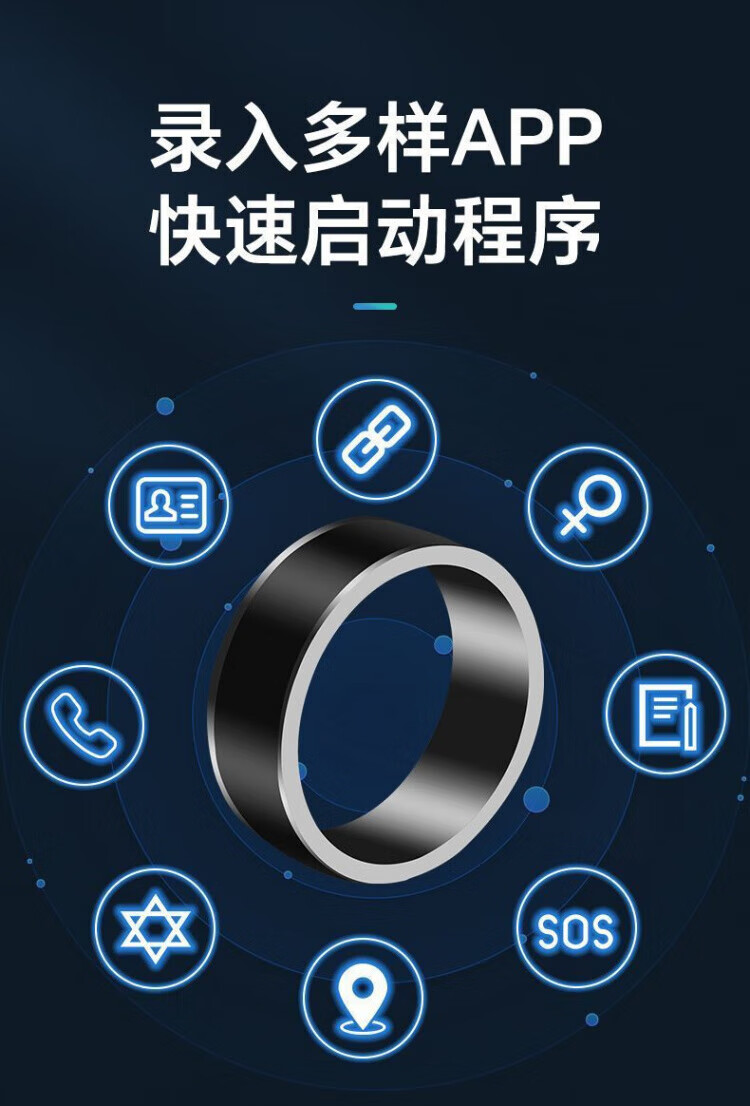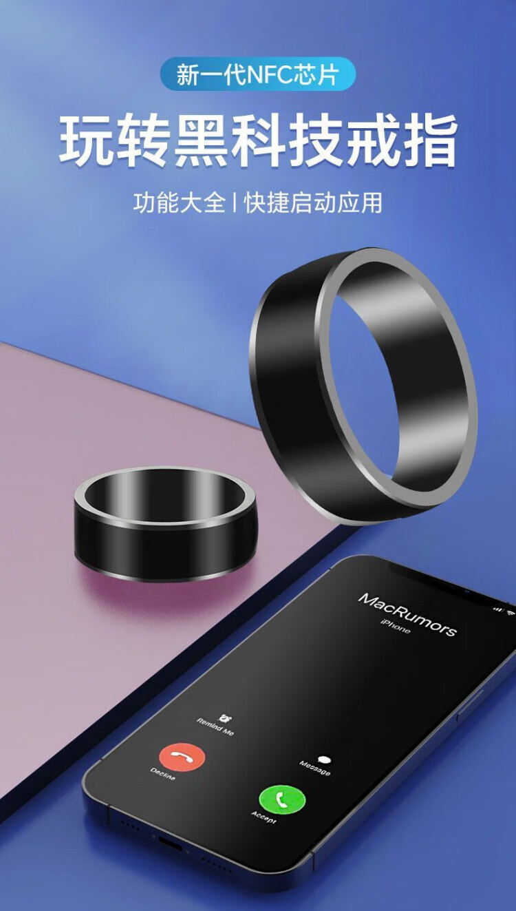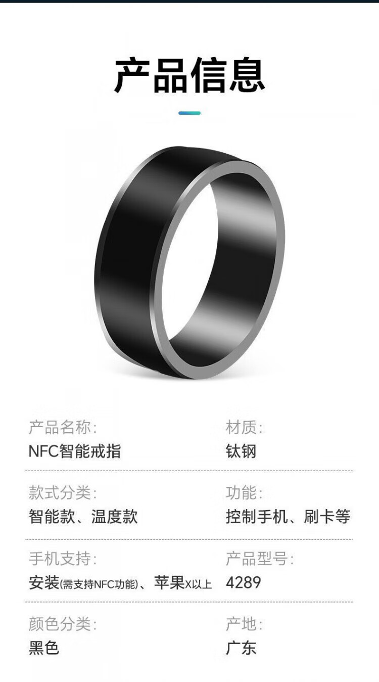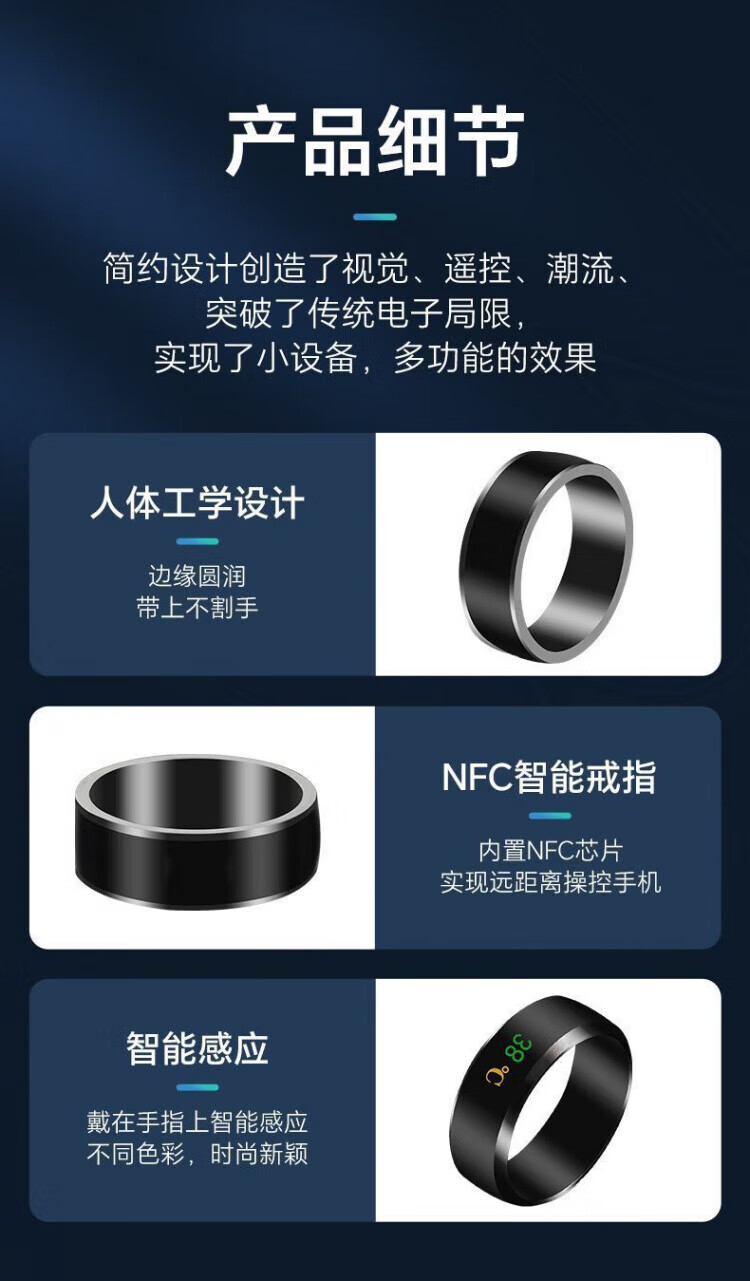 Junkiss NFC multifunctional ring Solar WIFI temperature ring Internet celebrity technology access card ring NFC full function upgrade model - black No. 8 finger circumference 56.9mm