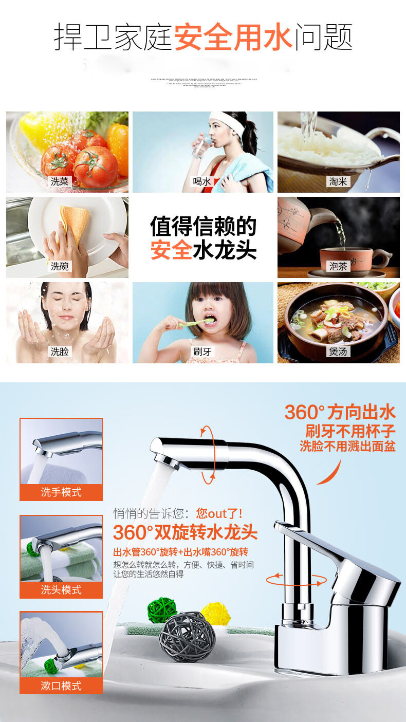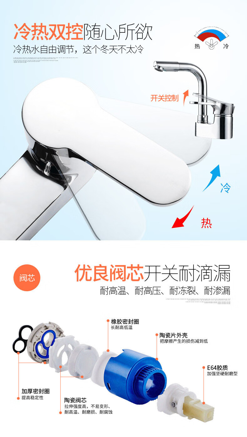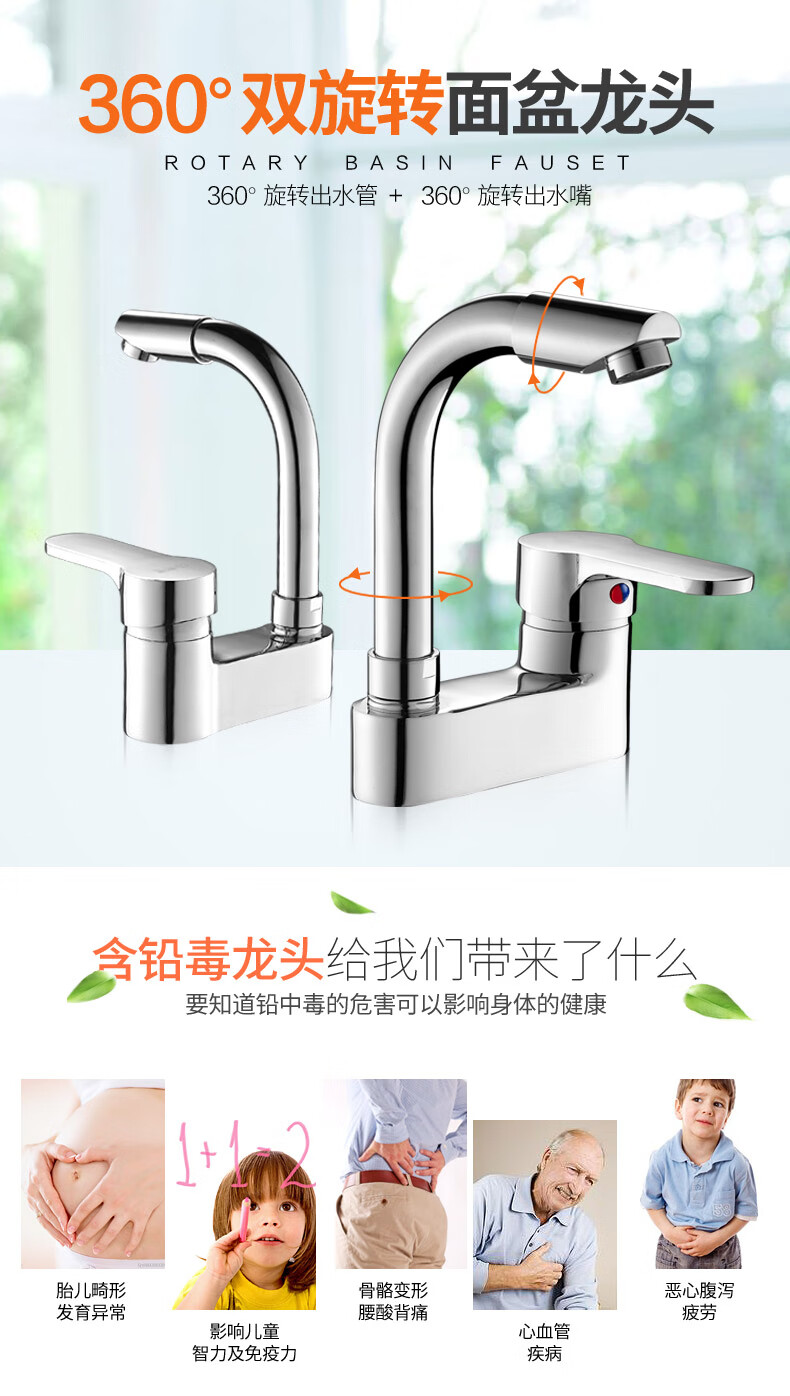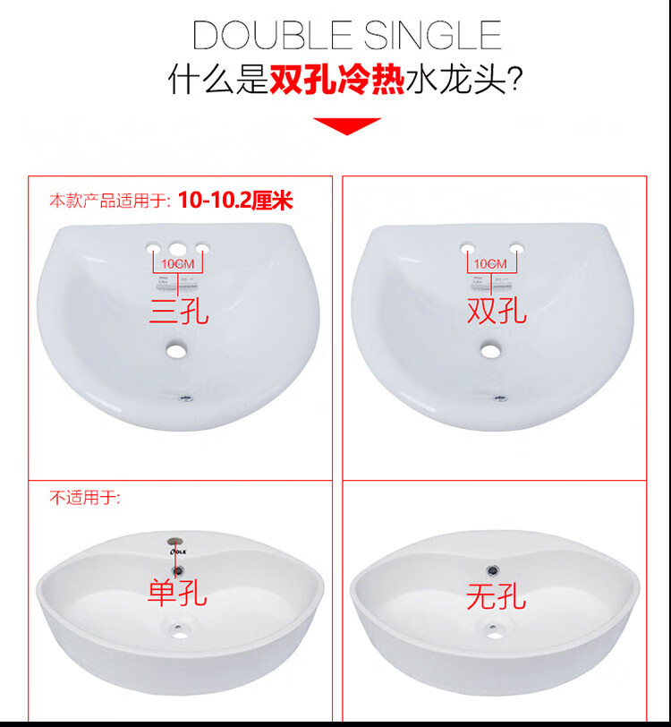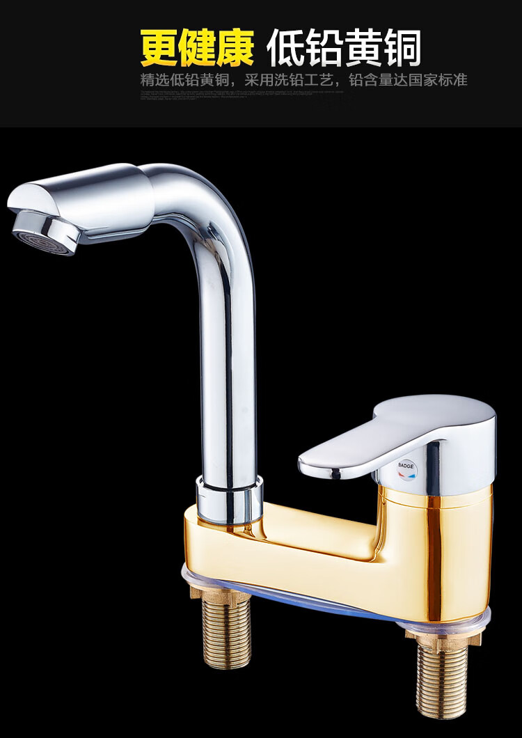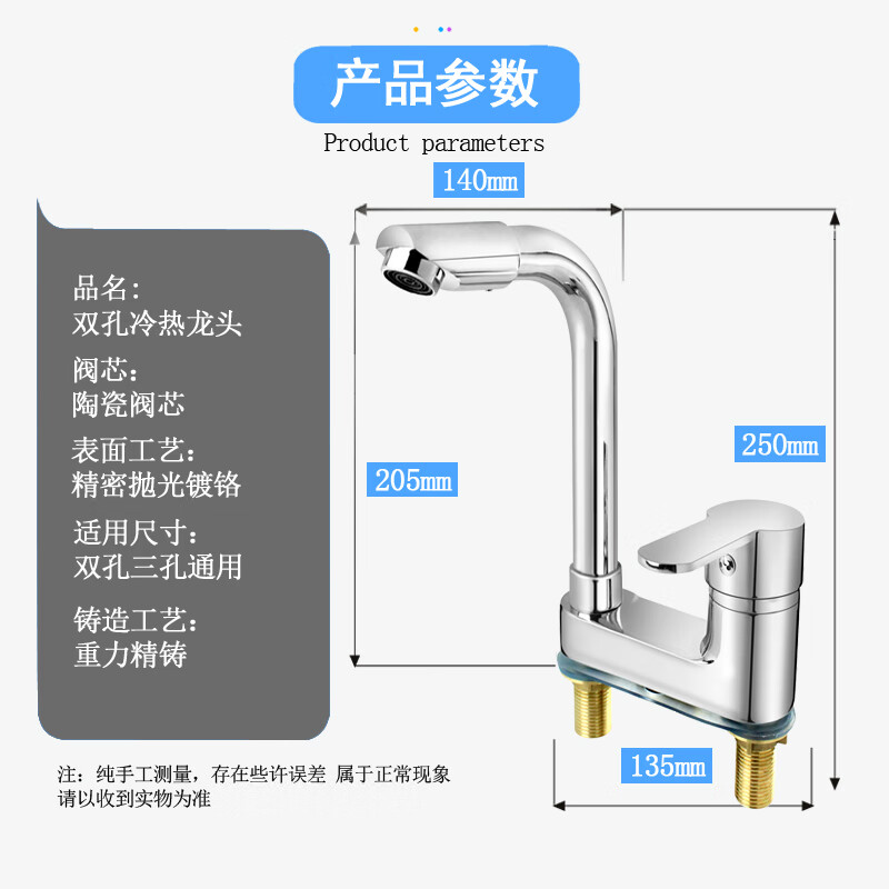 Joxod all-copper double-hole basin hot and cold faucet rotatable bathroom toilet three-hole washbasin wash basin basin all-copper double-hole faucet + 60cm double-head hose