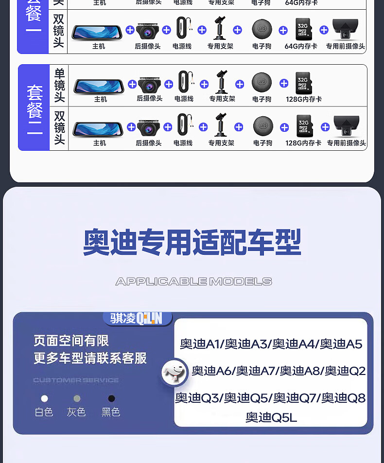 Qiling Audi A3A4LA5A6LA7LA8Q2LQ3Q4Q5LQ7 dedicated split streaming media driving recorder official standard dual lens