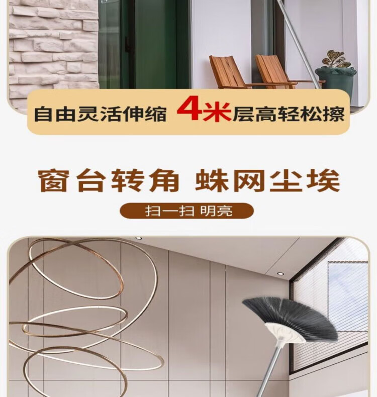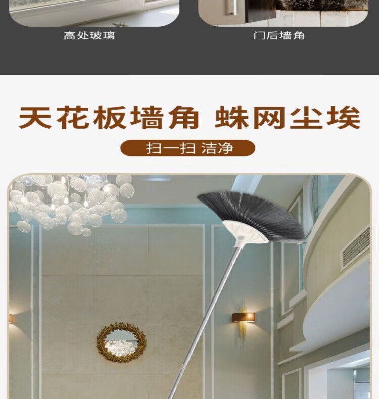 Spider web cleaning telescopic cleaning artifact pole ceiling roof broom cleaning dust household soft hair pole can be wiped 6 meters high connecting rod 7 sections 4.46 meters