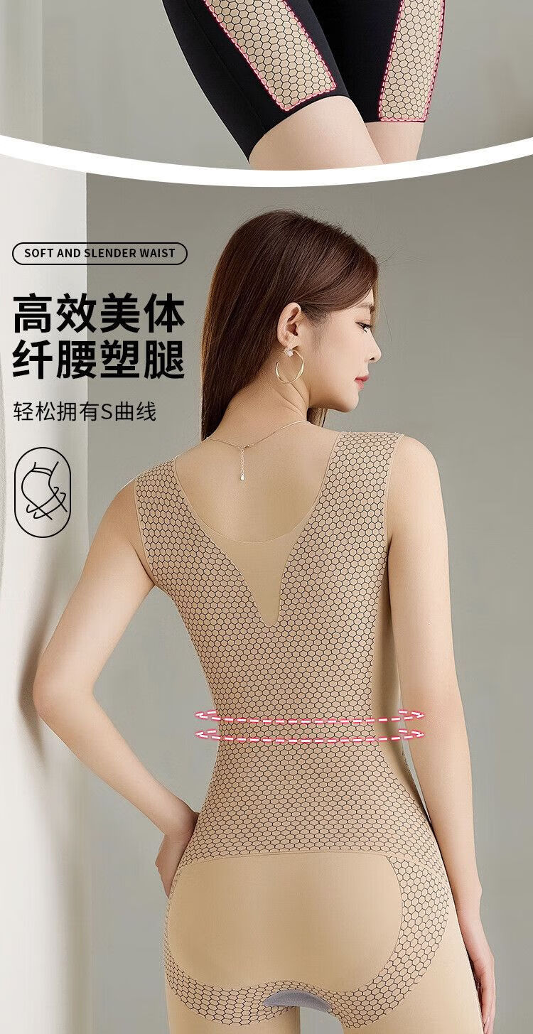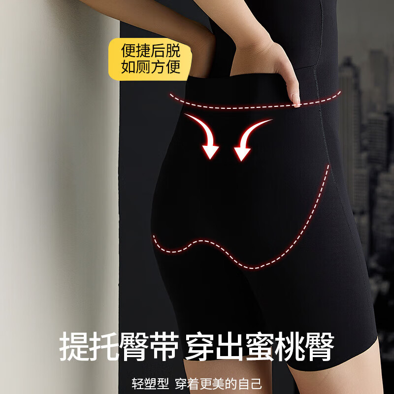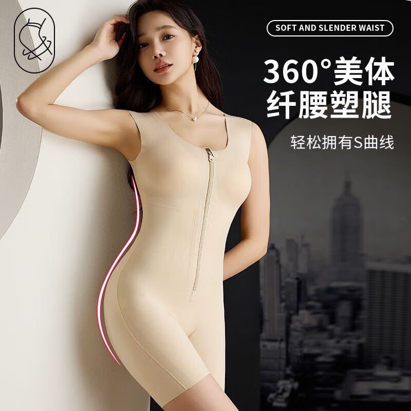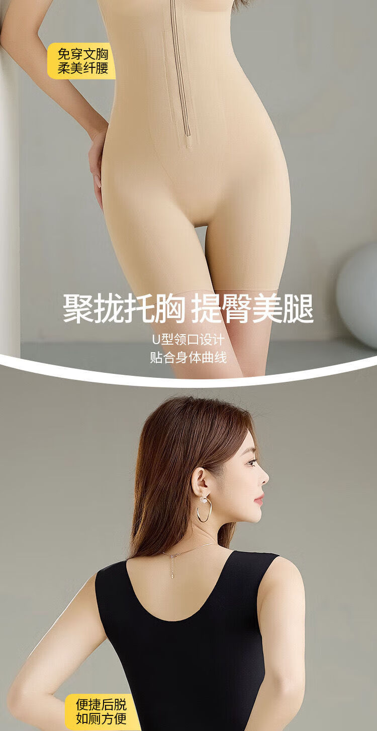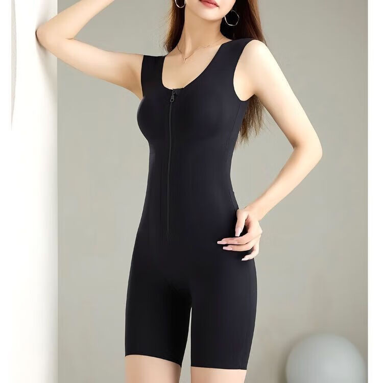 Modal back-off mermaid zipper-breasted double tummy control butt lift one-piece shapewear seamless black M 80-105 catties