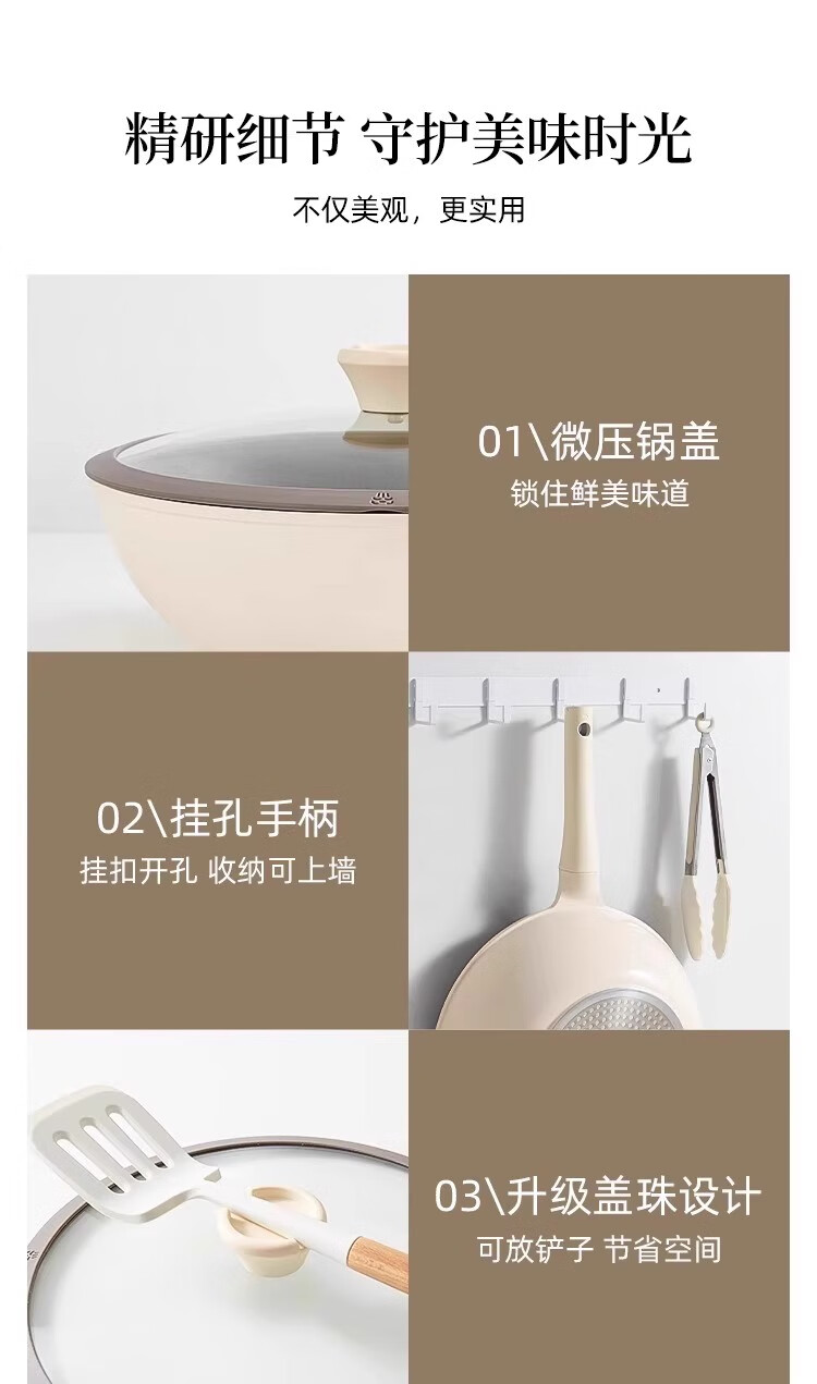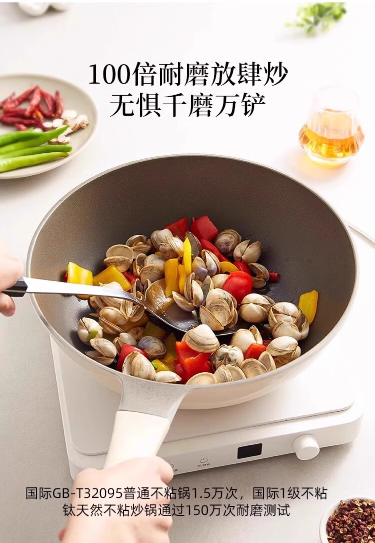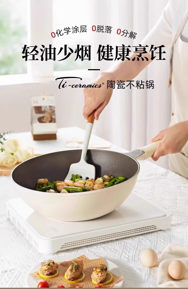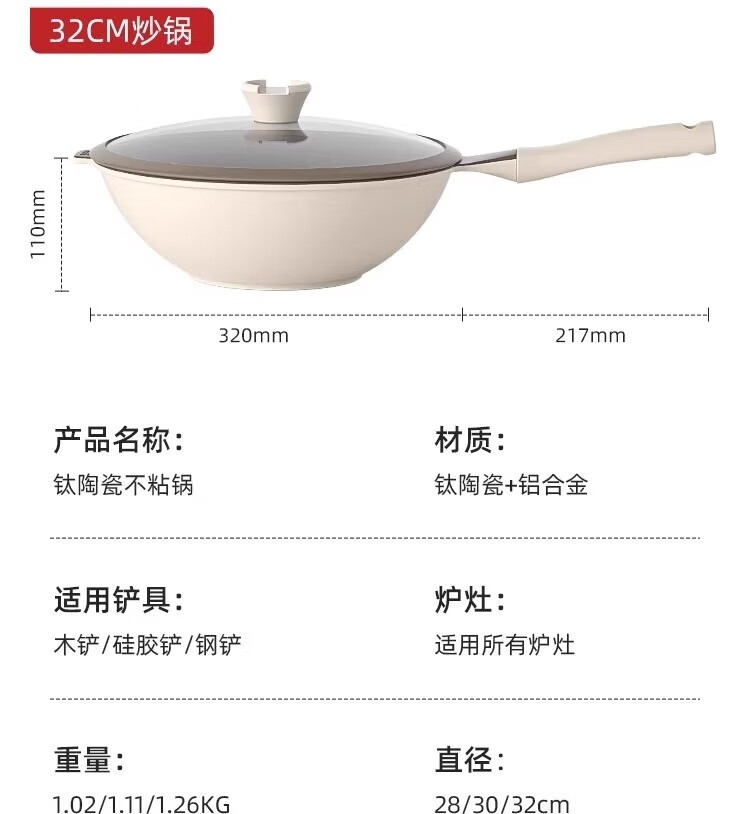 Xingjin titanium ceramic non-stick wok household uncoated wok induction cooker light wok suitable for 3-5 people 30cm wok 30cm