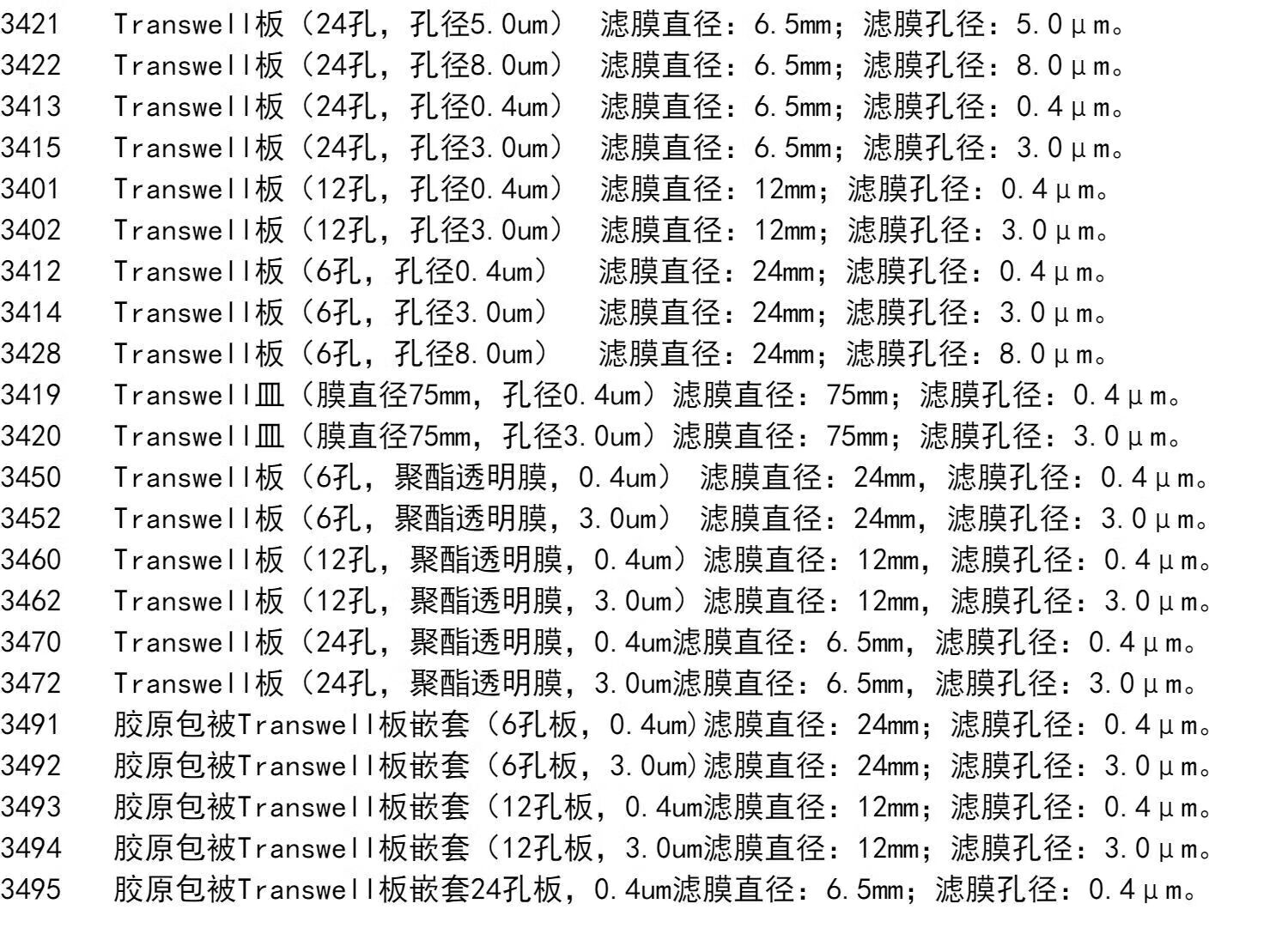 Corning Transwell cell chamber 342234023412341334143415 3401, 12-well single block