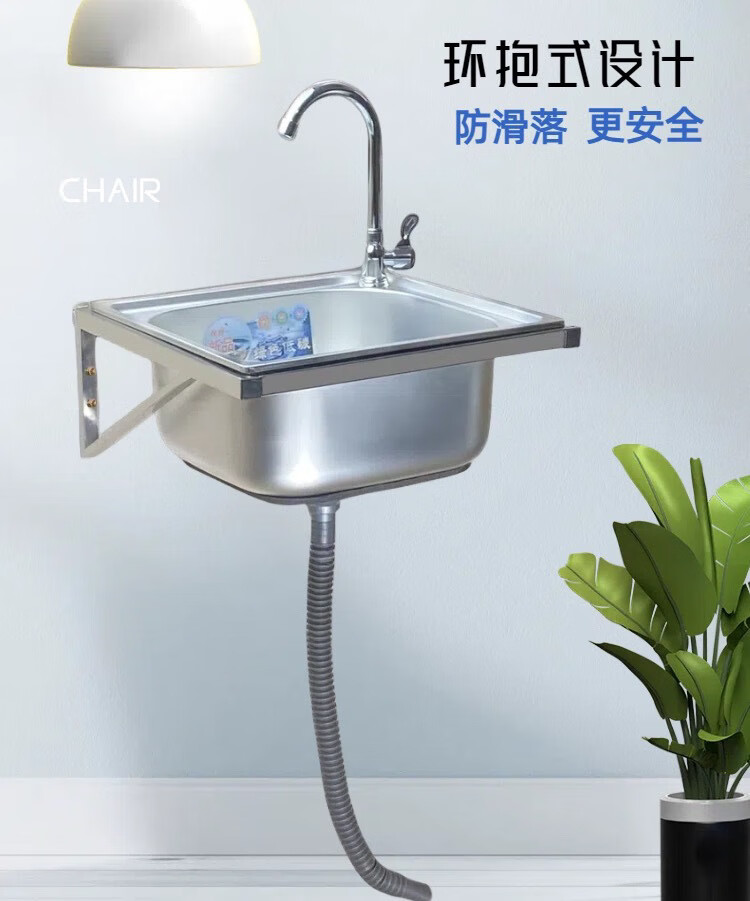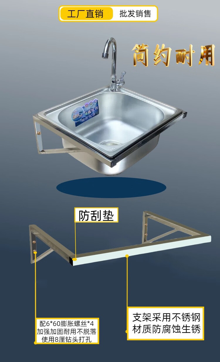 Fuyan stainless steel wall-mounted sink small single-tank kitchen simple washbasin wash basin wash basin single basin with bracket upgraded 38x33 thin wall-mounted set one (without dragon)