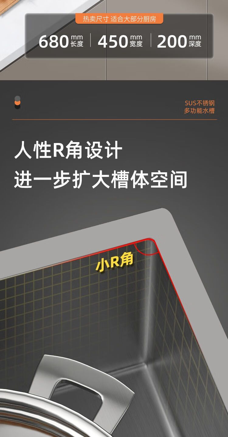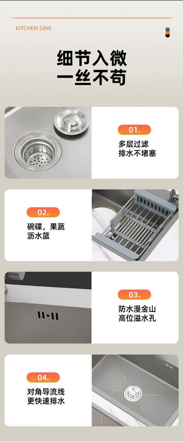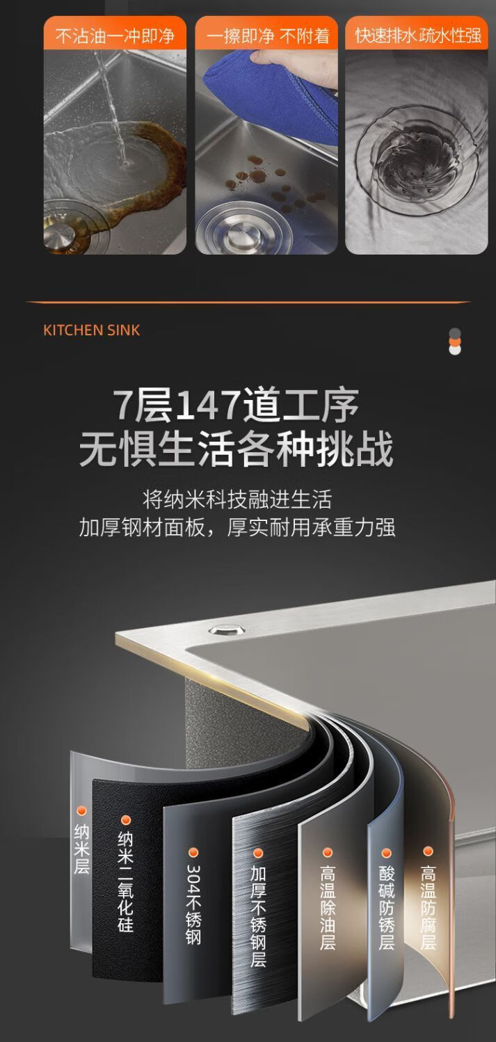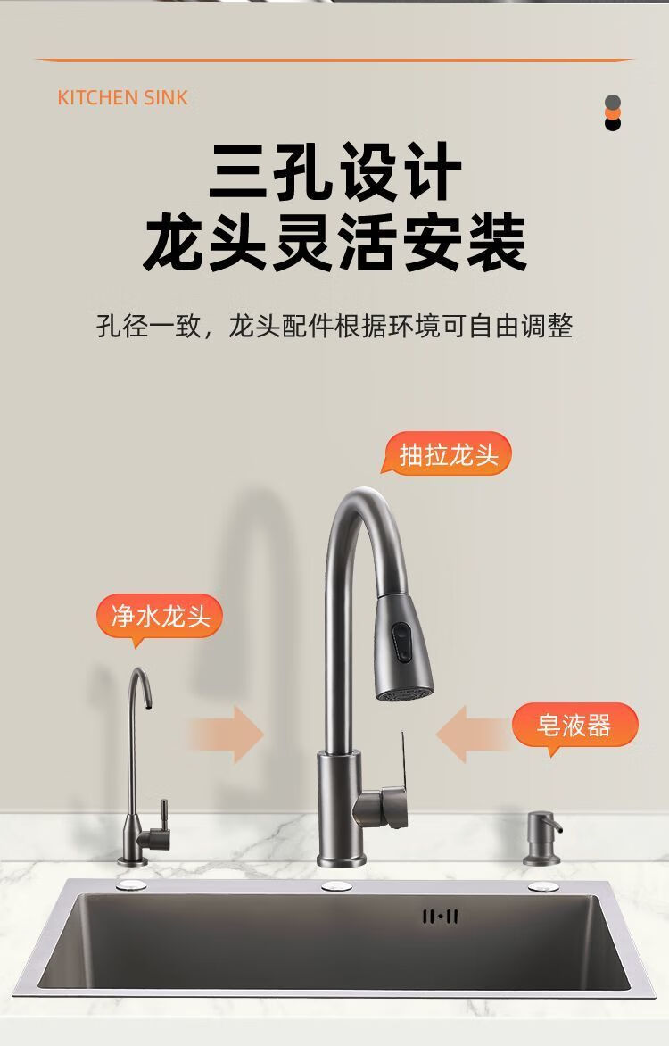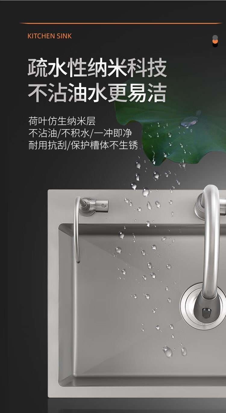 Fuyan 304 stainless steel thickened gun gray sink large single tank home kitchen countertop dishwashing sink dish basin stainless steel hot and cold pull-out faucet luxury package gun gray (length 37.5 width 25) thickened stainless steel