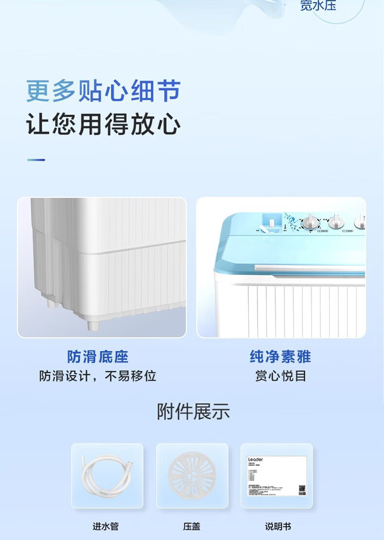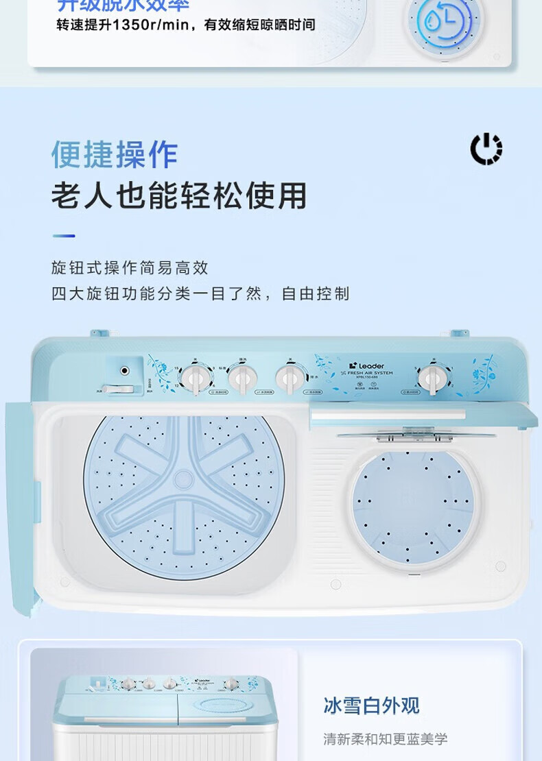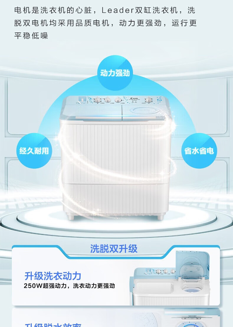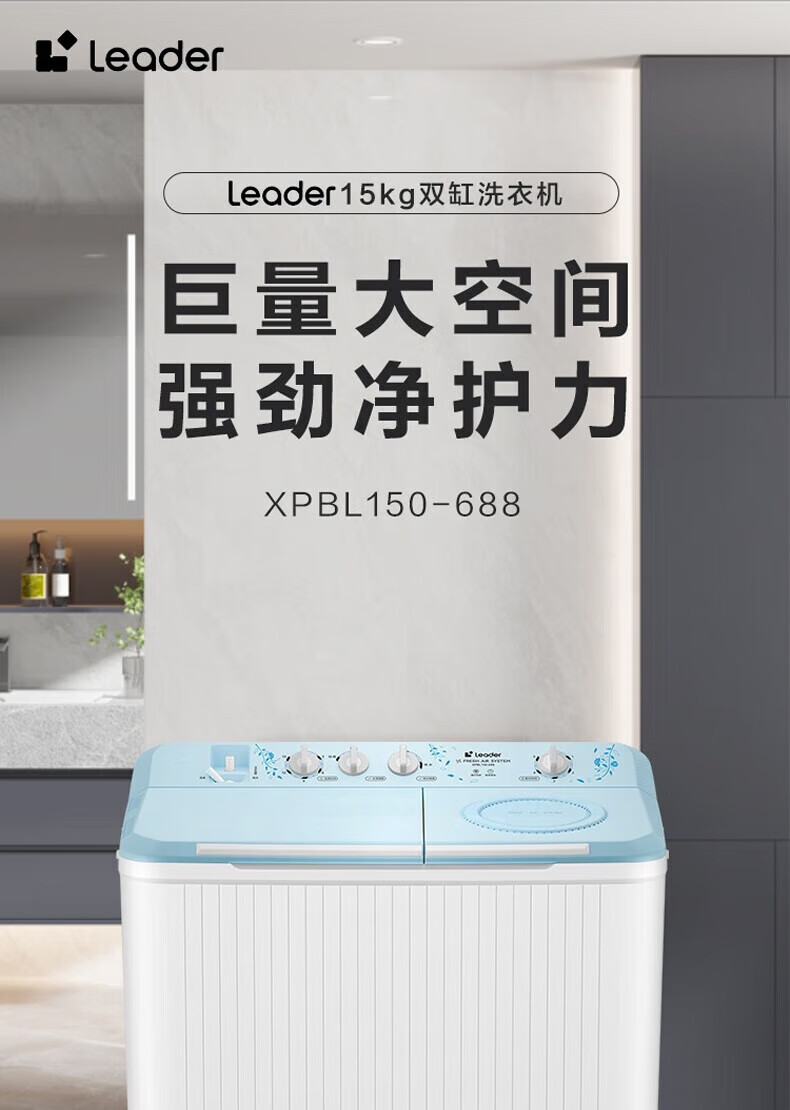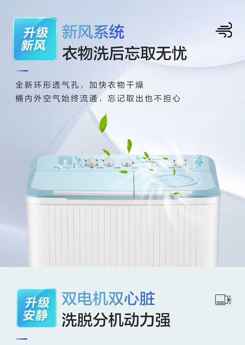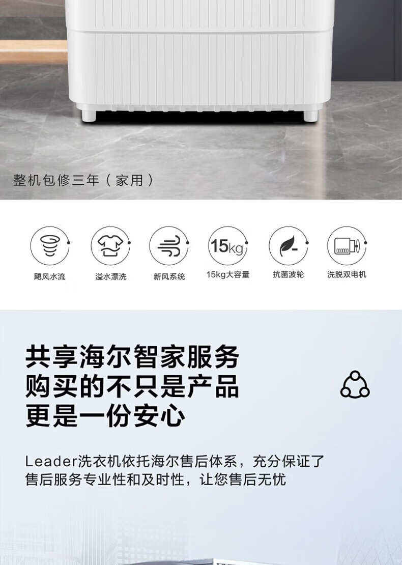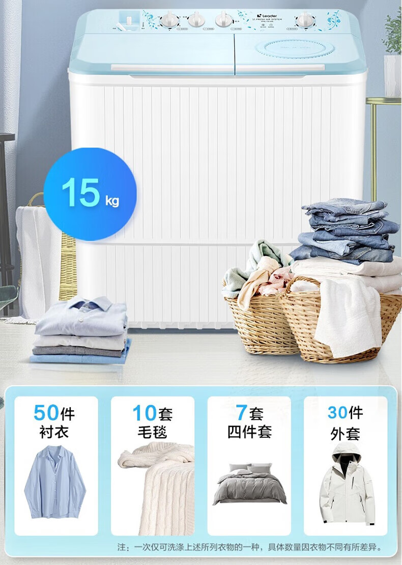 Haier semi-automatic washing machine, large capacity, household double-cylinder washing machine, double-tubs, double-motor, strong power, elution separation, rat-proof base, leakage protection, simple operation, new product, double-cylinder, 15kg, spray rinse + antibacterial pulsator