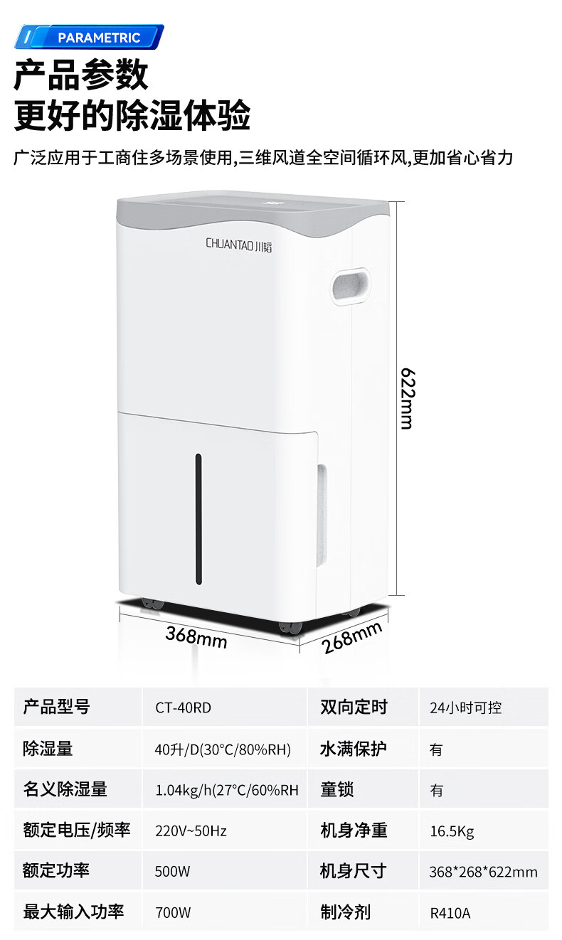 Chuantao dehumidifier high-power dehumidifier villa basement warehouse moisture absorber 40L/sky drainage dehumidifier dryer