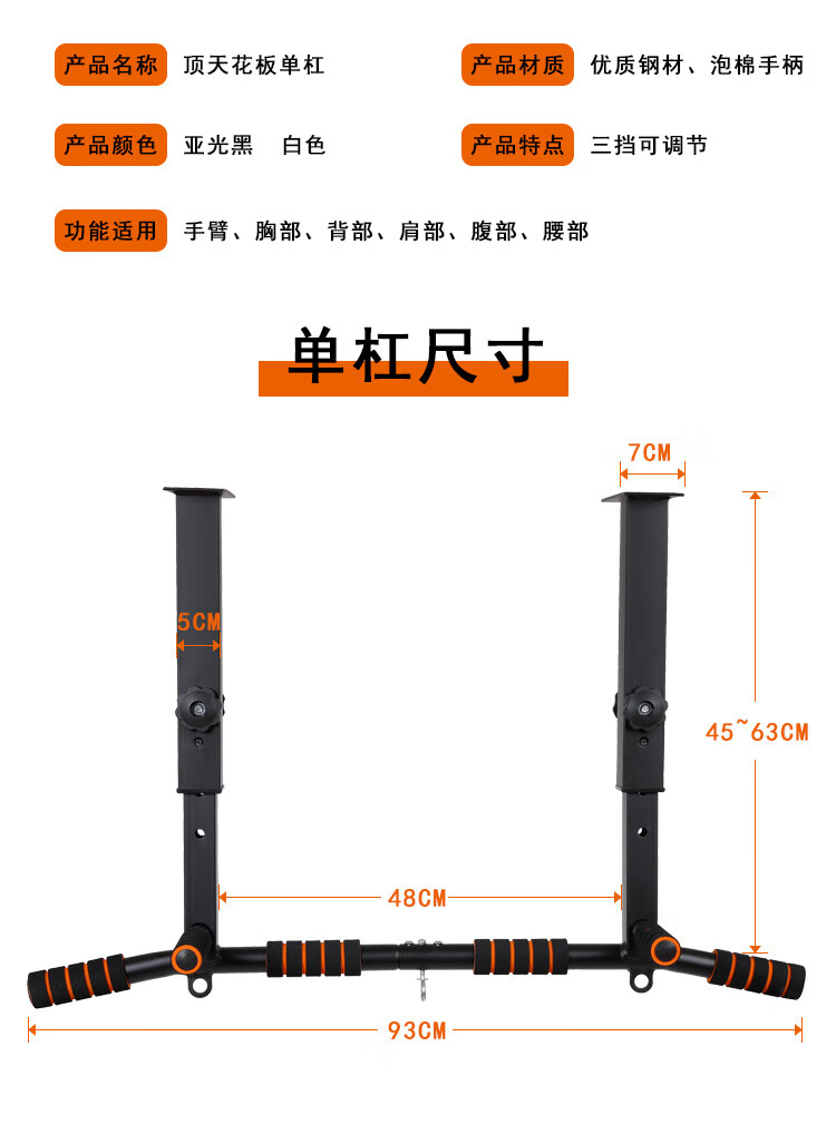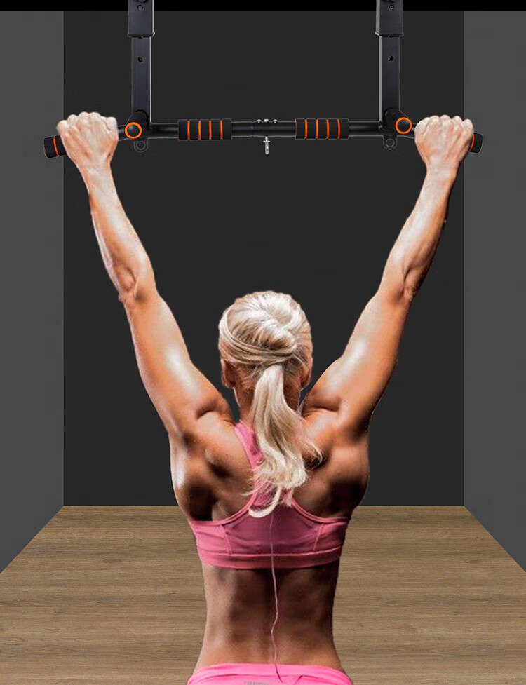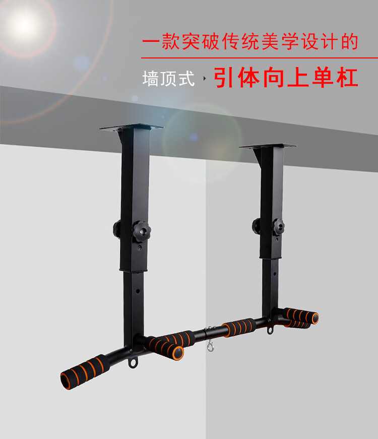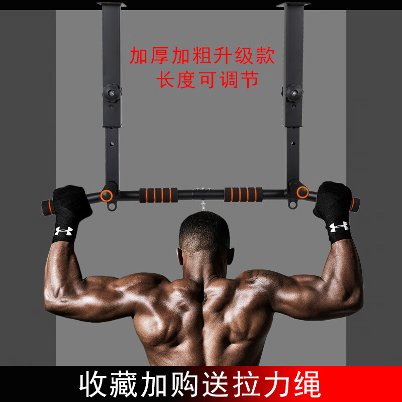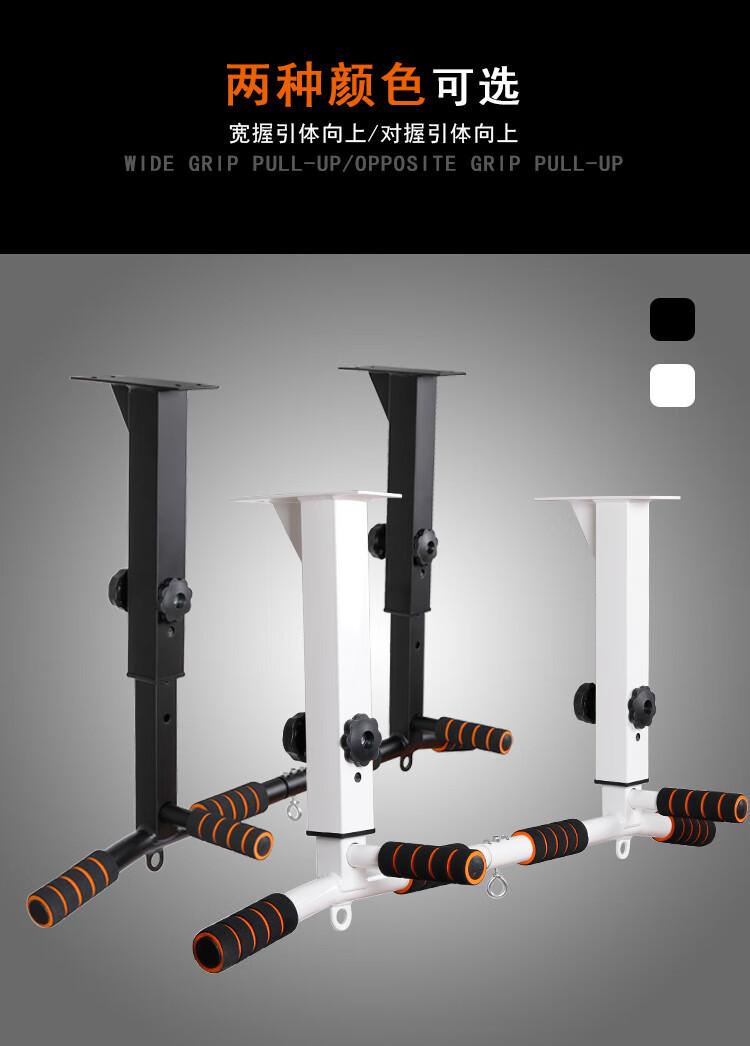 Meikejie sweat-absorbent and non-slip pull-up device for indoor ceiling-mounted beams with perforated horizontal bars for fitness home use. Top-mounted model adjustable black (comes with a full set of screws)