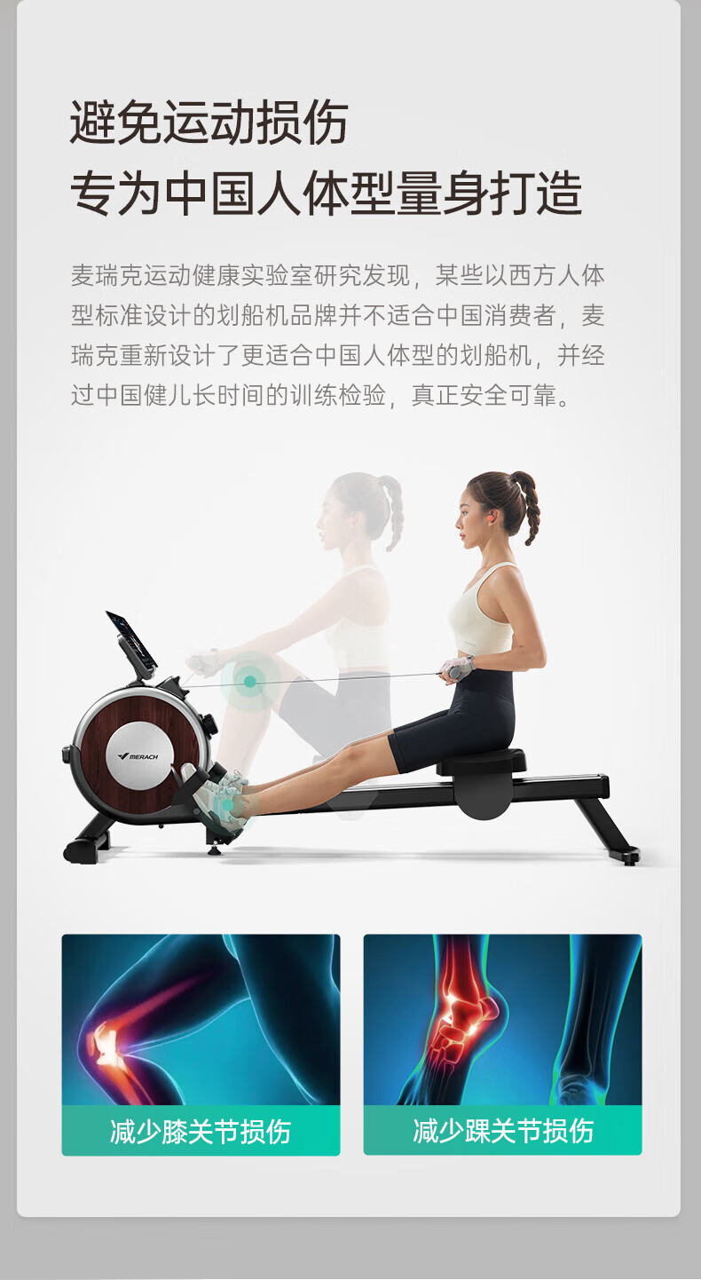 Merrick New Product Super Fat Burning Smart Rowing Machine Indoor Magnetic Resistance Silent Rowing Machine Sports Aerobic Fitness Q1S Pearl White 16-stop Magnetic Resistance Alloy Double Track