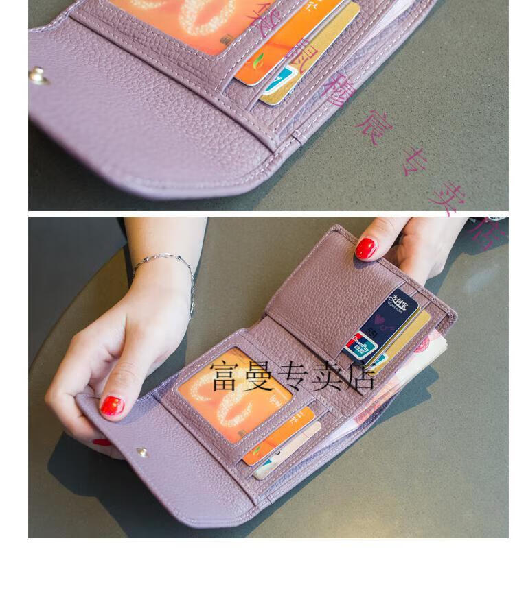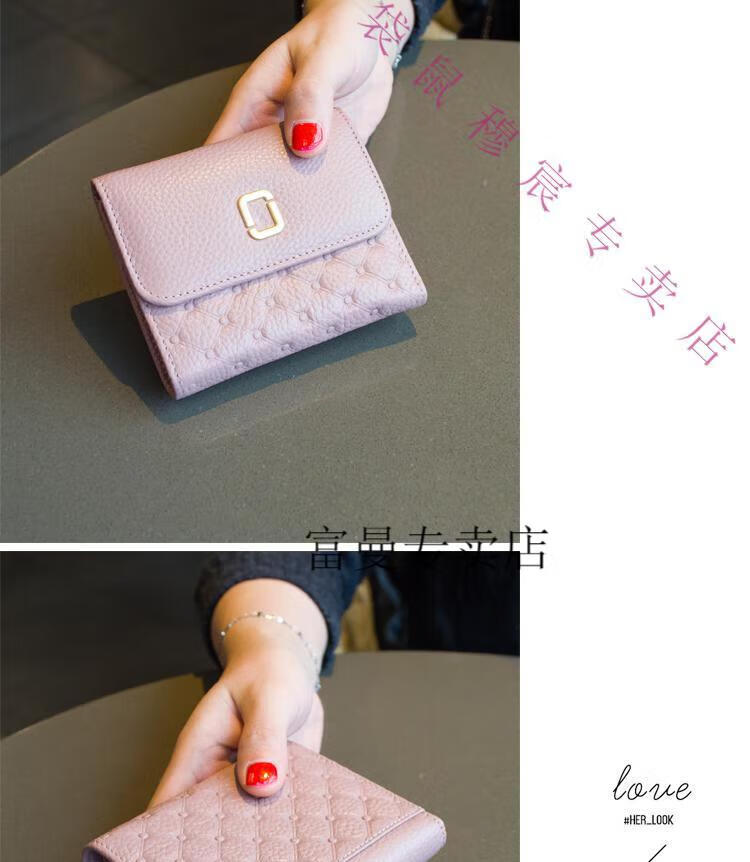 Kangaroo (KANGAROO) Korean style fashionable large-capacity first-layer soft cowhide wallet compact women's short genuine leather thin simple buckle folding Taro purple color is darker