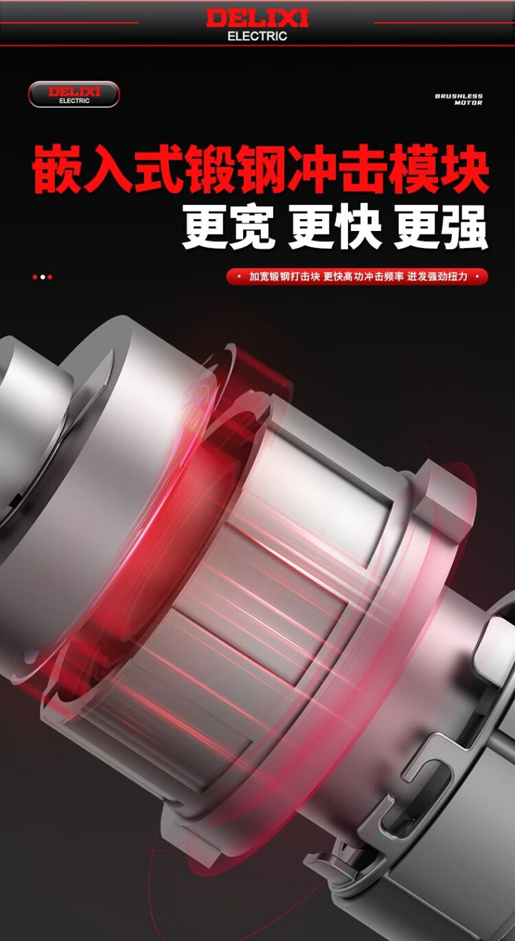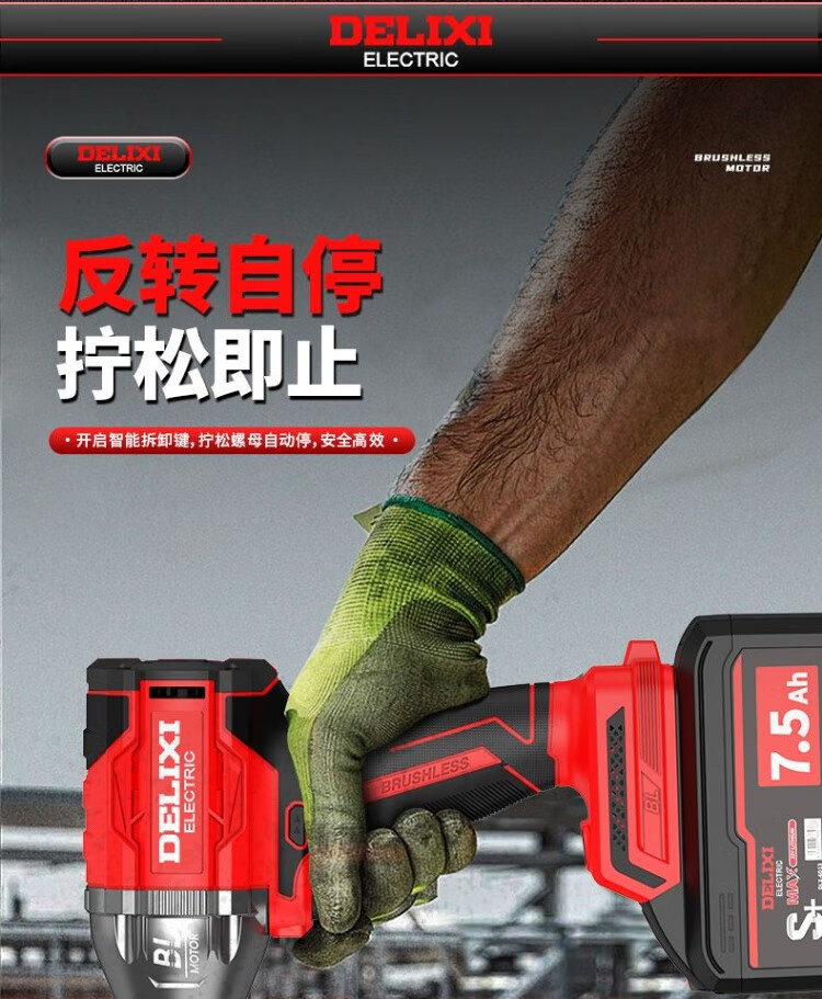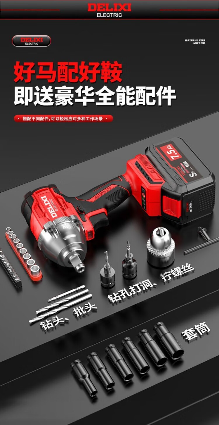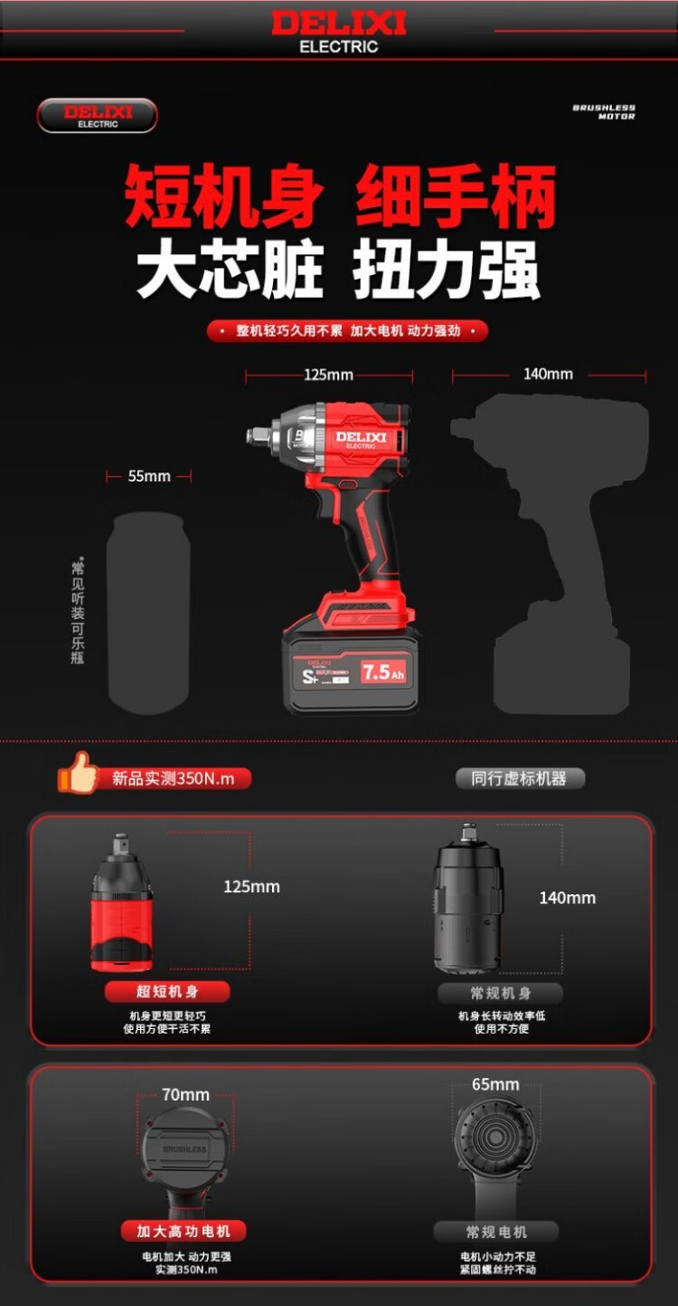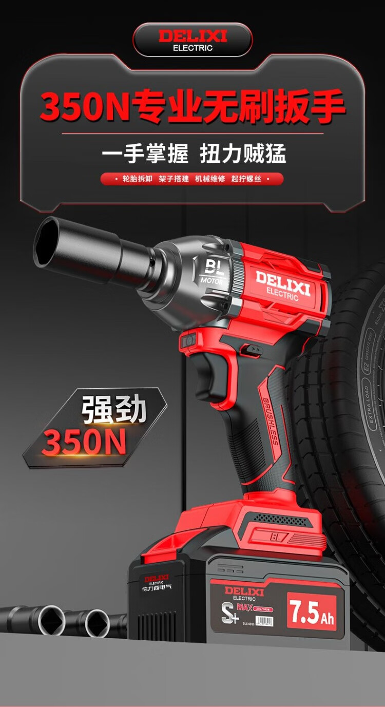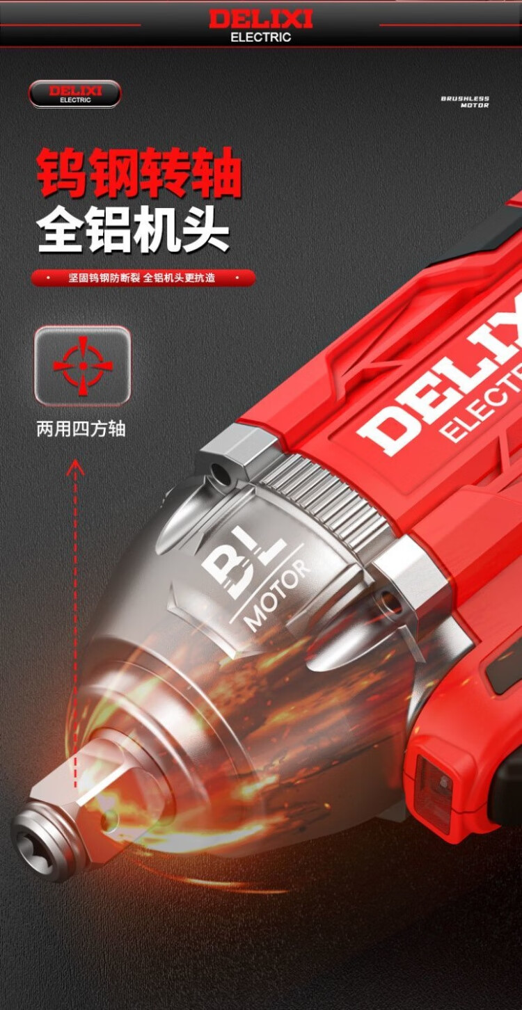 Delixi Delixi brushless electric wrench lithium battery rechargeable impact wrench high torque auto repair air gun frame work socket brushless wrench 350N bare metal one set