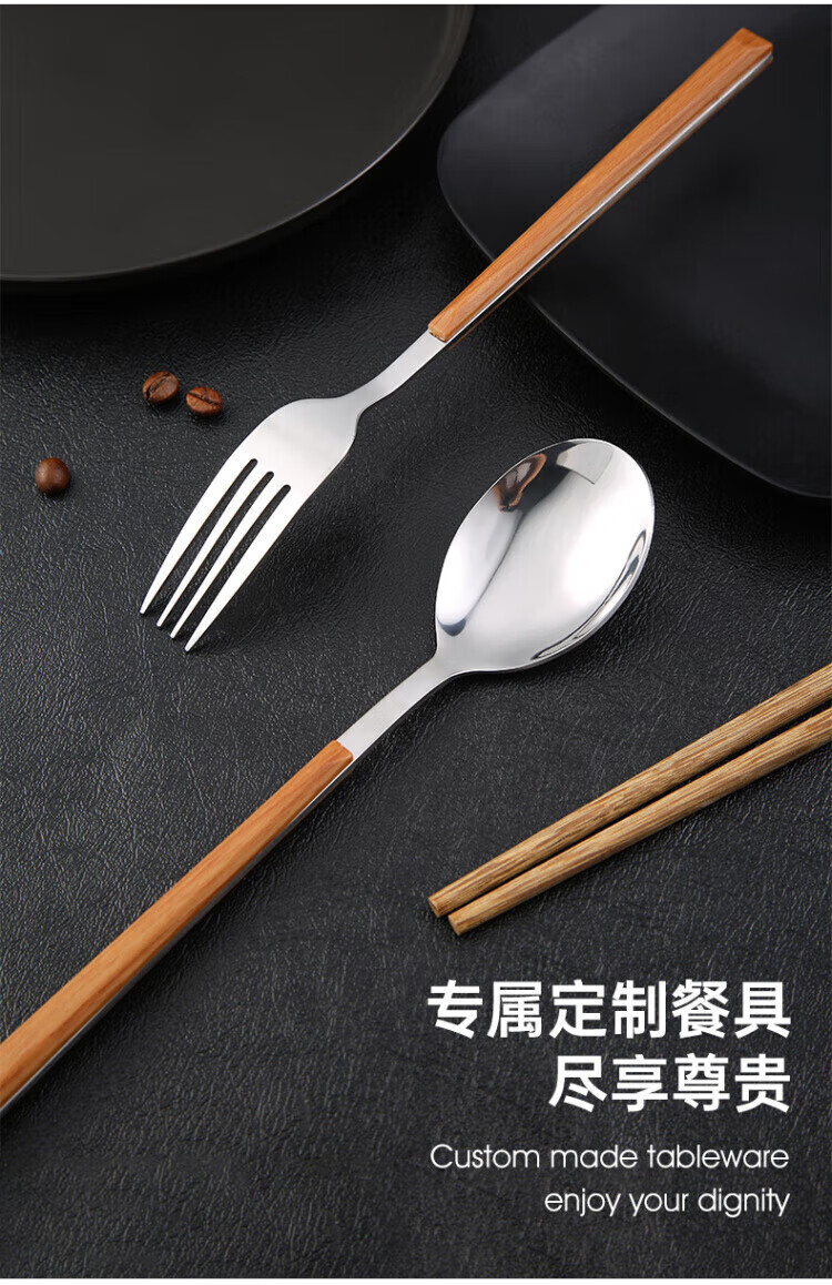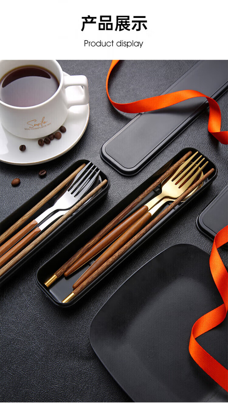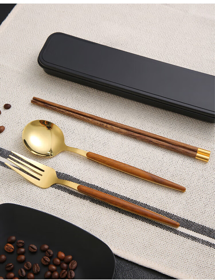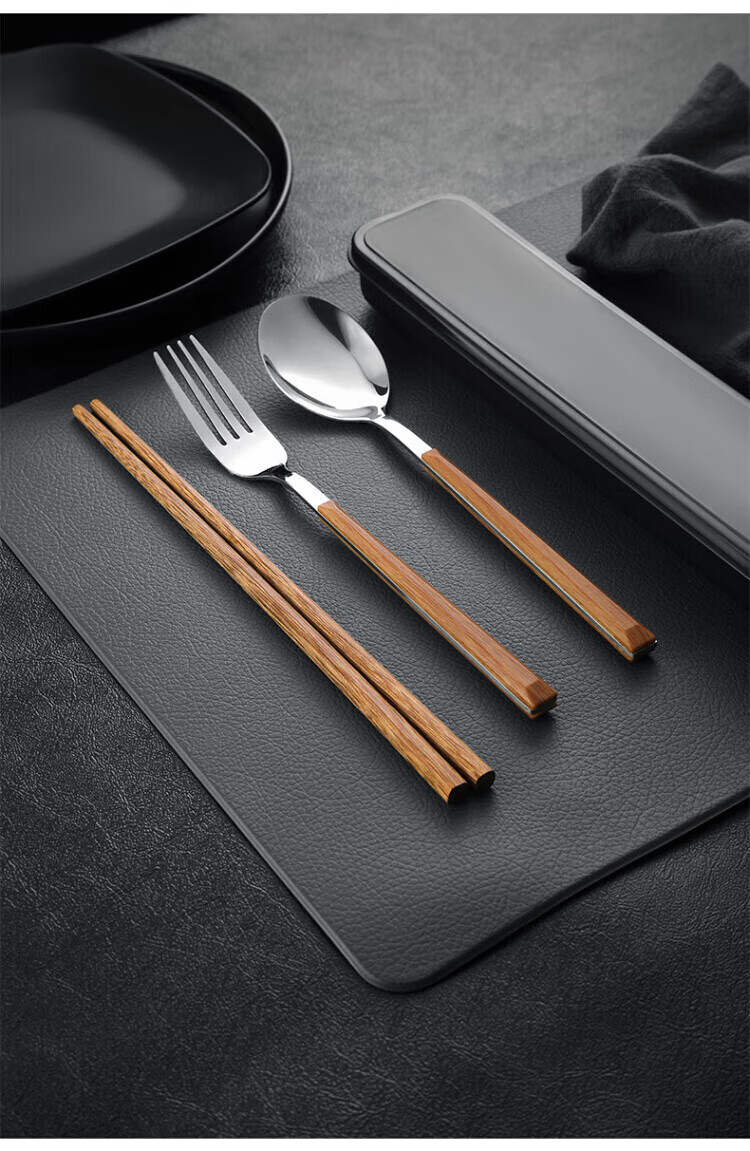 Ruolin chopsticks and spoon set, one person, one chopstick, portable tableware, student storage box, fork, single wooden chopsticks three-piece set, silver 4-piece set (chopsticks + spoon + fork + cutlery box) + portable bag