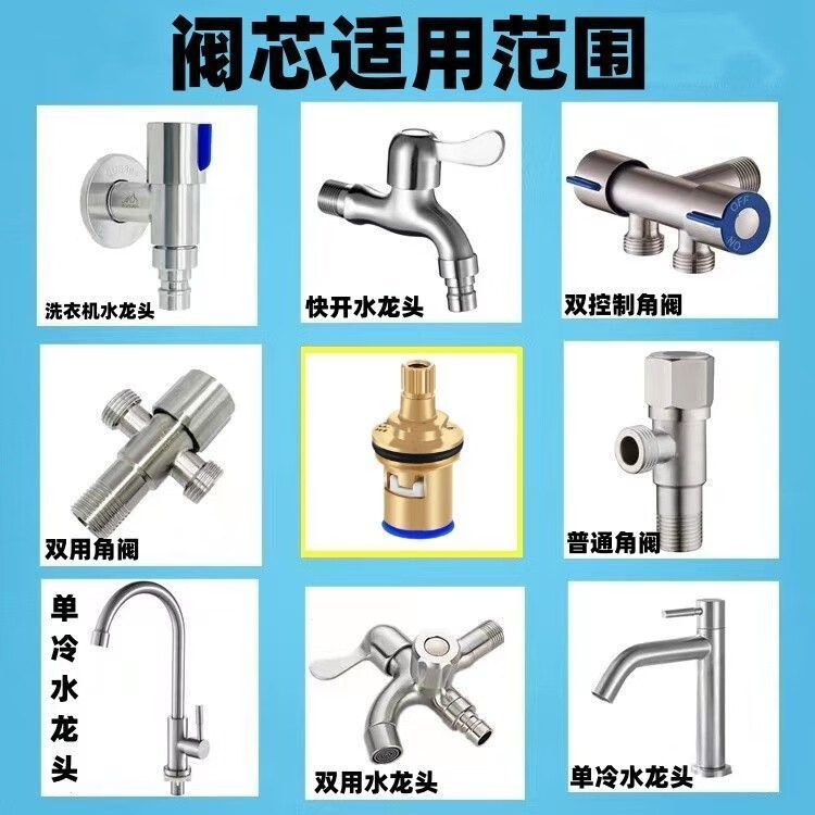 Universal faucet valve core, all-copper 4-minute quick-opening faucet core, triangular valve, single hot and cold water ceramic accessories, durable fine copper valve core - 5 screws included