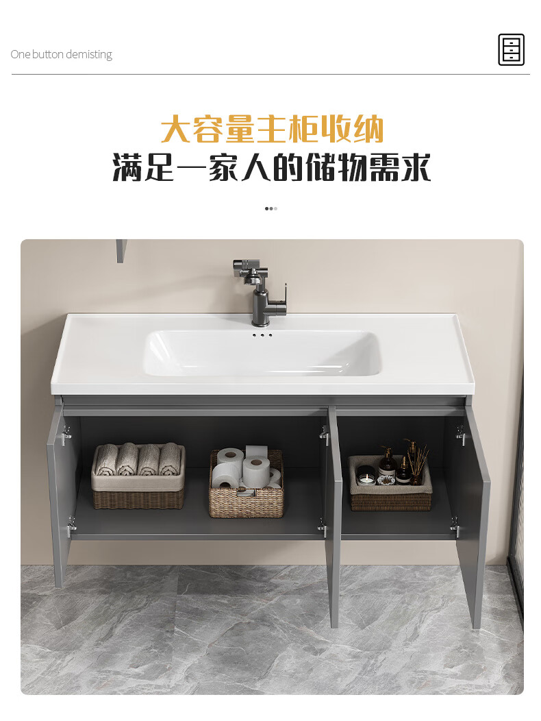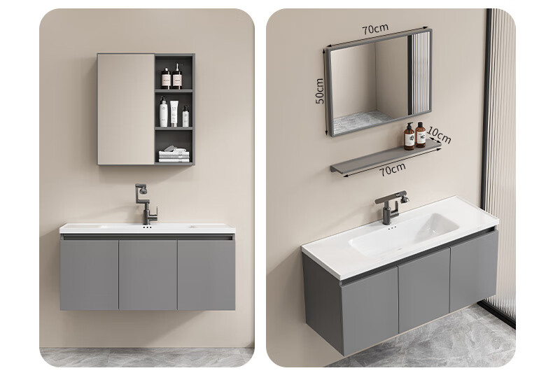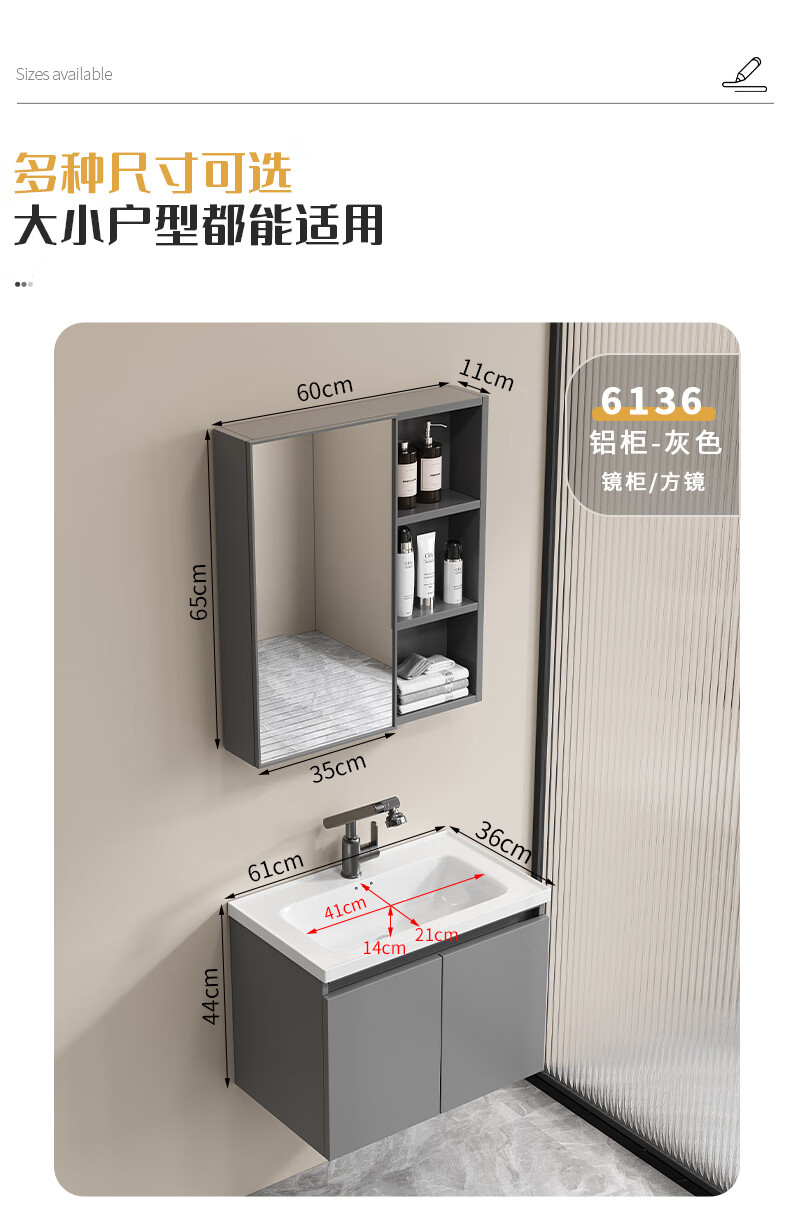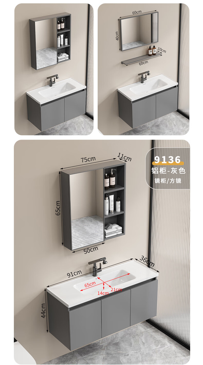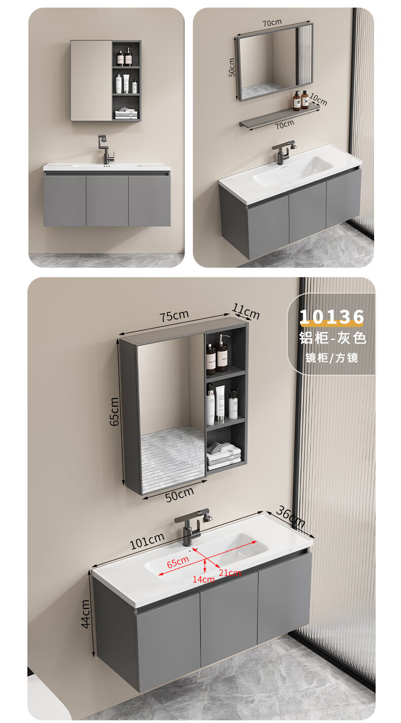 Shenghu 35cm wide and narrow long honeycomb aluminum bathroom cabinet combination washbasin small apartment bathroom washbasin integrated basin pure gray 6136+60 gray mirror cabinet + faucet gray door panel
