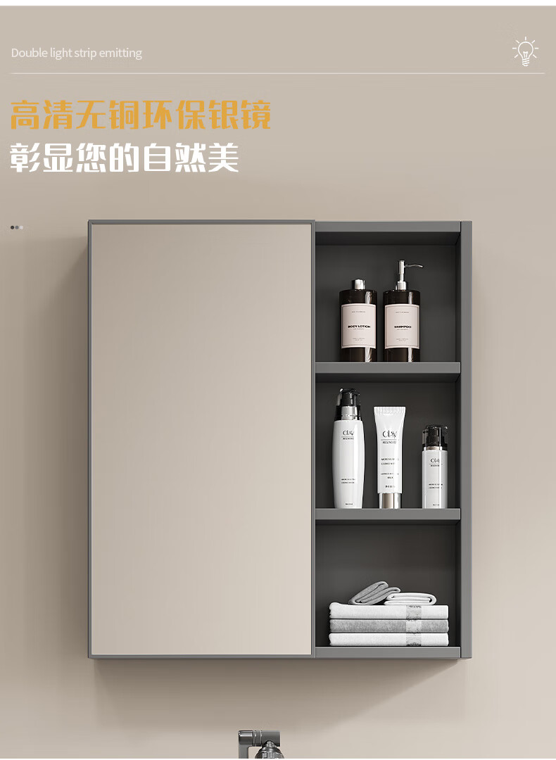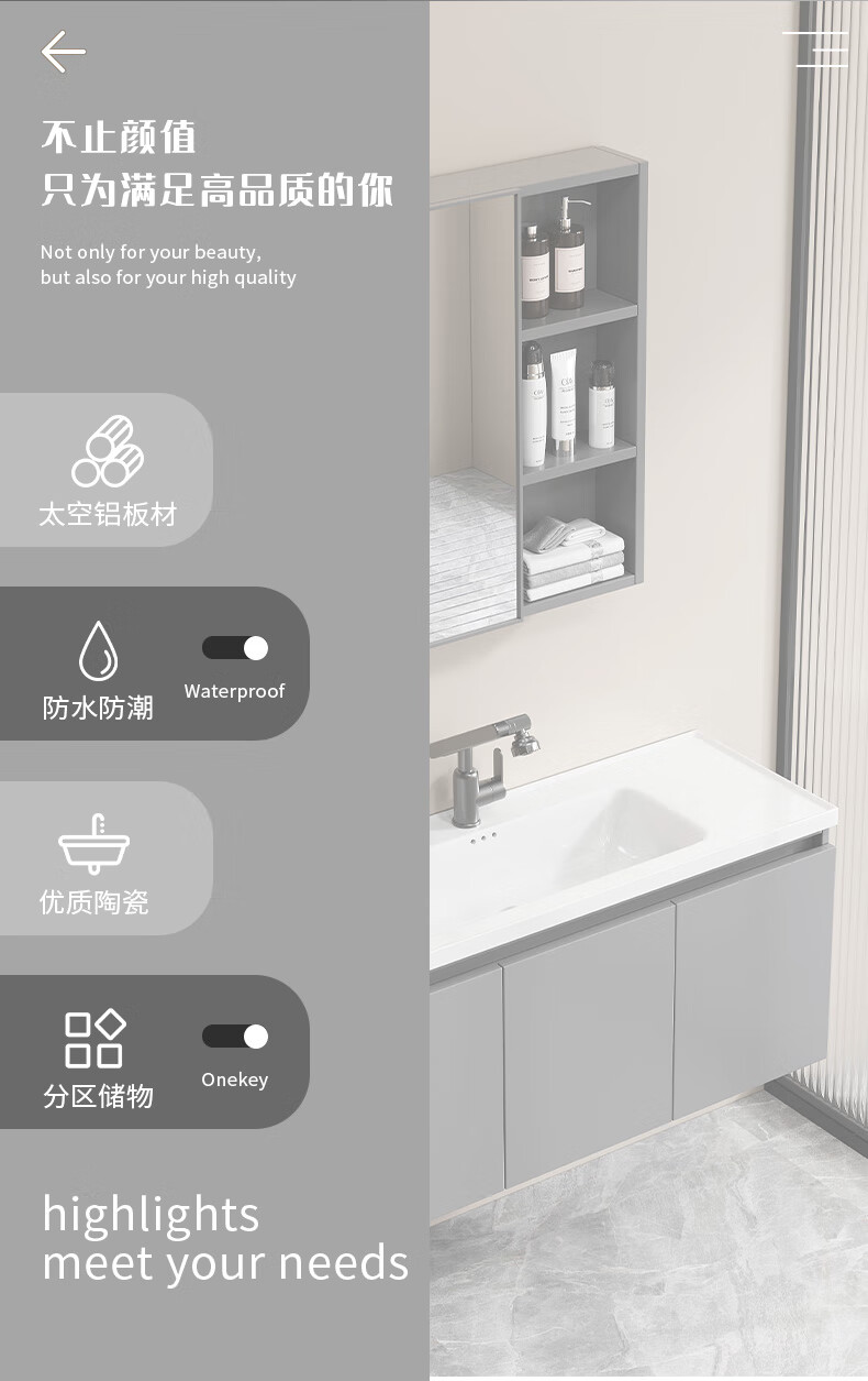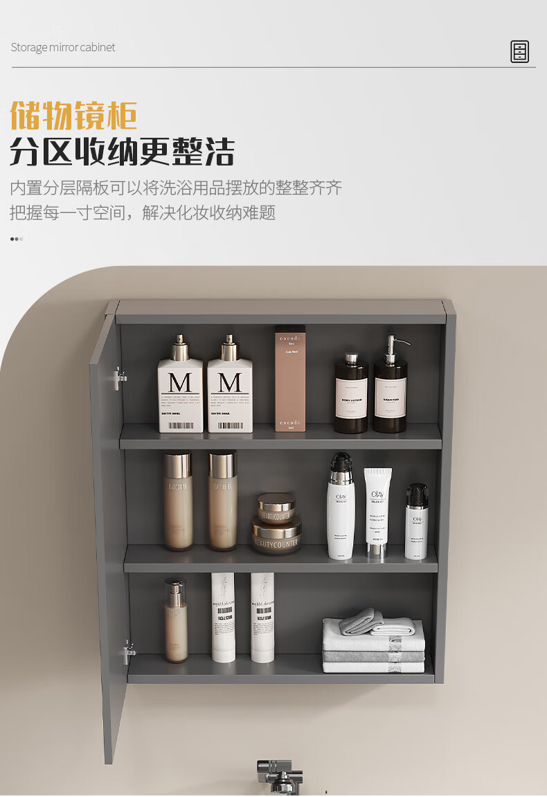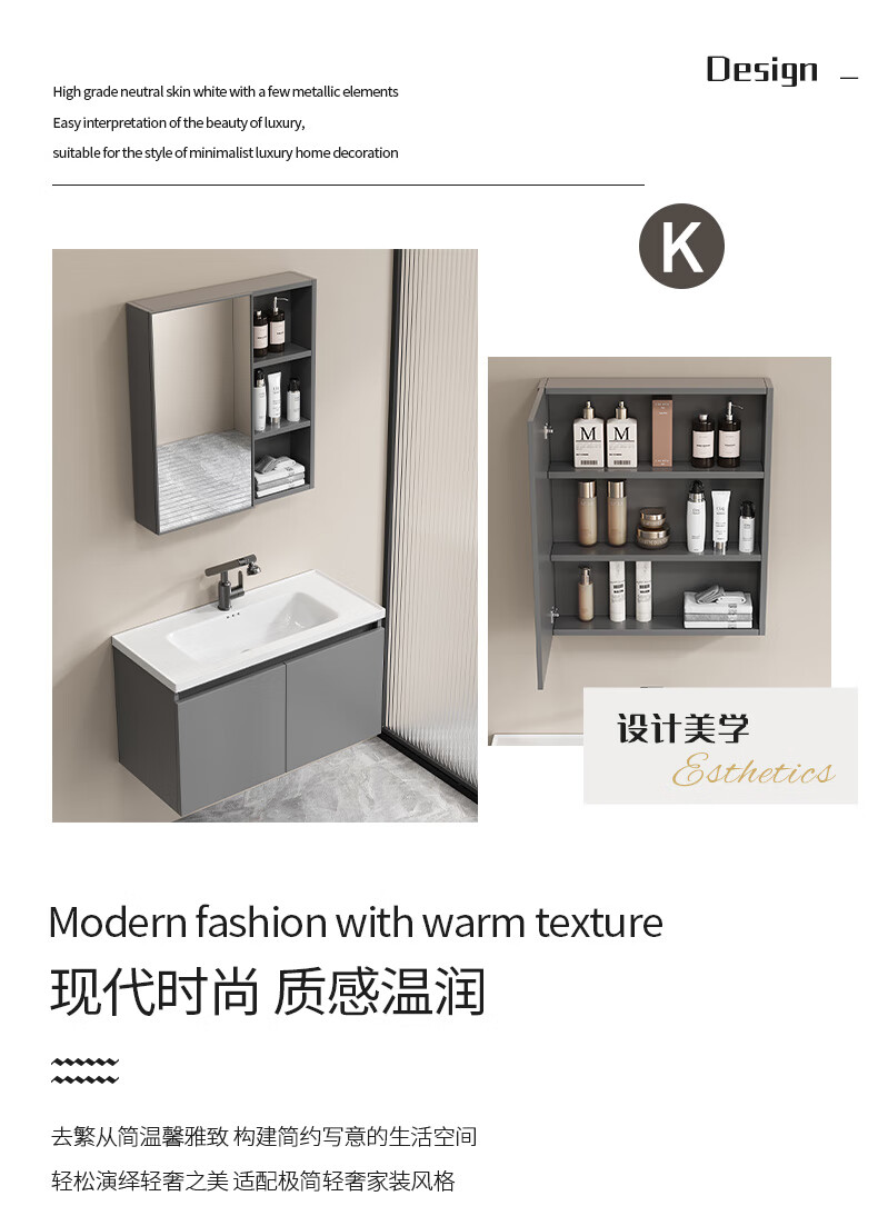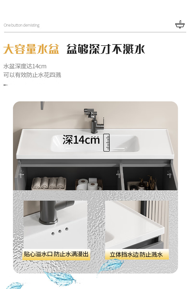 Shenghu 35cm wide and narrow long honeycomb aluminum bathroom cabinet combination washbasin small apartment bathroom washbasin integrated basin pure gray 6136+60 gray mirror cabinet + faucet gray door panel
