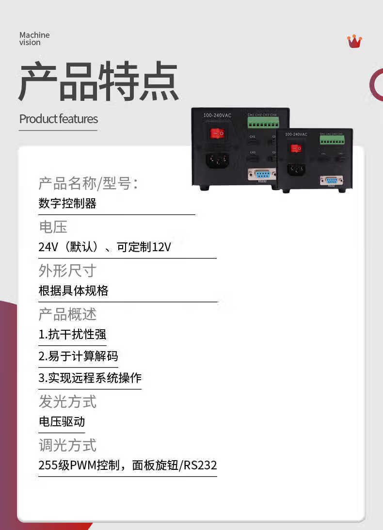 Industrial camera LED light source brightness regulator 24V analog digital four-channel machine vision light source controller 4-channel analog controller APA-60W 24V