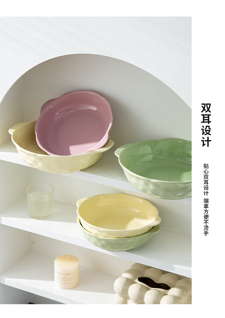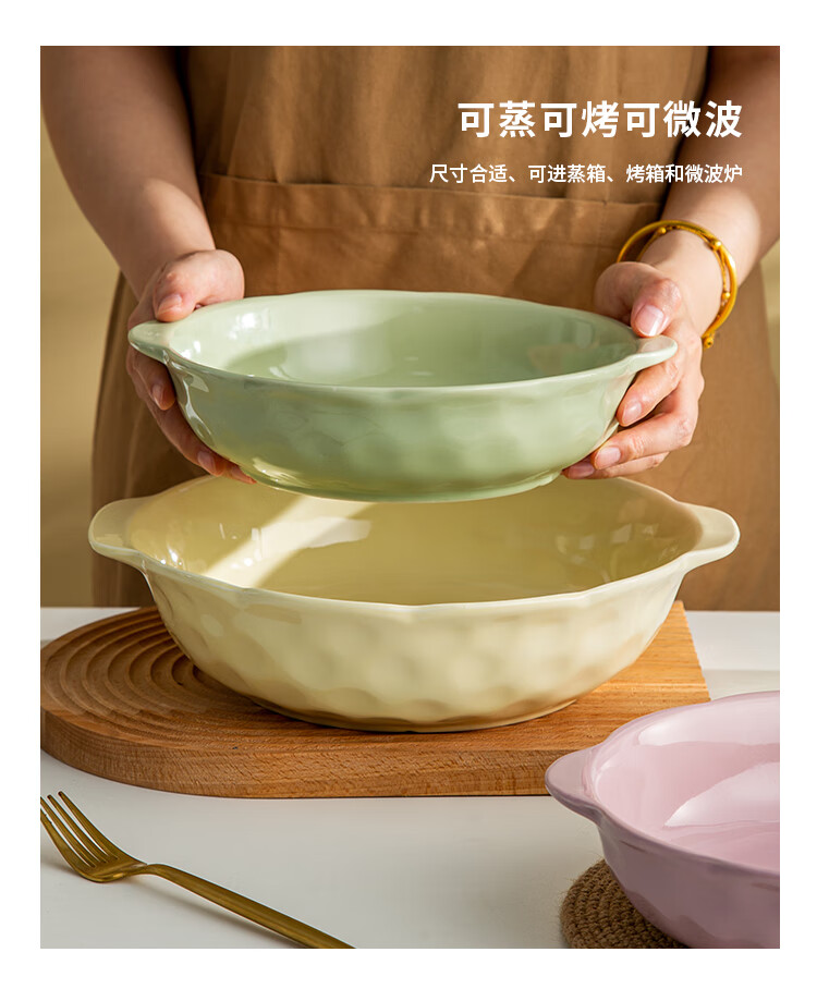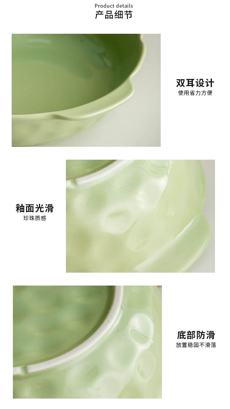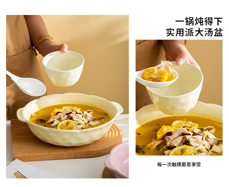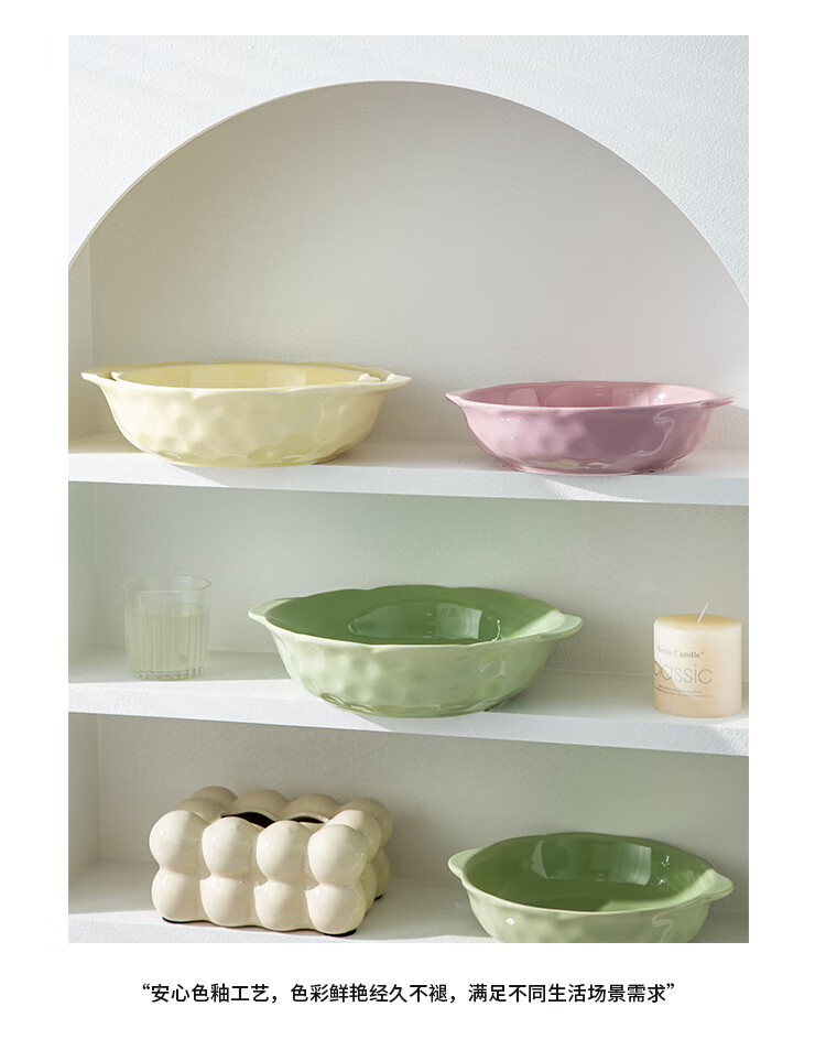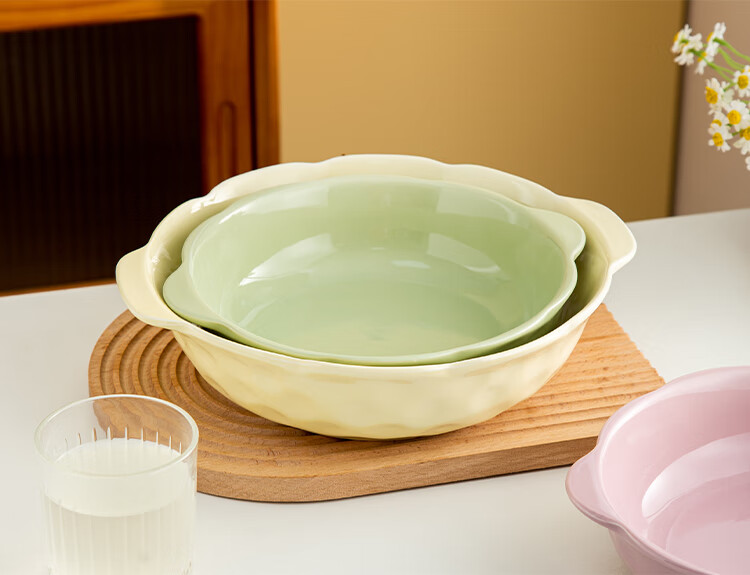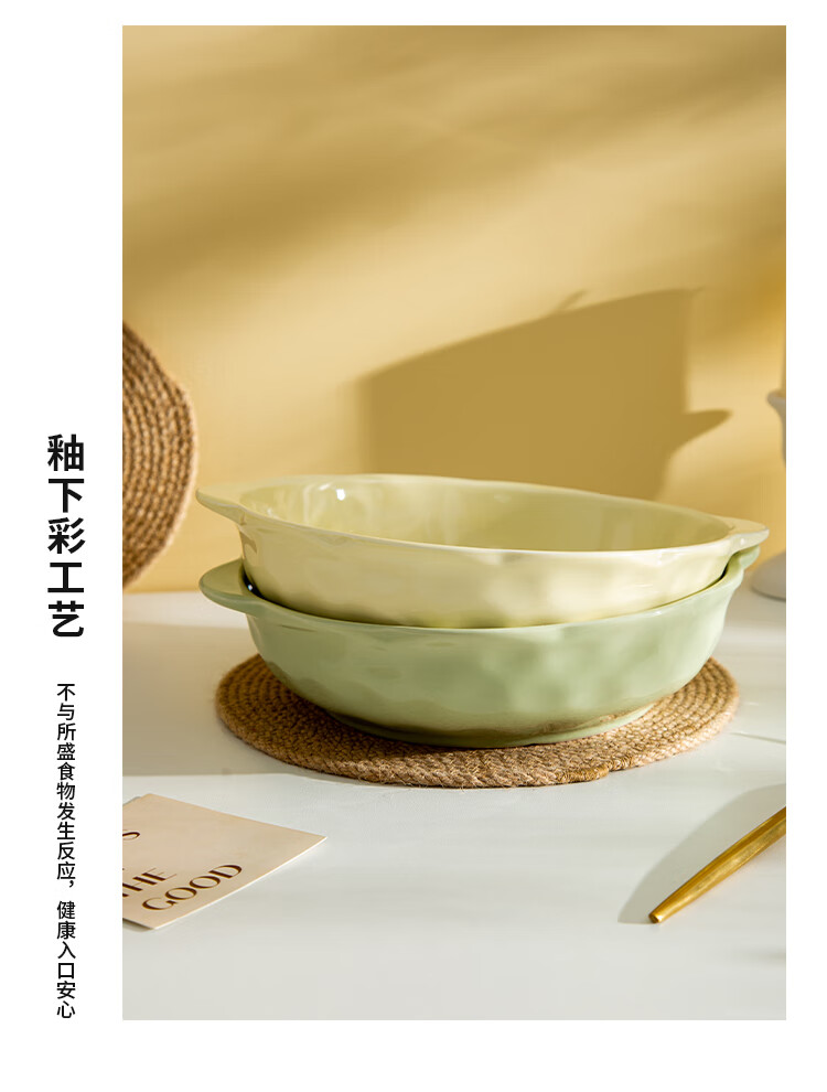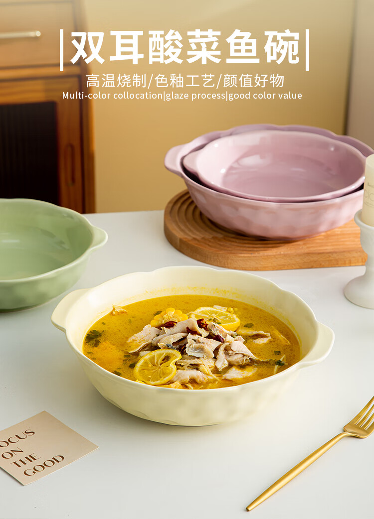 Pickled fish large basin bowl household ceramic double-eared soup bowl ins high-looking instant noodle bowl student dormitory salad bowl fruit green 8.5-inch double-eared stone pattern soup bowl 1